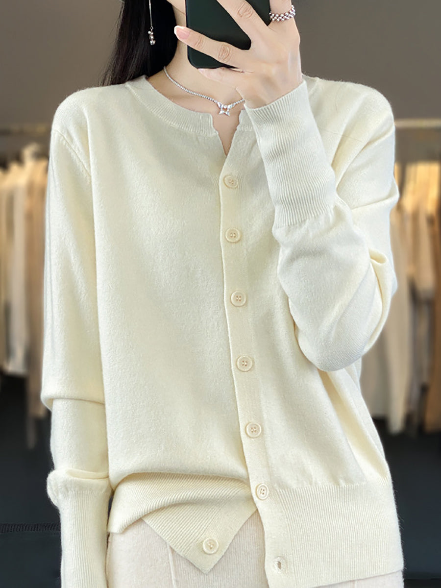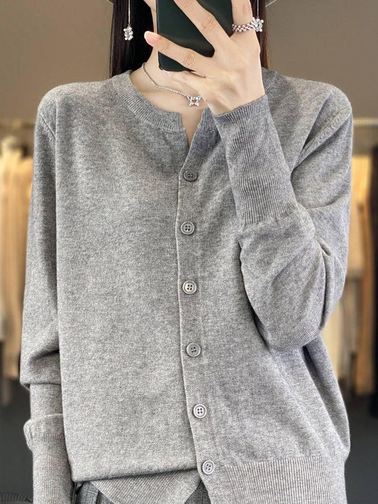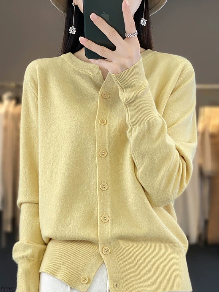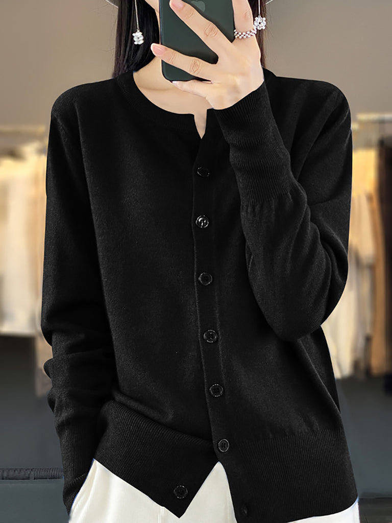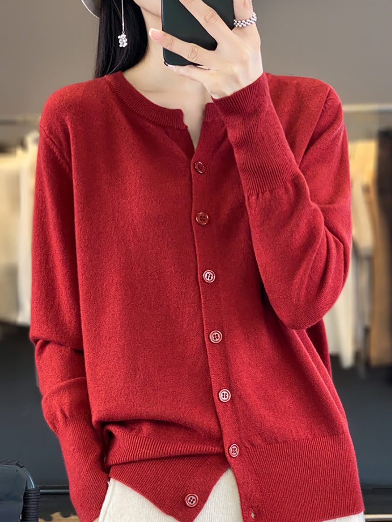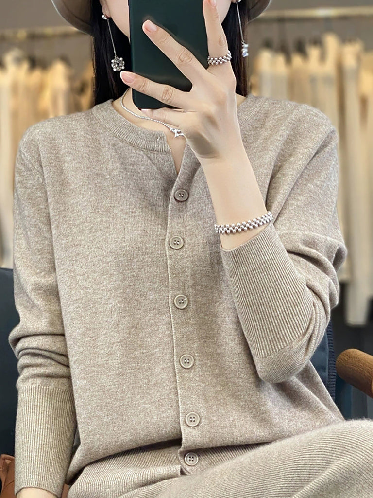 Suéter de punto de cuello redondo de color puro informal de invierno para mujer