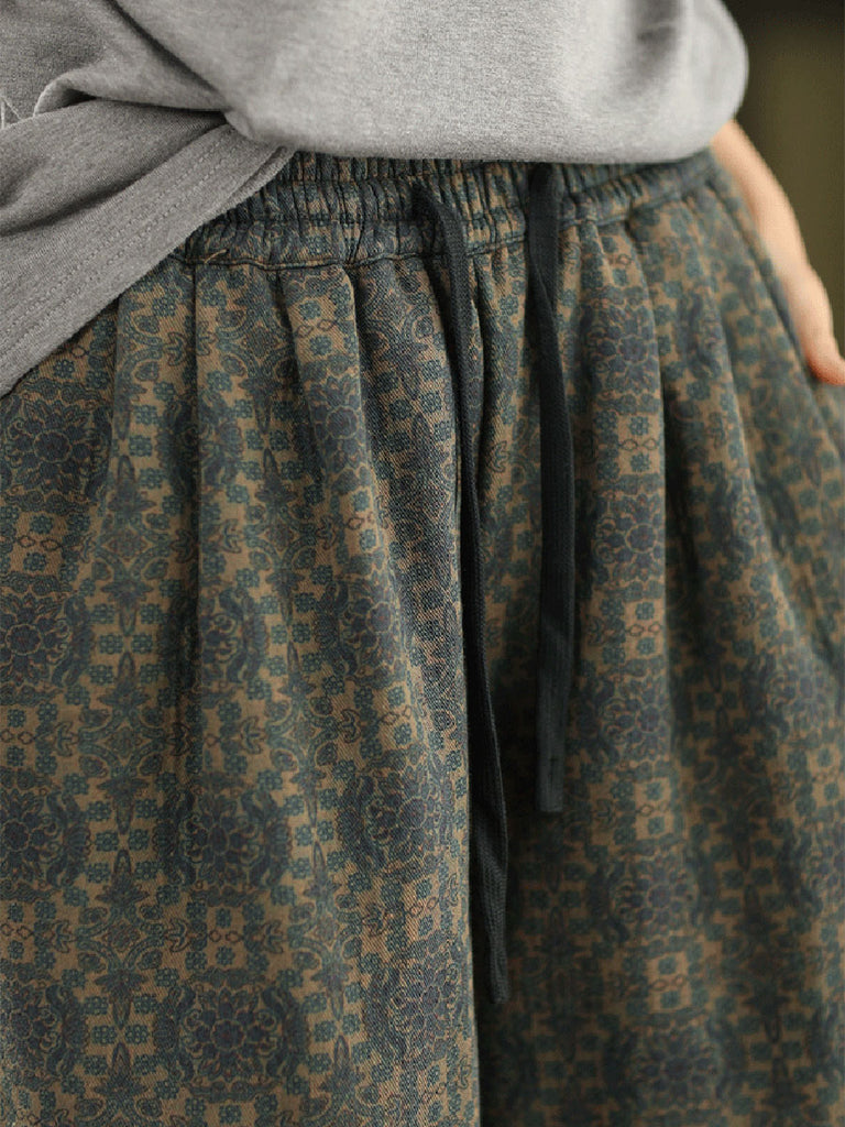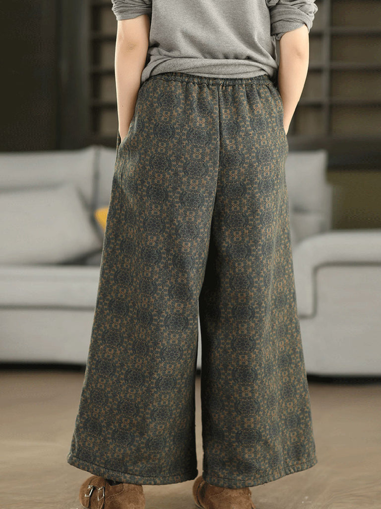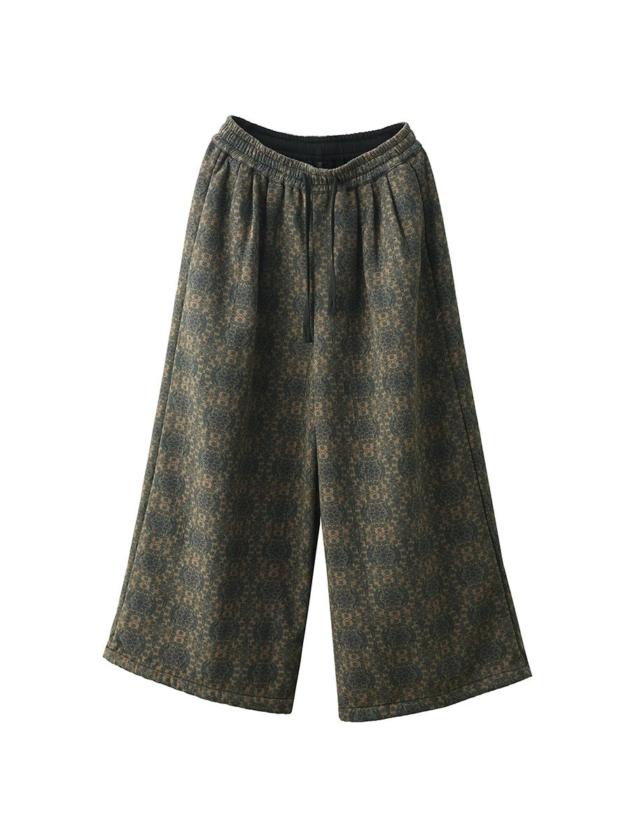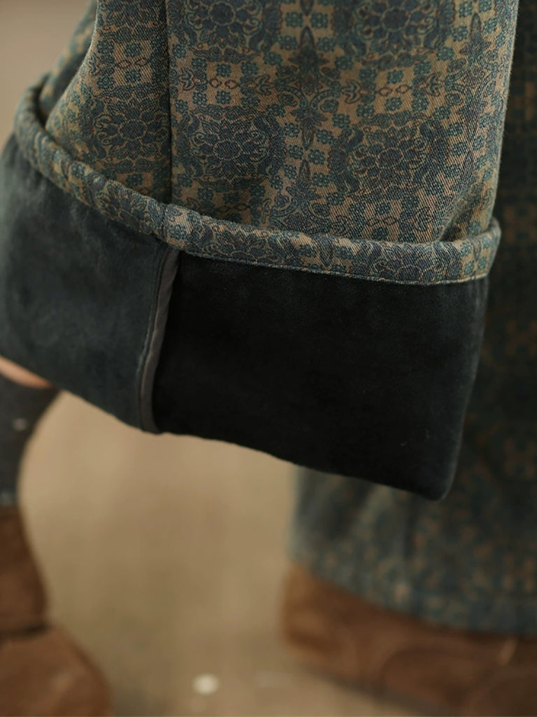 Pantalones rectos con forro polar y estampado floral retro de invierno para mujer