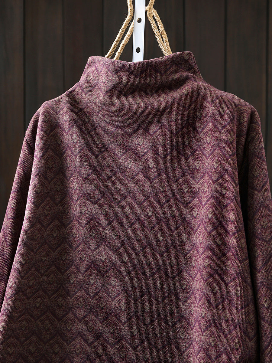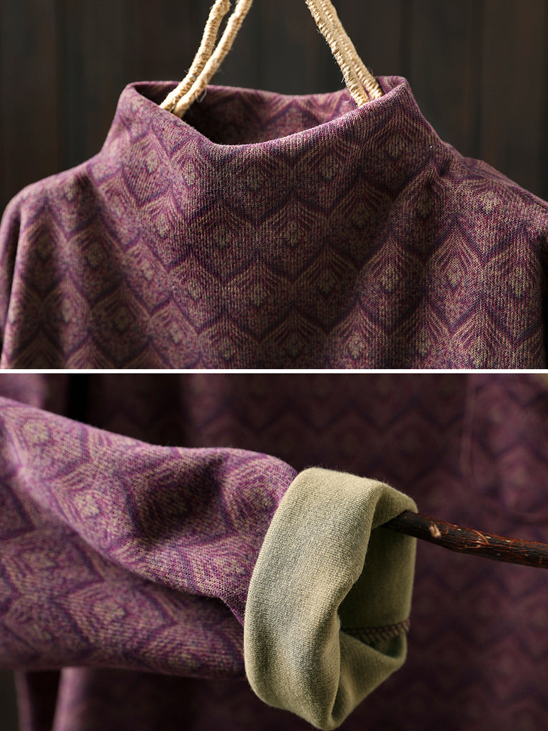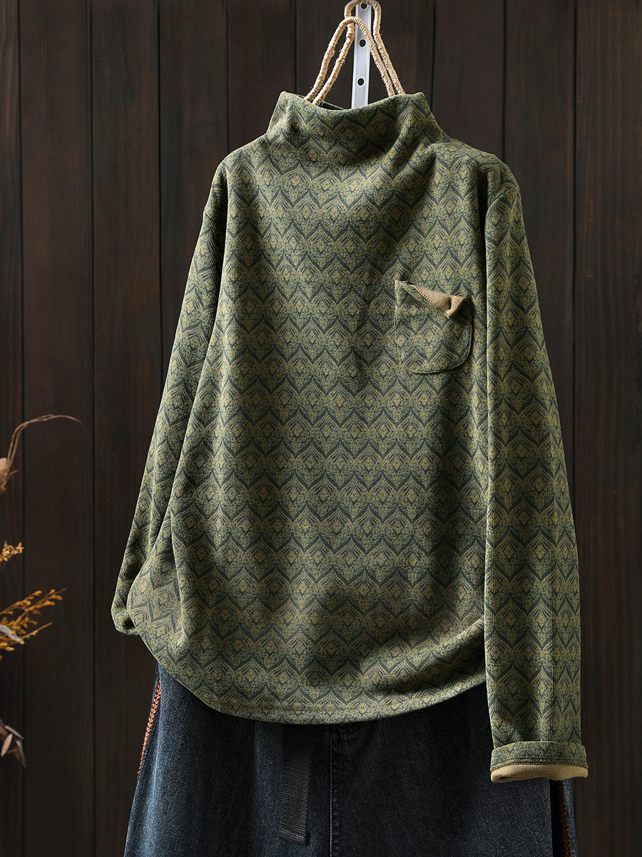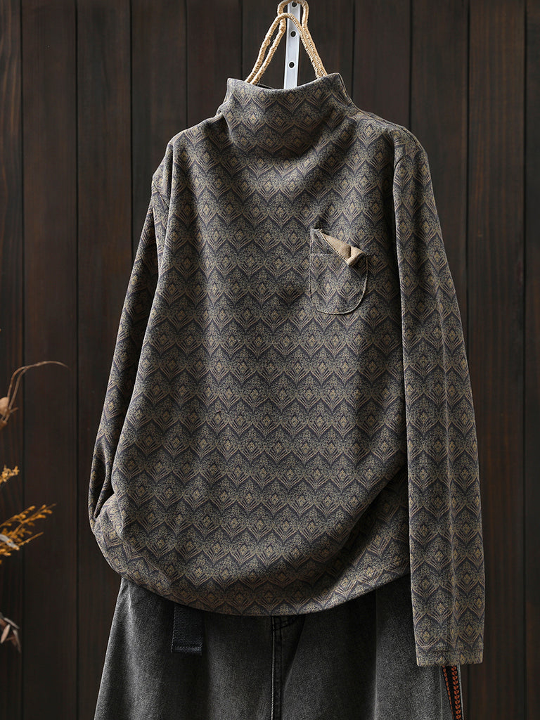 Blusa de cuello alto medio con estampado vintage de invierno para mujer