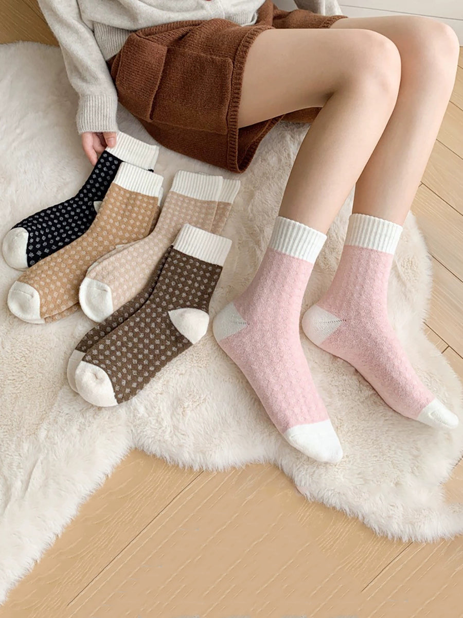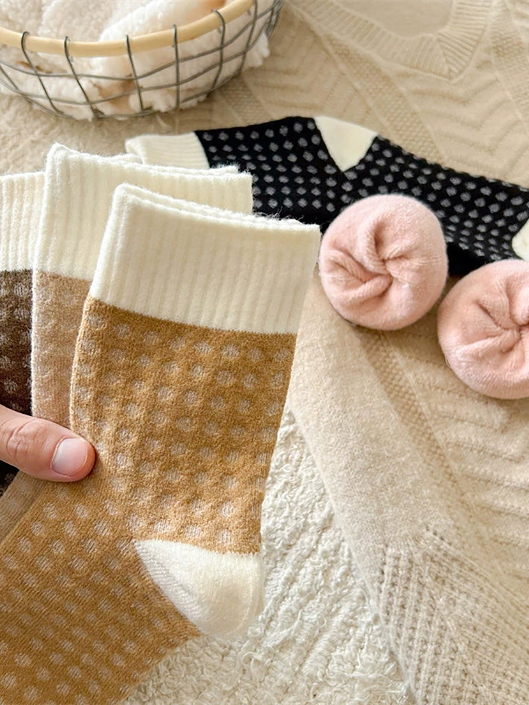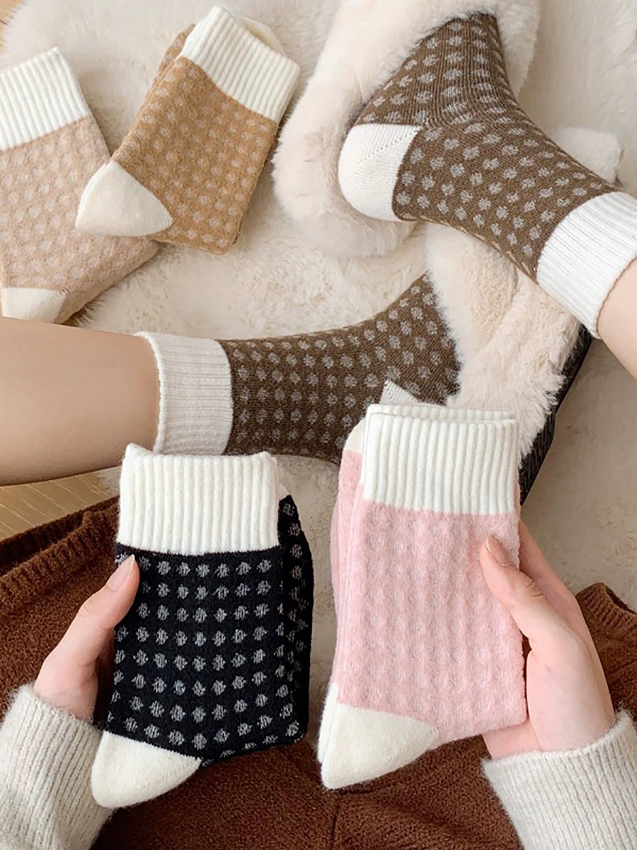 5 pares de calcetines de invierno para mujer con diseño colorblock y talón medio
