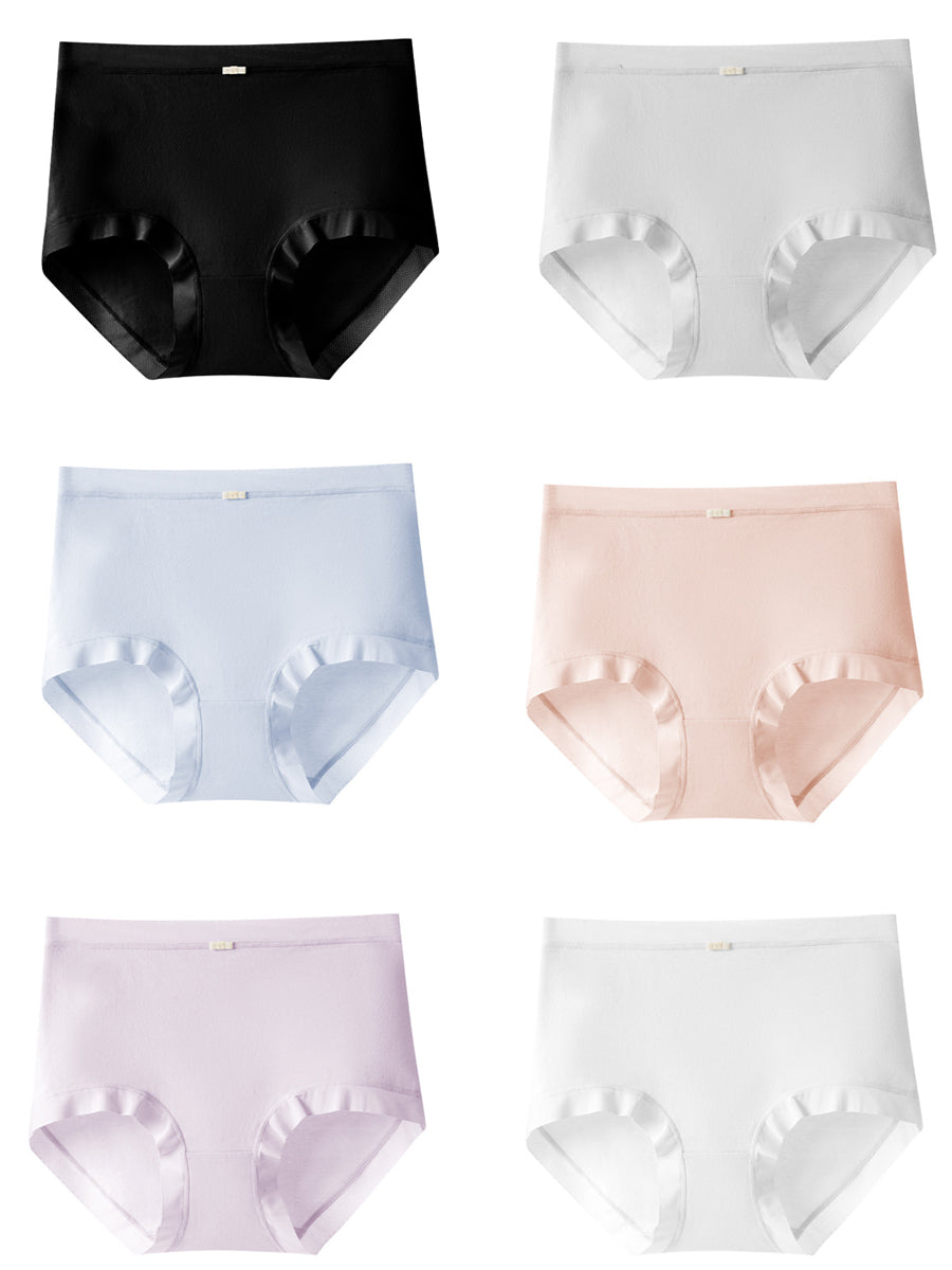 6 piezas de ropa interior de algodón de cintura alta de color puro para mujer