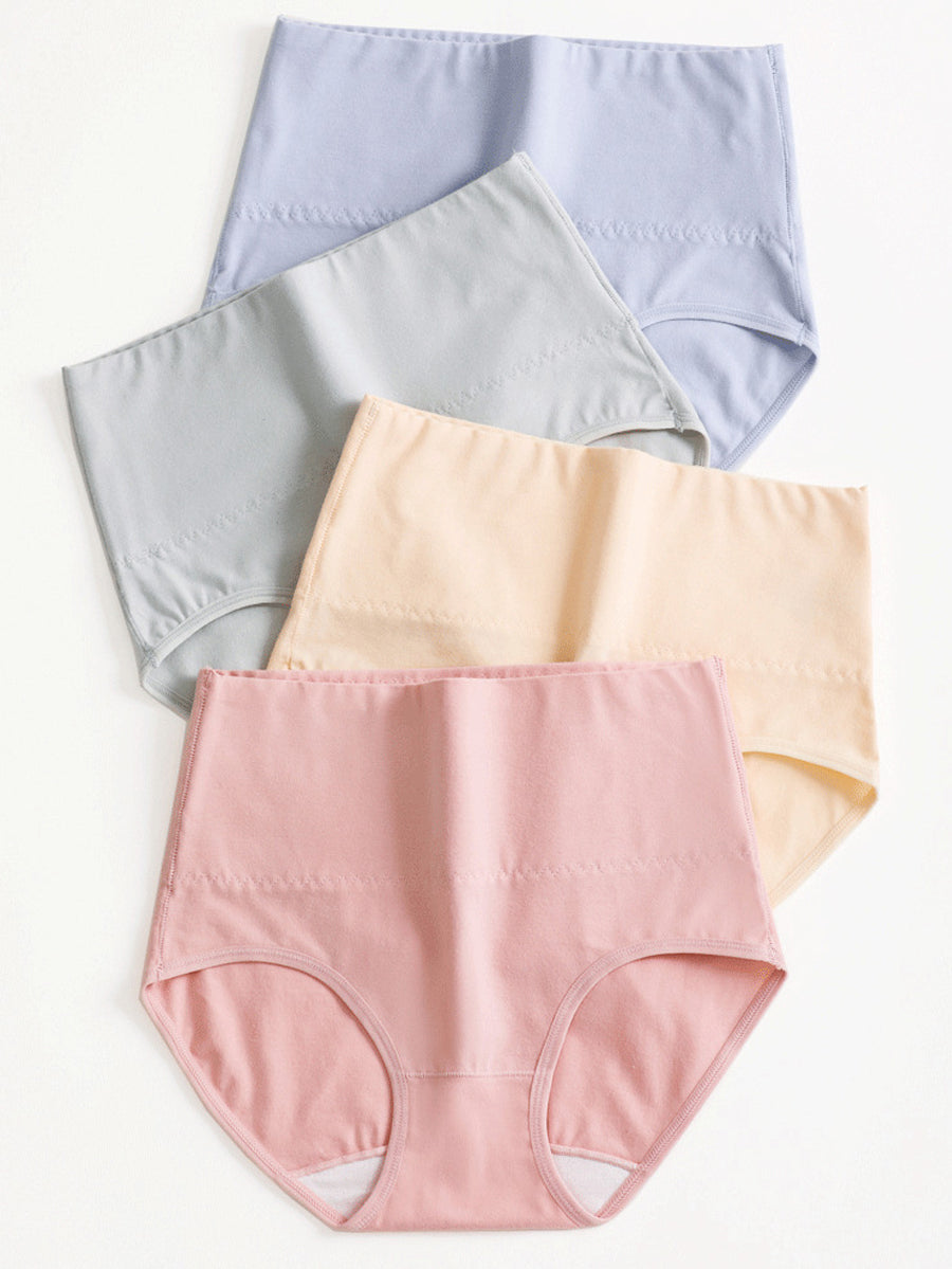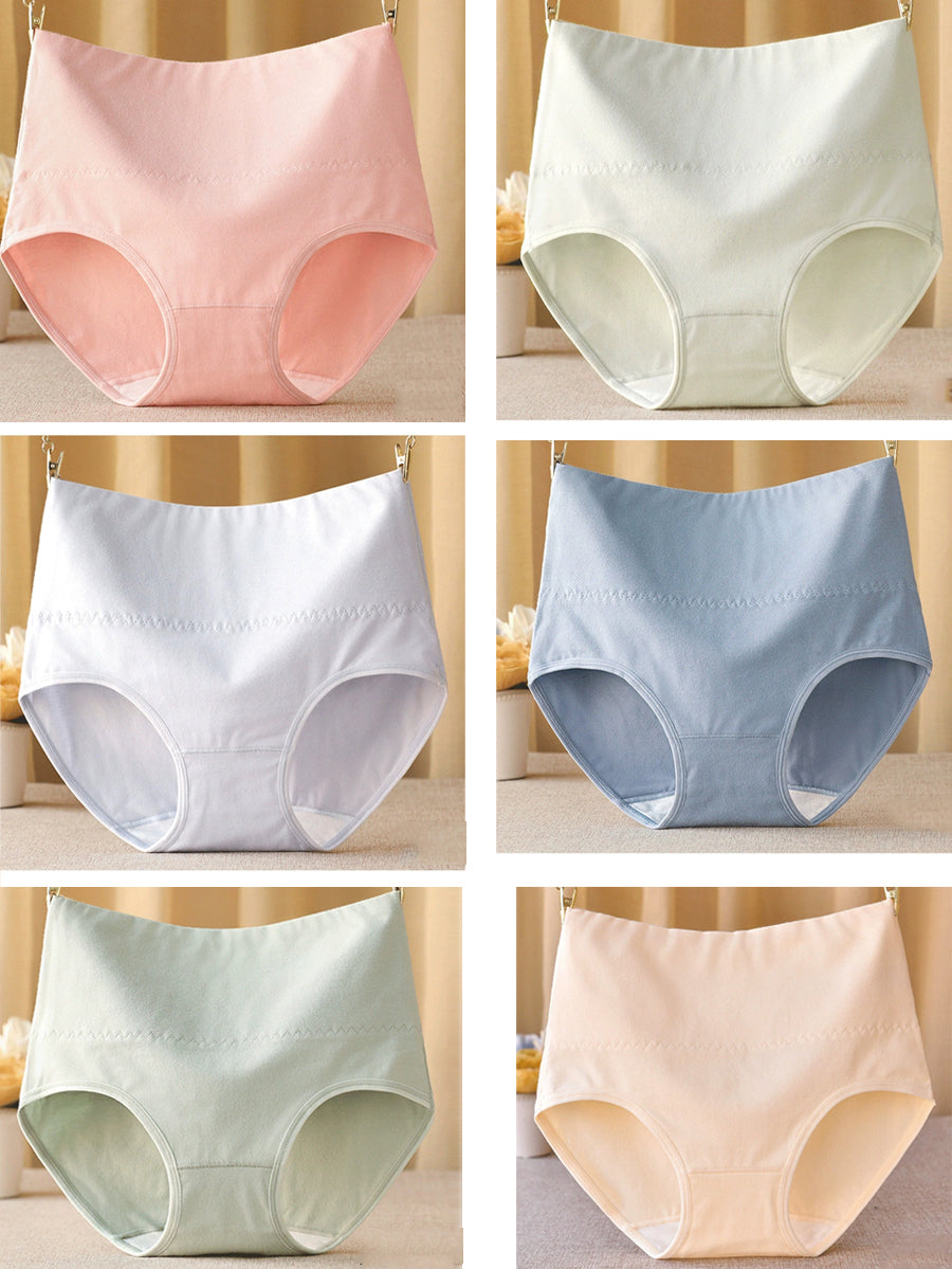 6 piezas de ropa interior de cintura alta de color puro para mujer