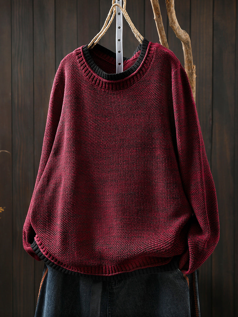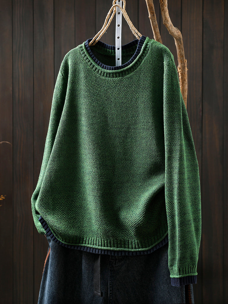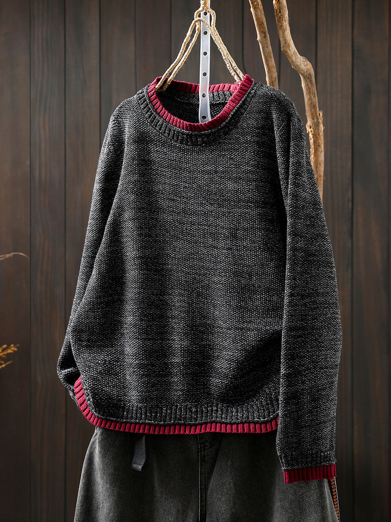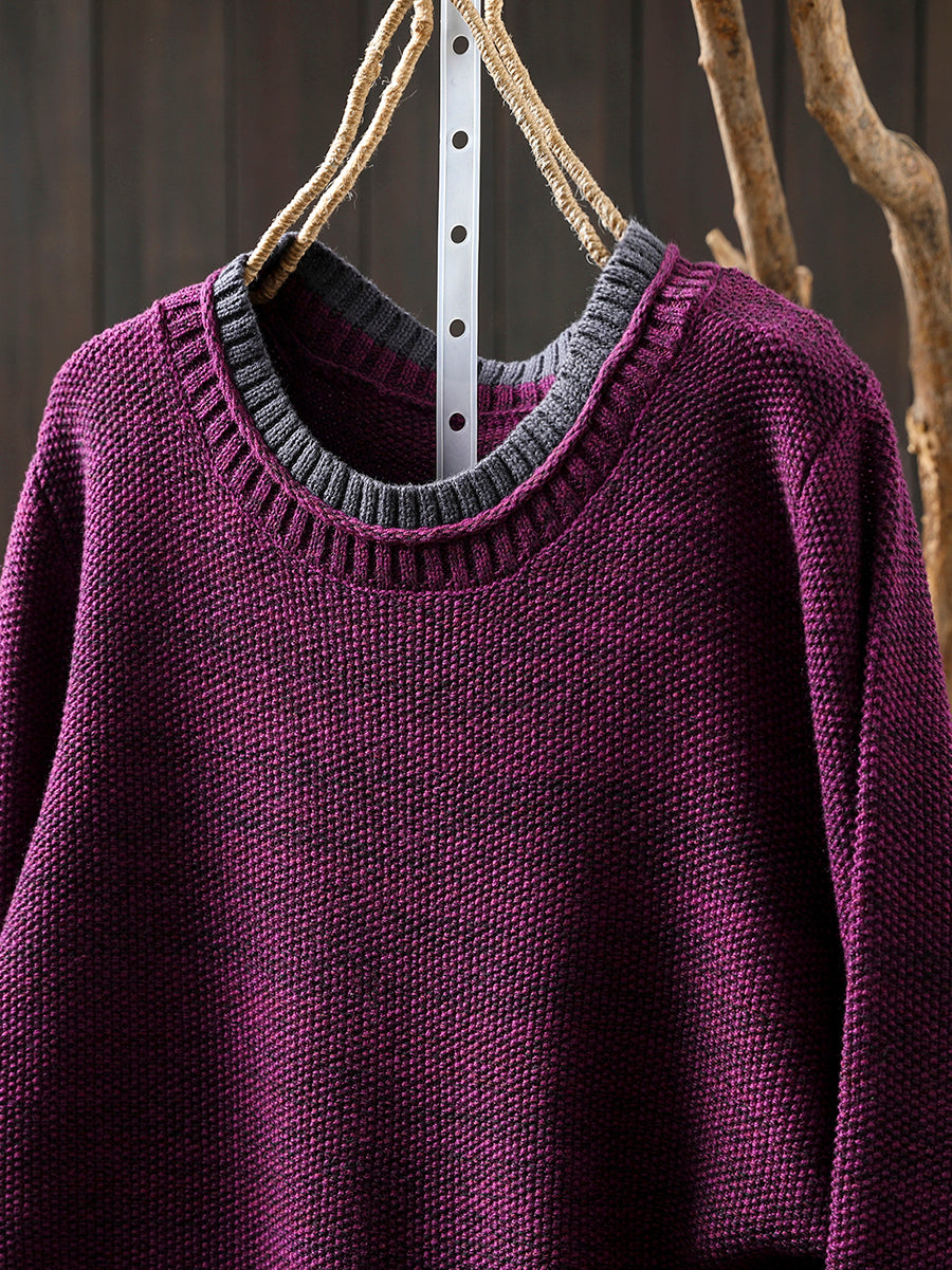 Suéter de punto de cuello redondo con bloques de color estilo artístico para mujer, ideal para otoño