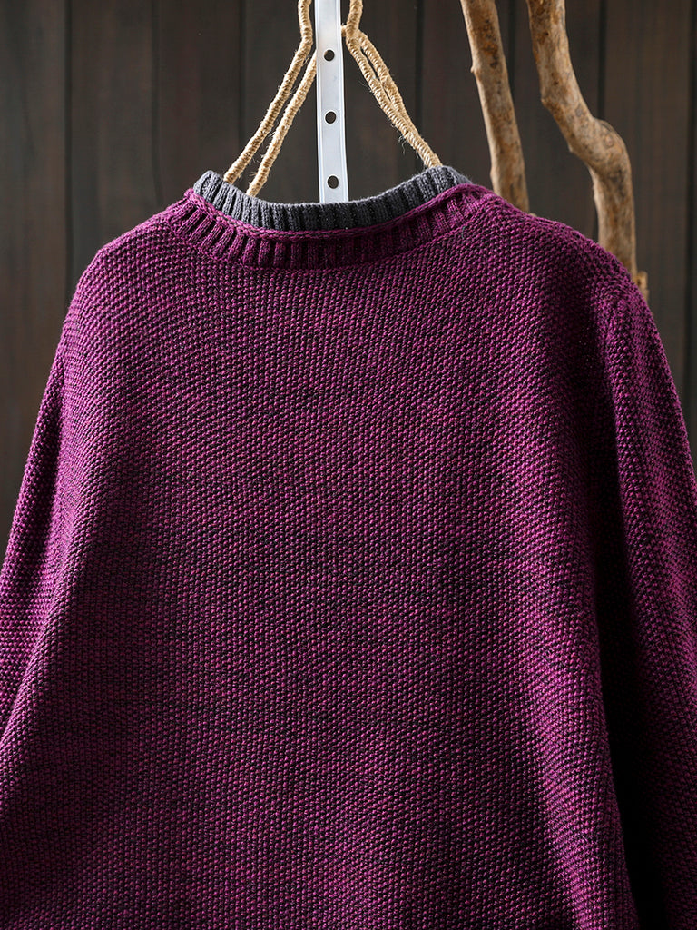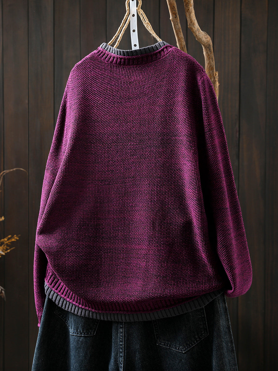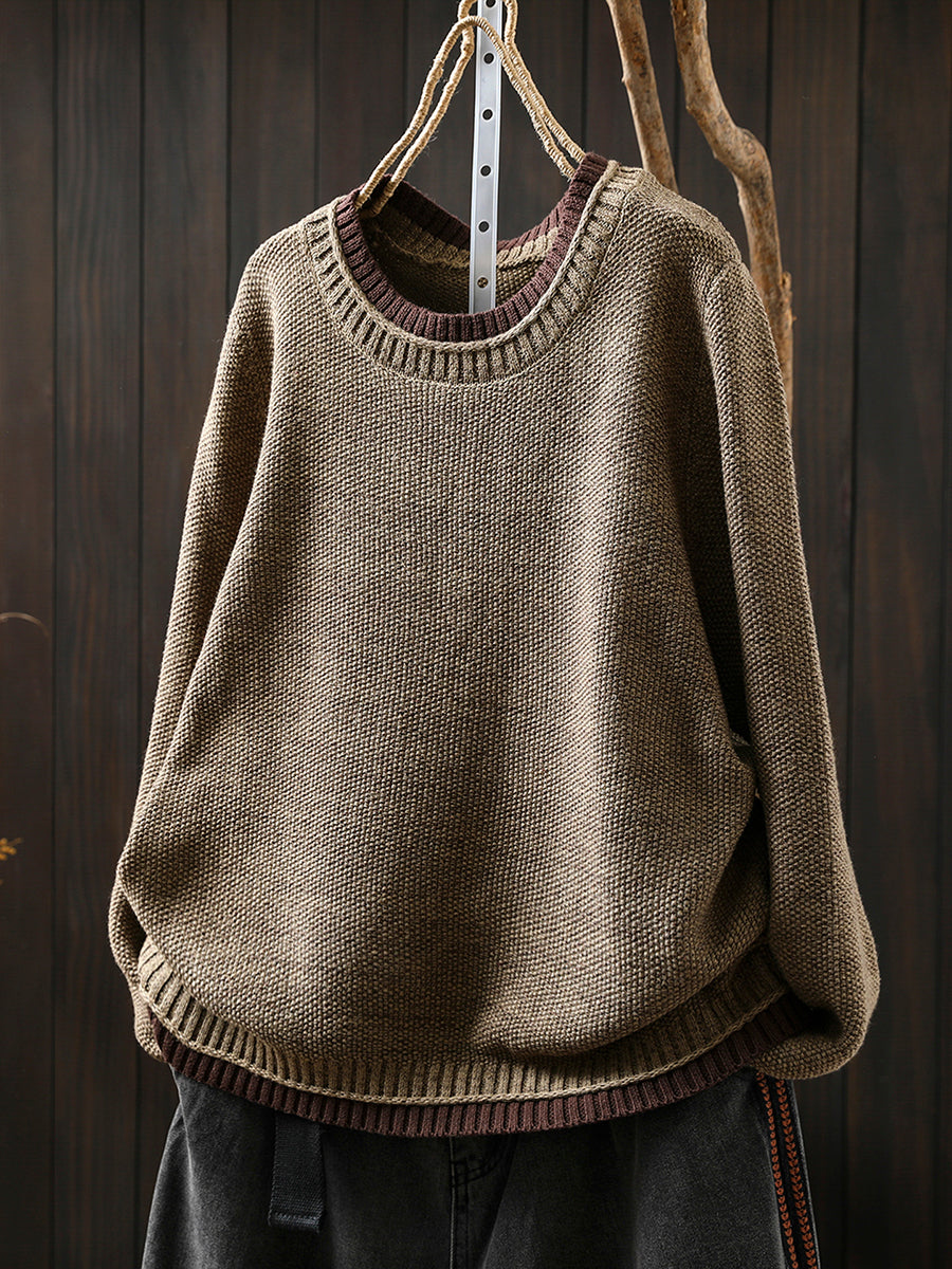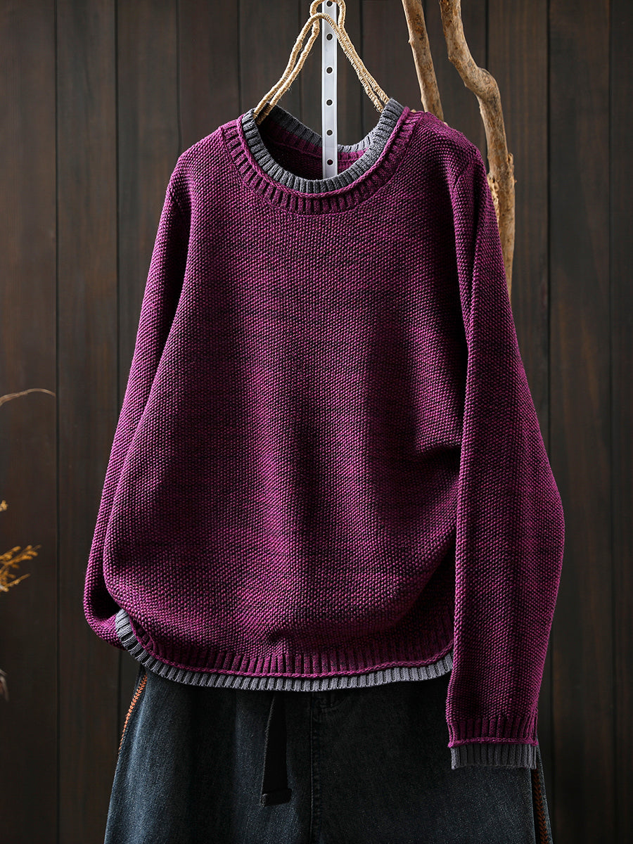 Suéter de punto de cuello redondo con bloques de color estilo artístico para mujer, ideal para otoño