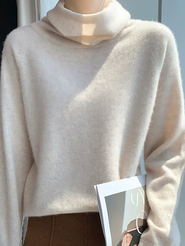 Suéter de cuello alto de punto de color liso para mujer, estilo casual de otoño