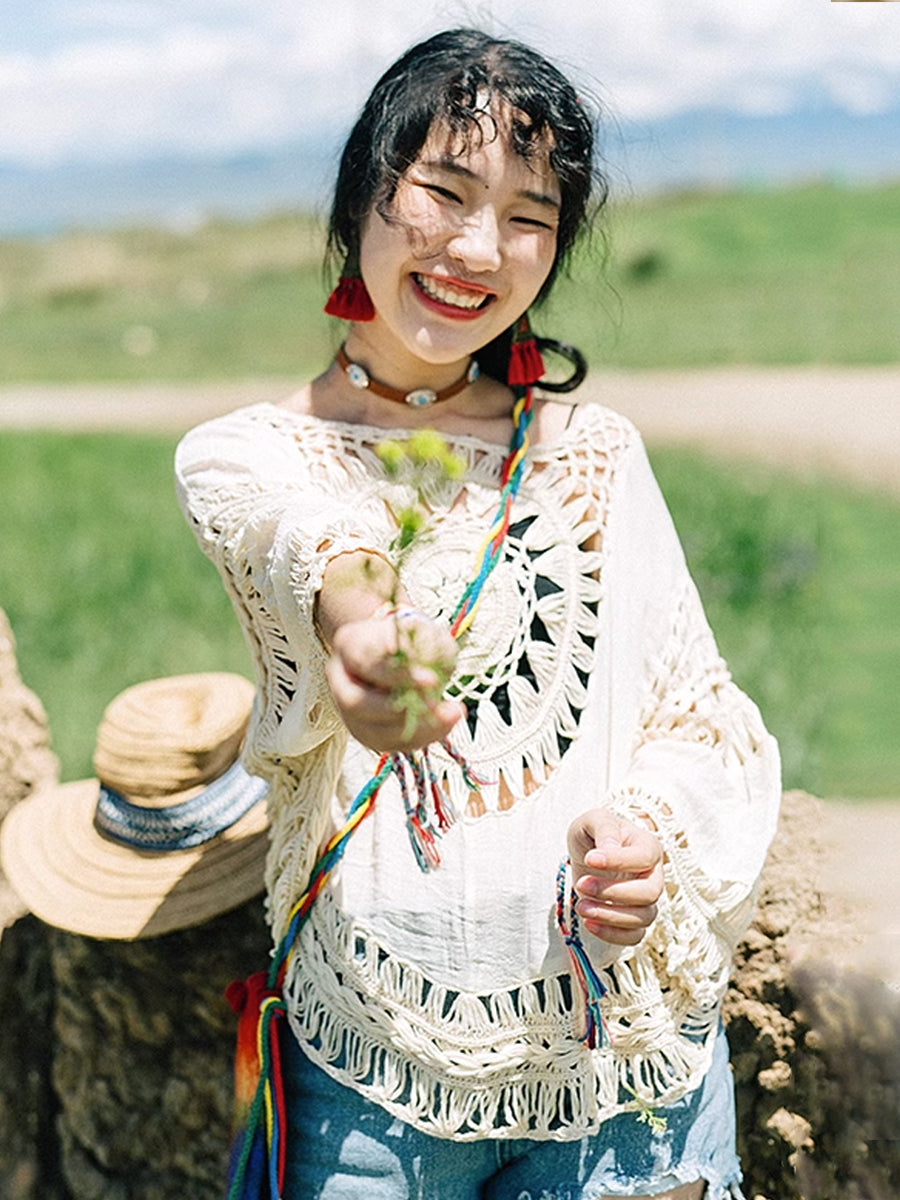 Camisa a prueba de sol calada de punto de viaje de verano para mujer