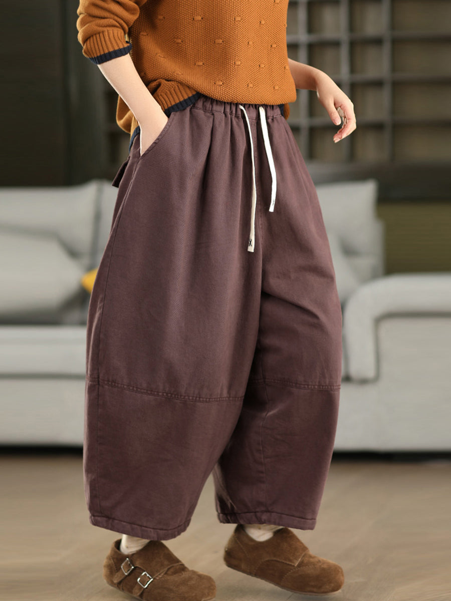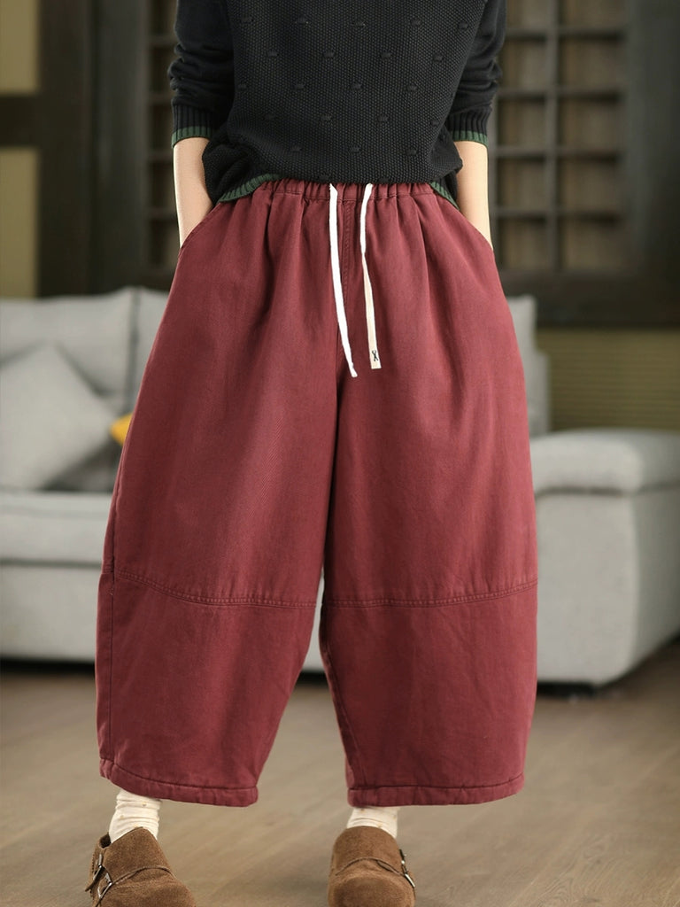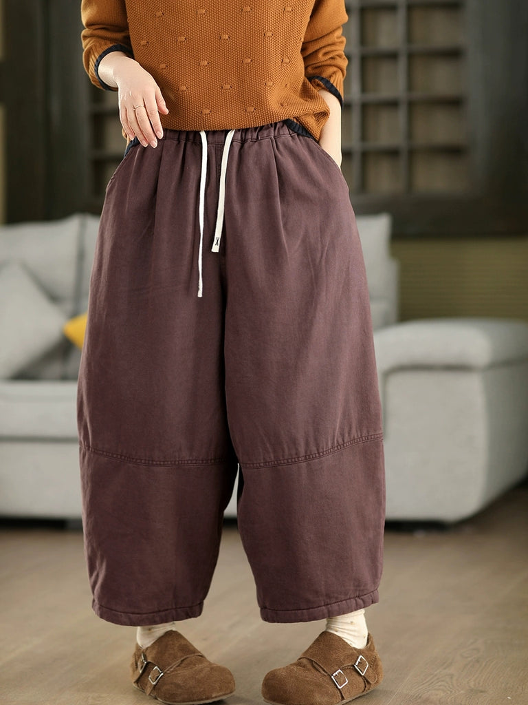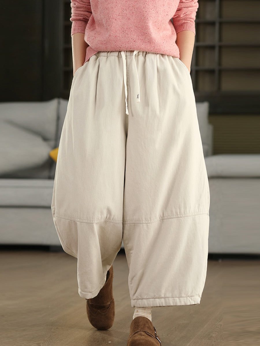 Pantalones bombachos acolchados de invierno para mujer, de color liso, 100% algodón