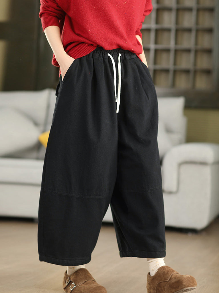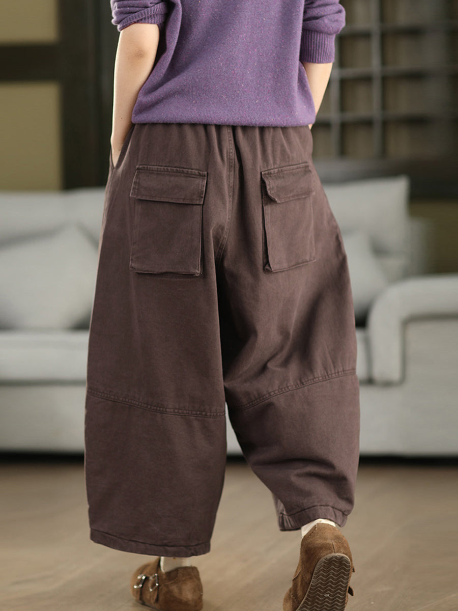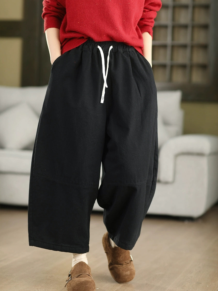 Pantalones bombachos acolchados de invierno para mujer, de color liso, 100% algodón