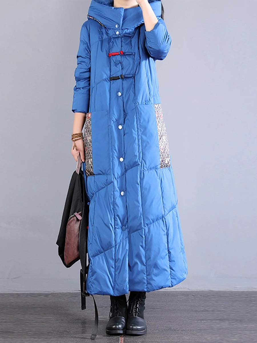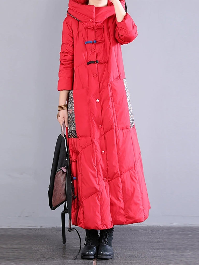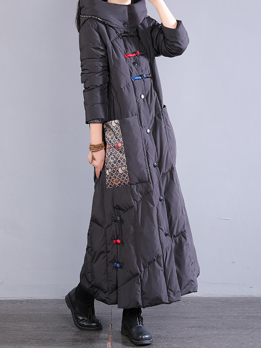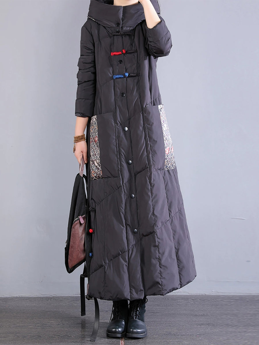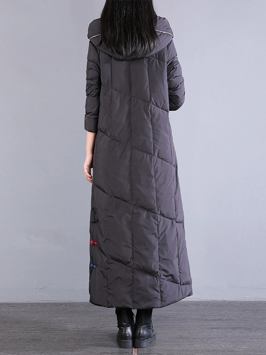 Abrigo largo acolchado de invierno retro bordado para mujer