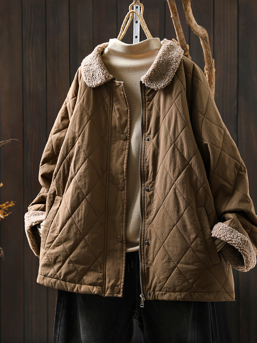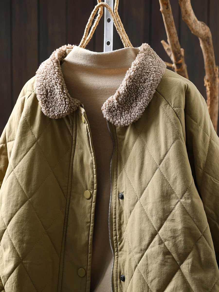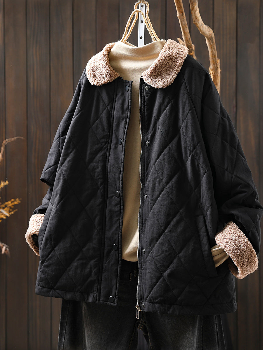 Abrigo retro de invierno con cuello vuelto y empalmado de polar para mujer