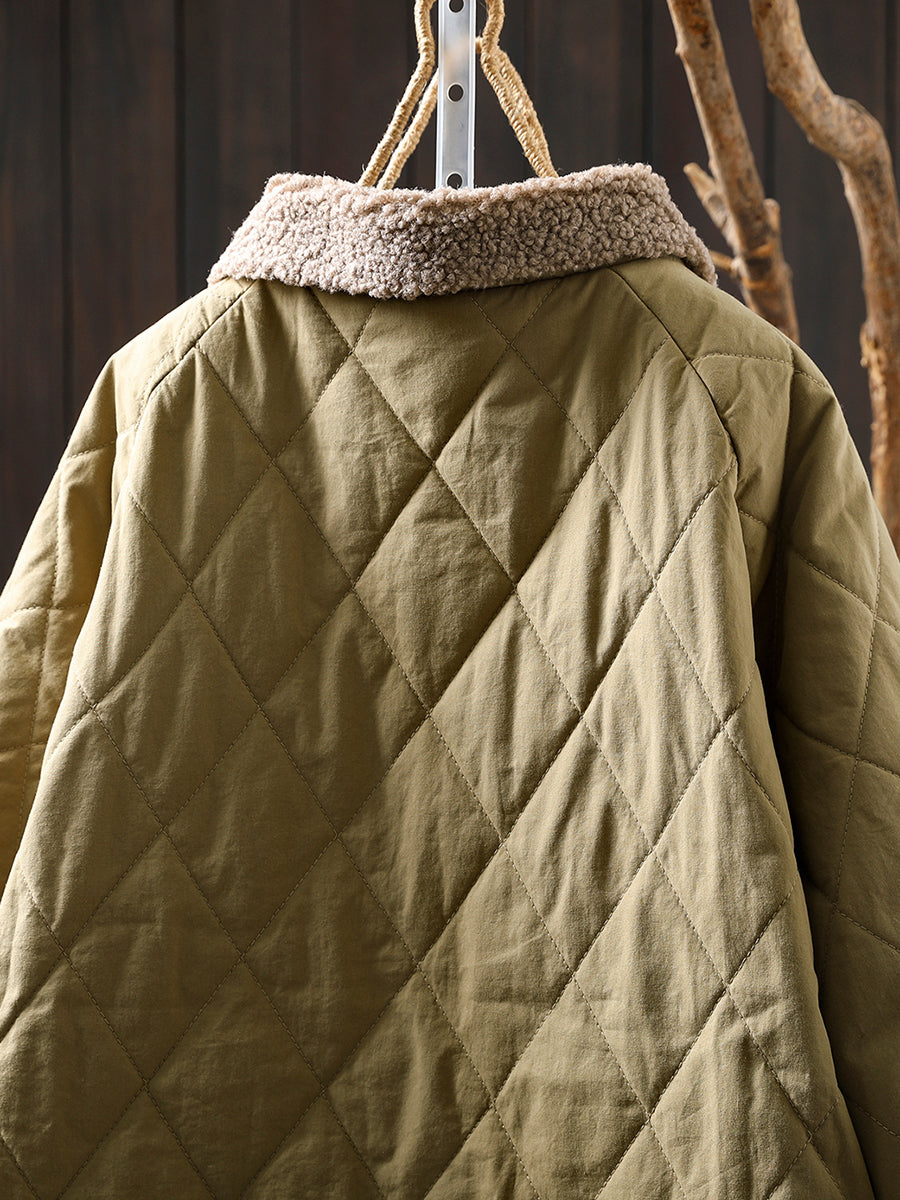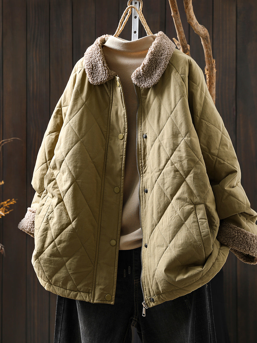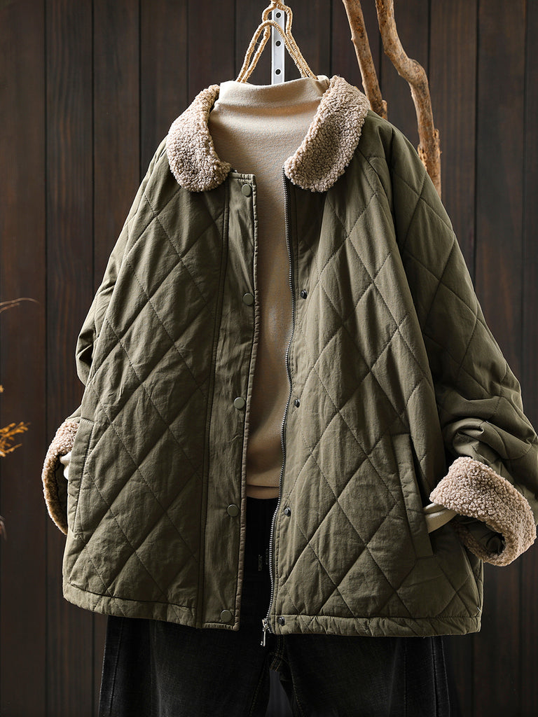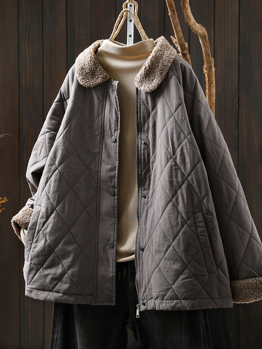 Abrigo retro de invierno con cuello vuelto y empalmado de polar para mujer