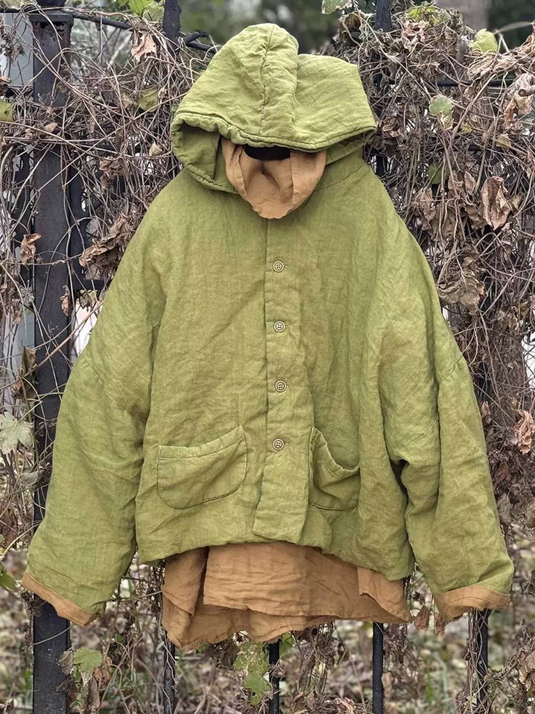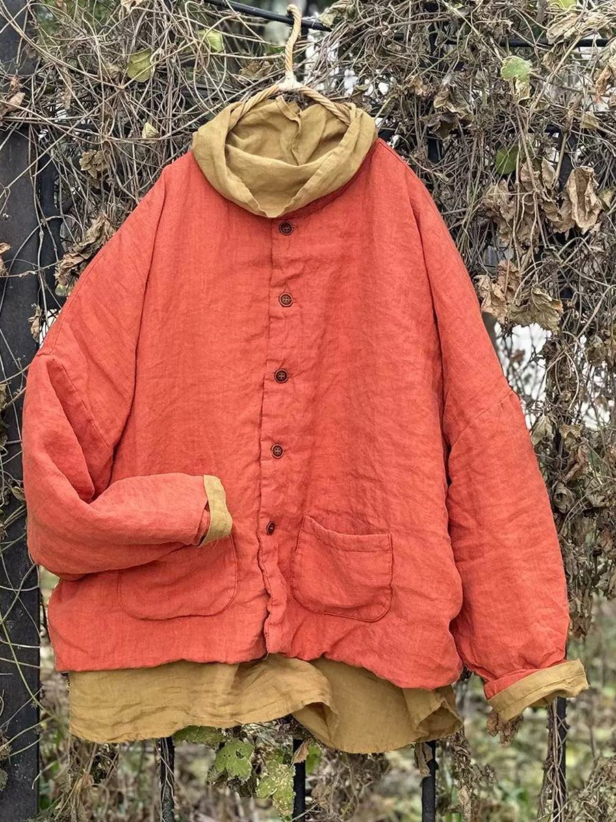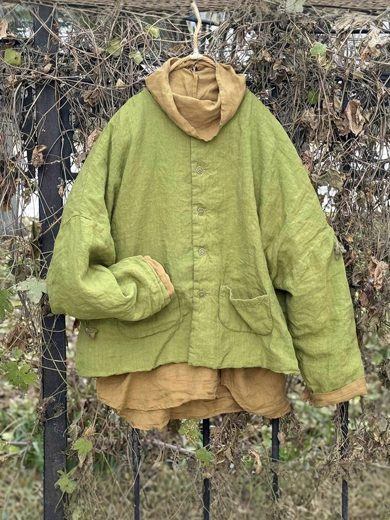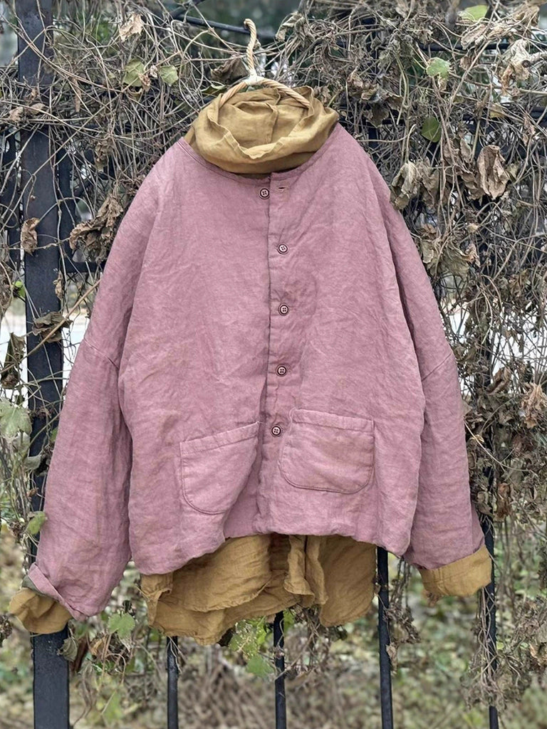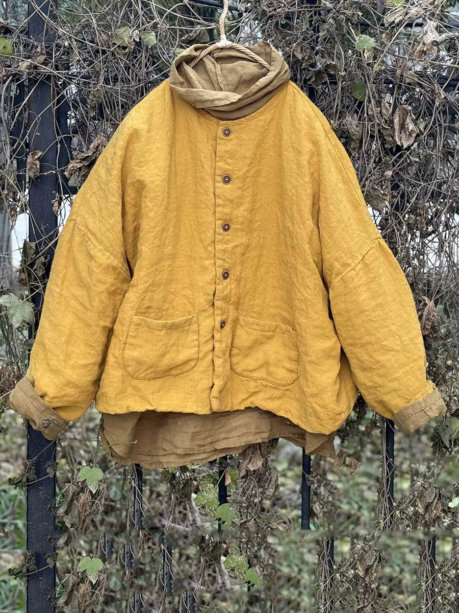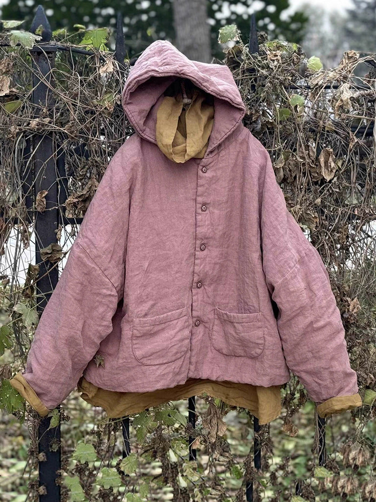 Abrigo acolchado de lino de color liso estilo retro para mujer