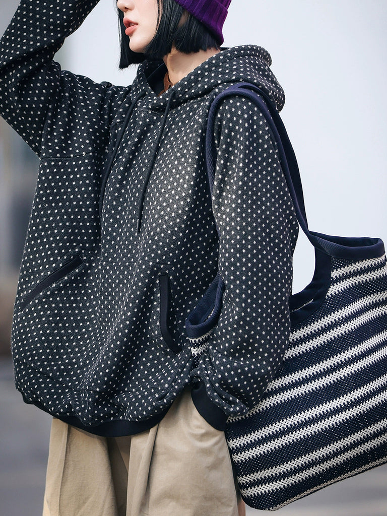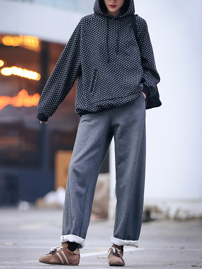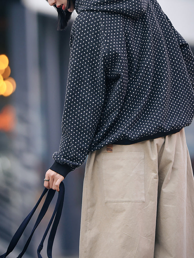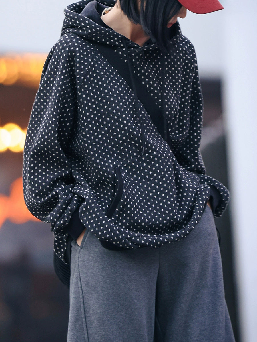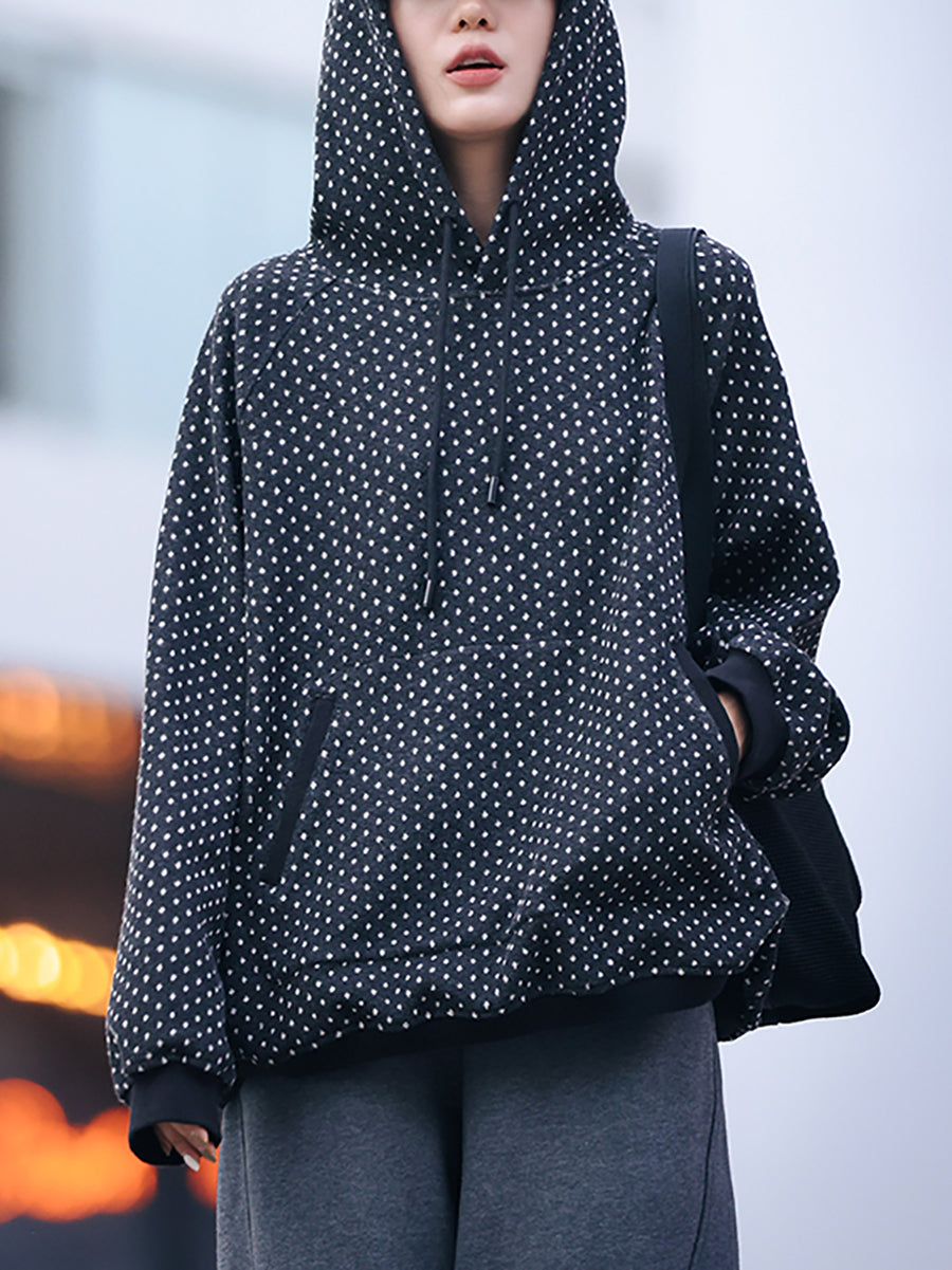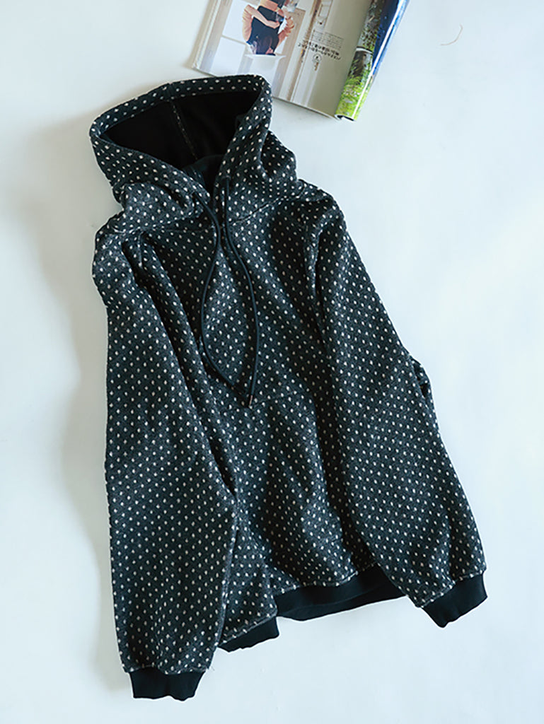 Sudadera vintage de lunares para mujer con capucha de invierno