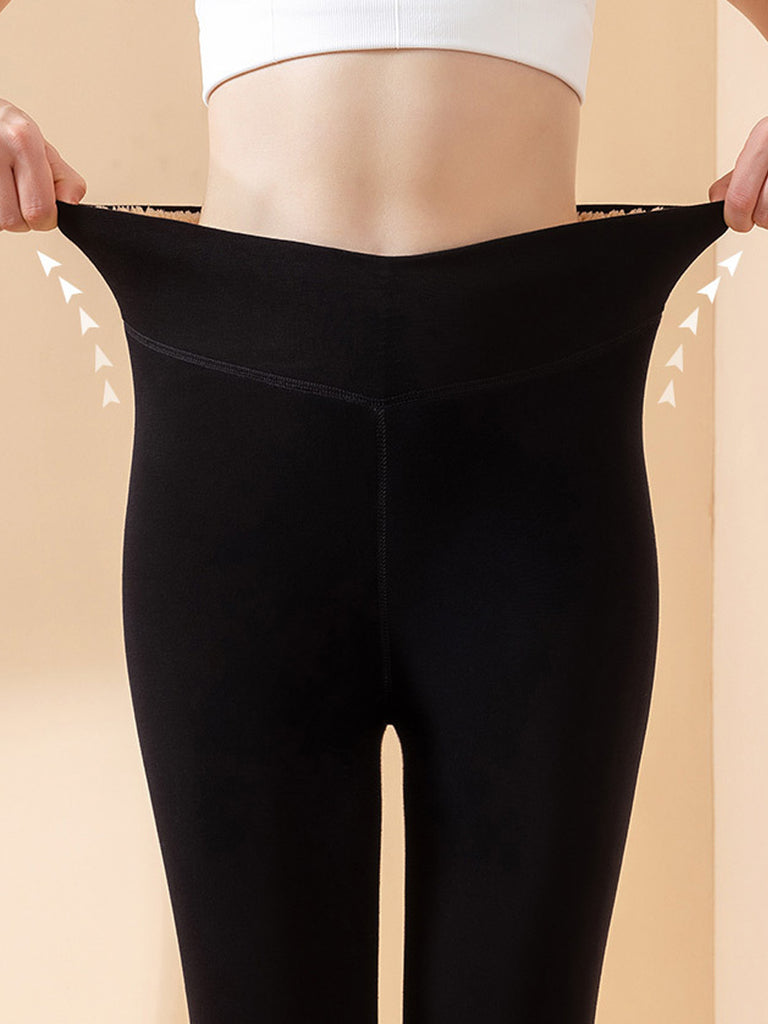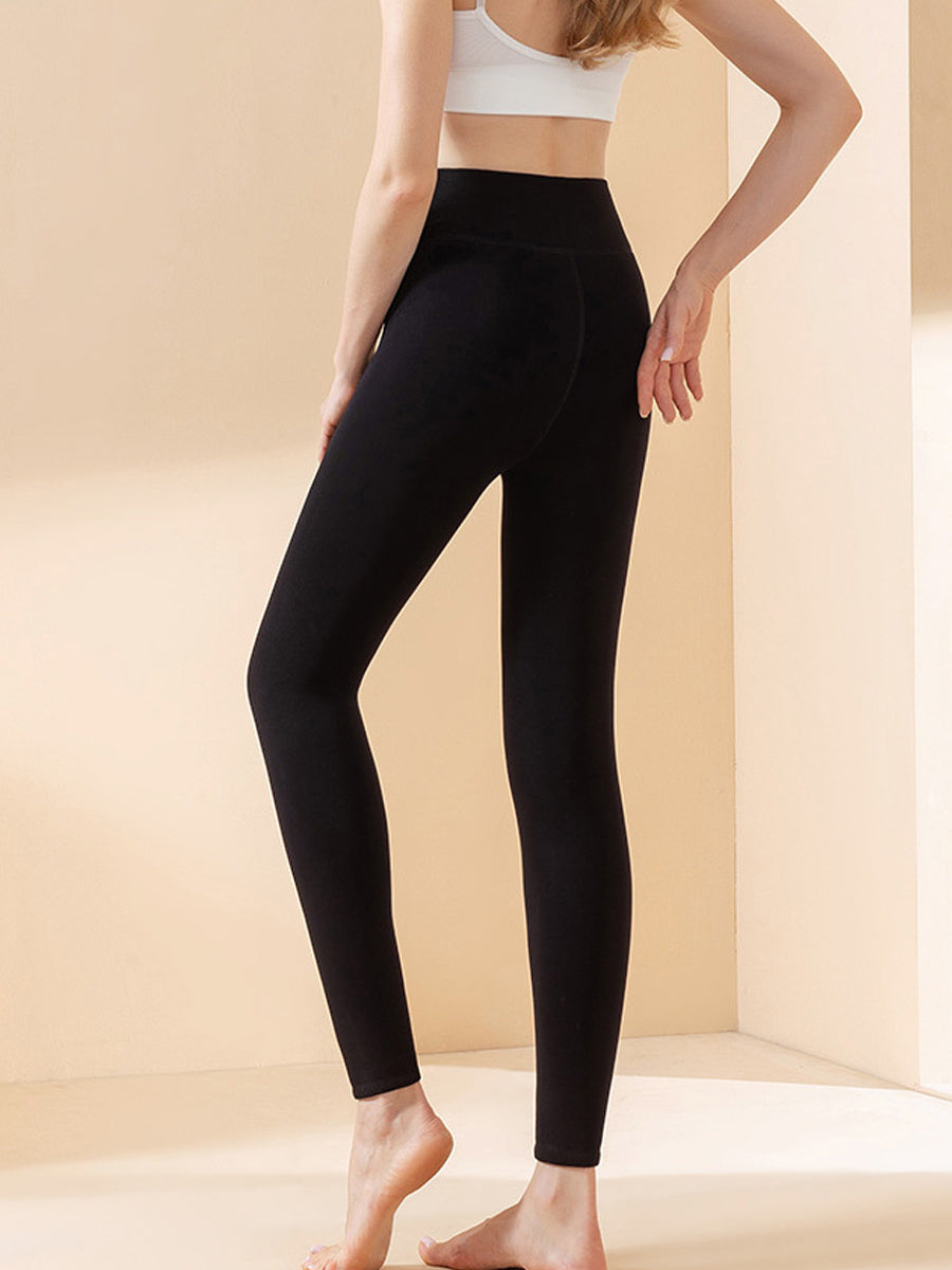 Leggings de invierno para mujer, cálidas, de color liso y con forro polar.
