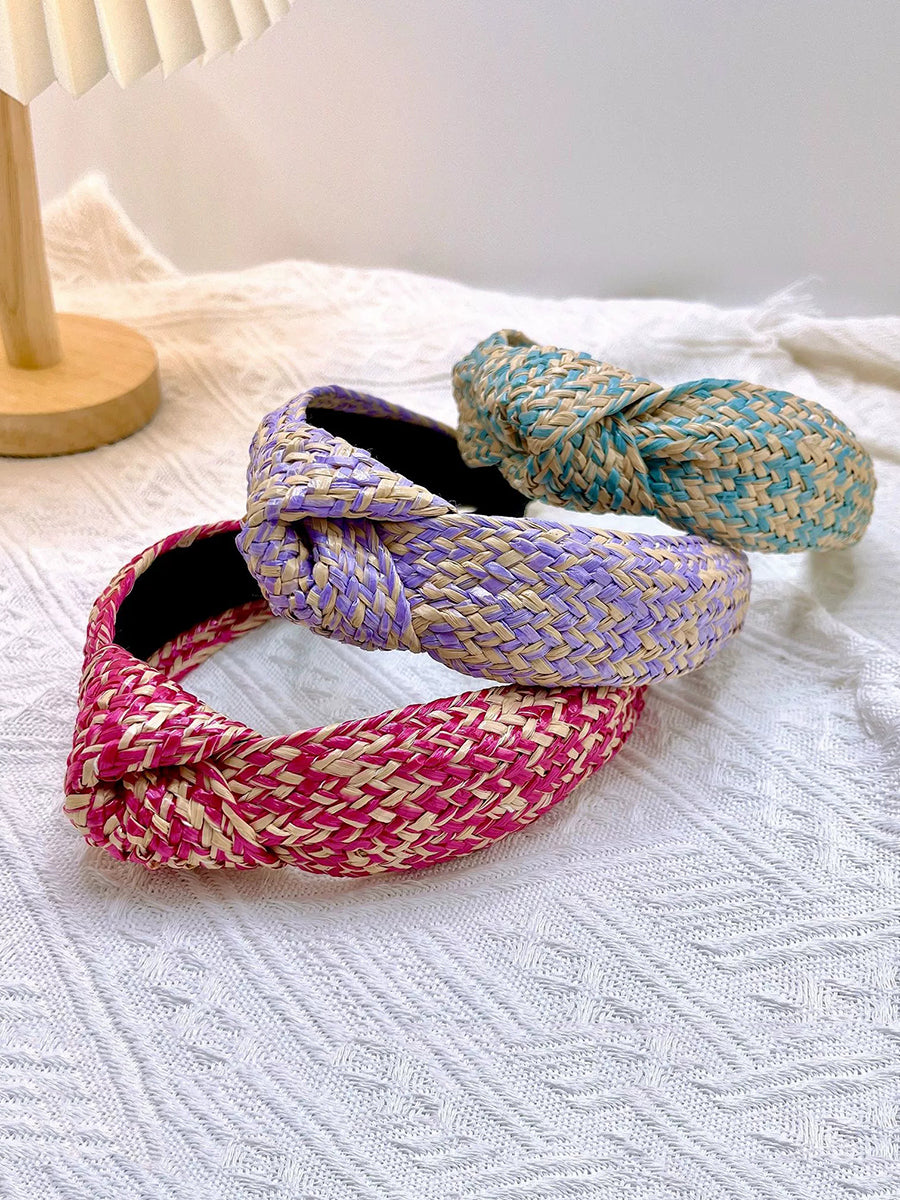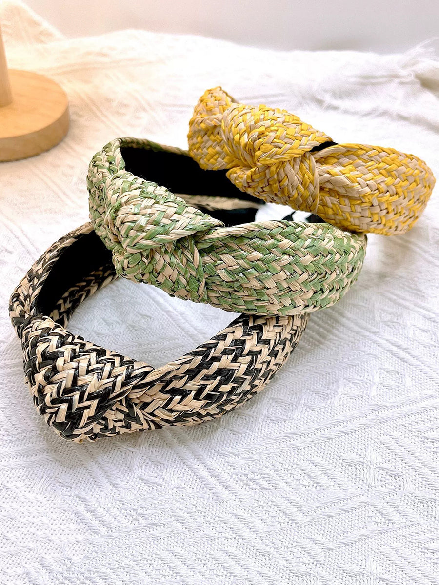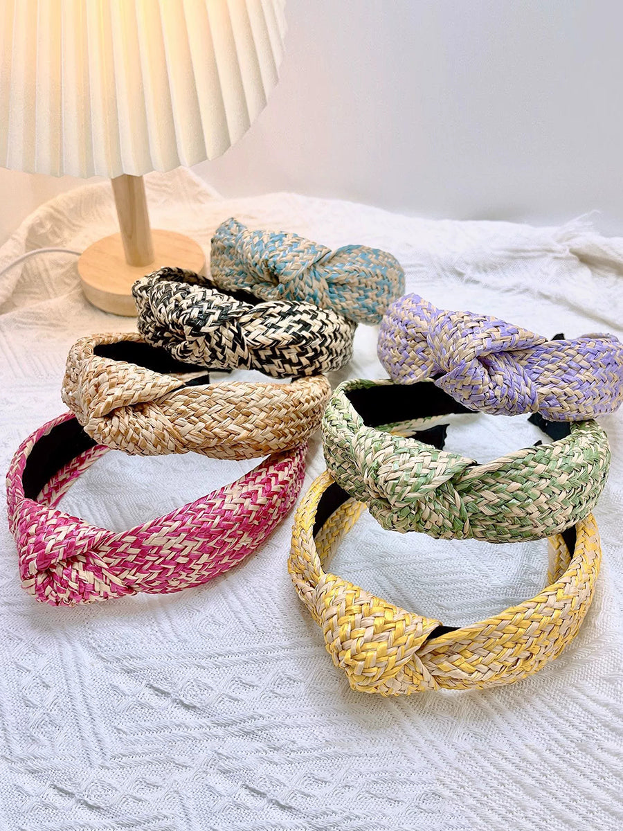 4 piezas de diademas de rafia tejidas con nudos, estilo artístico.