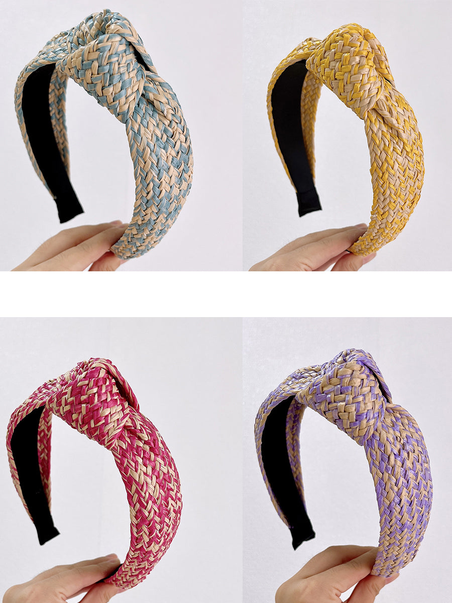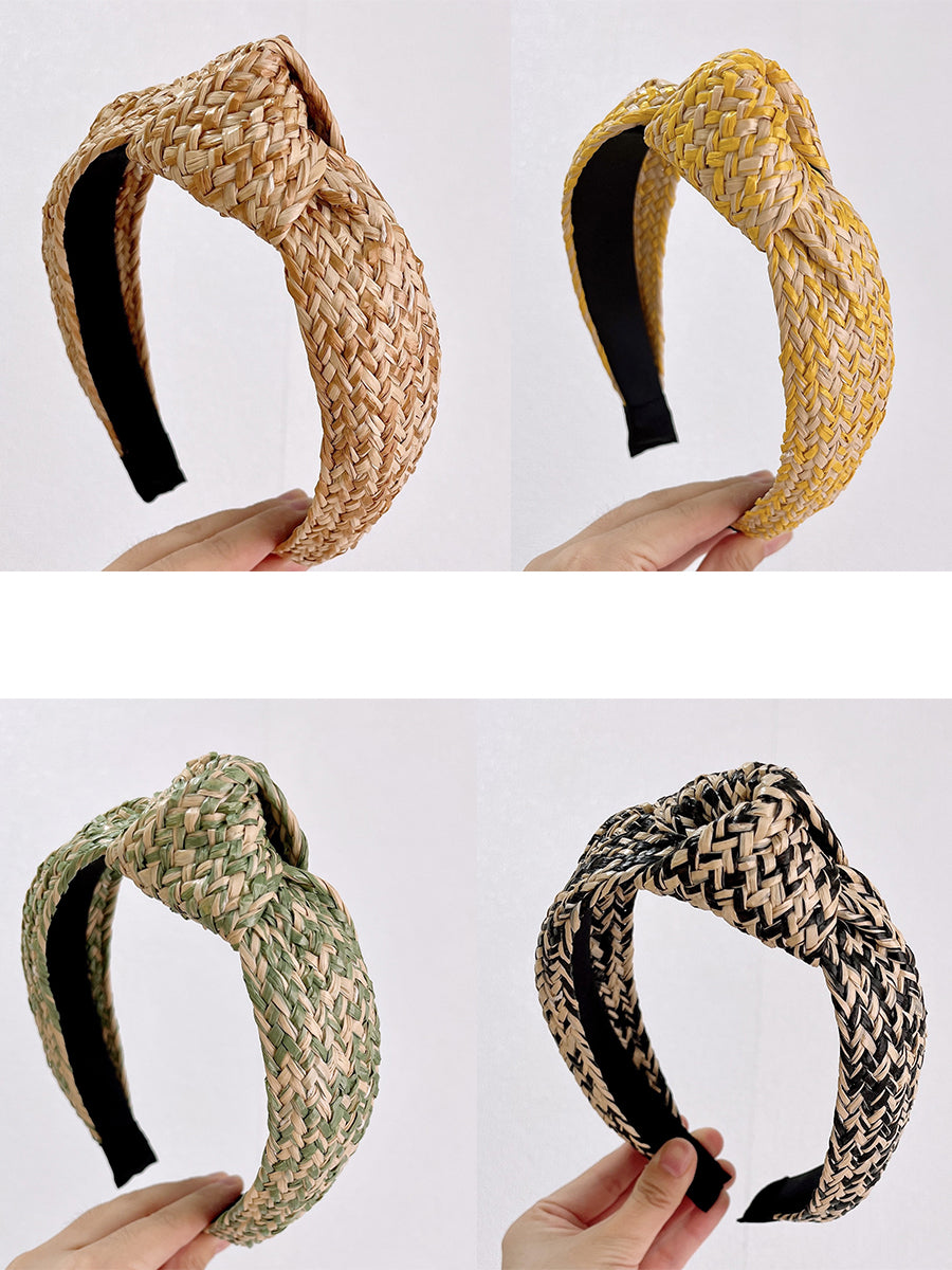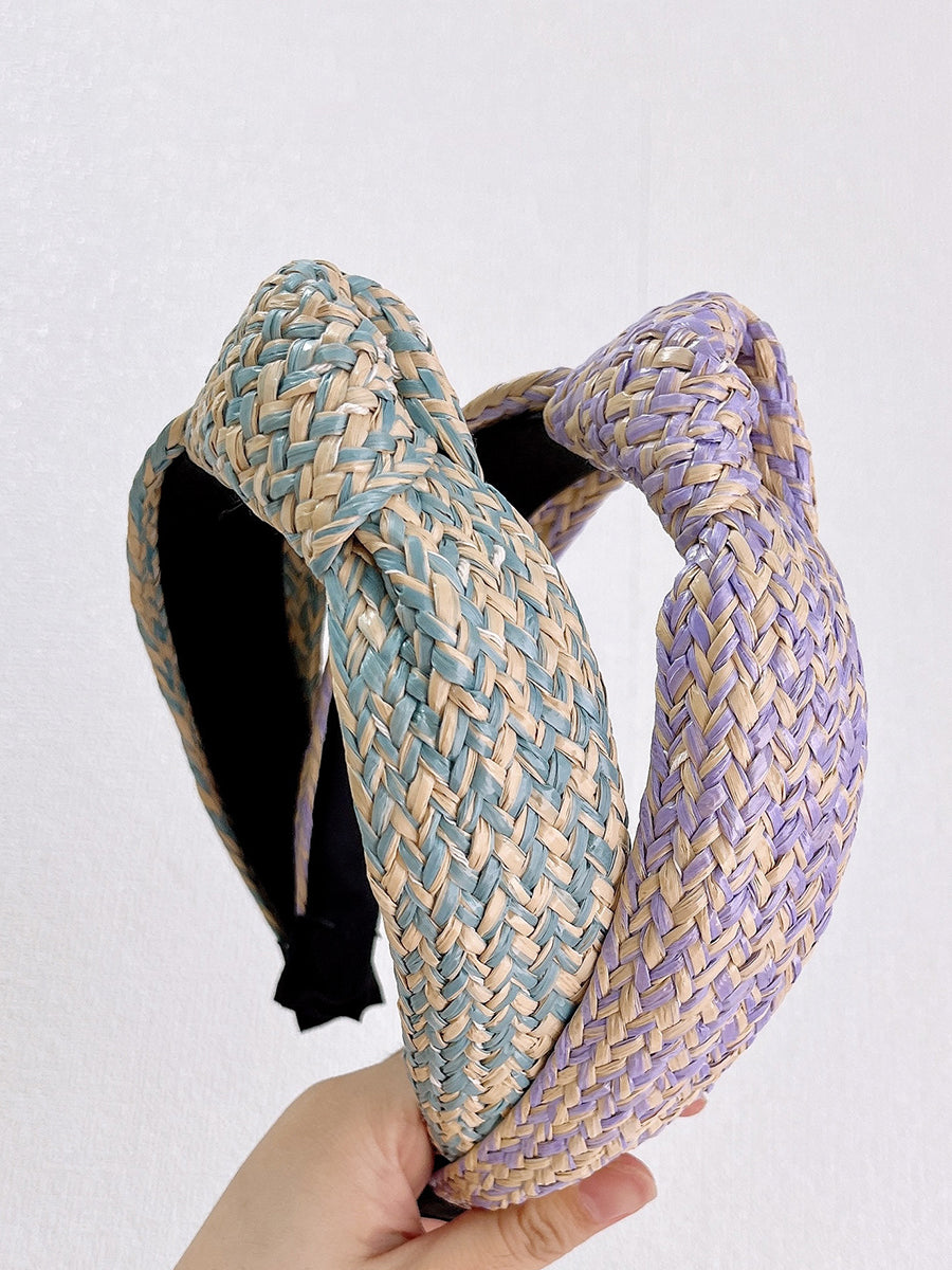 4 piezas de diademas de rafia tejidas con nudos, estilo artístico.