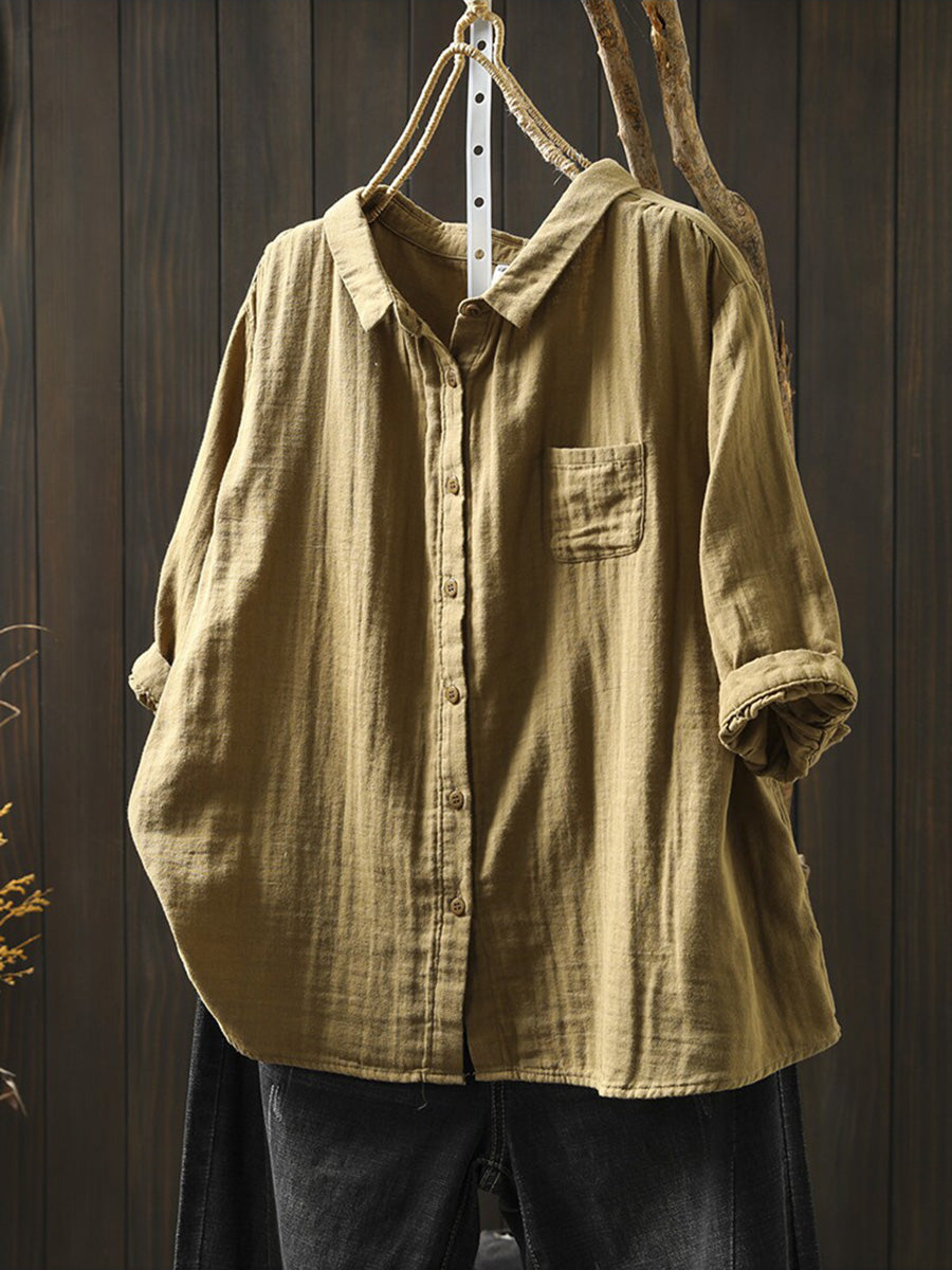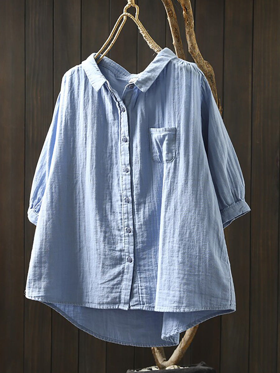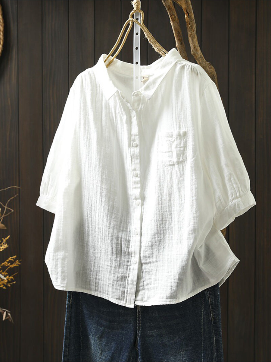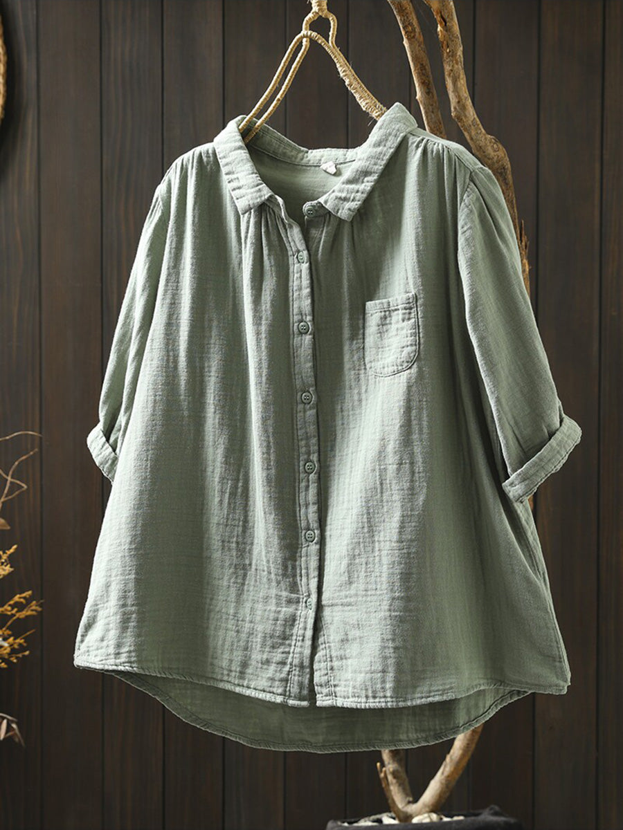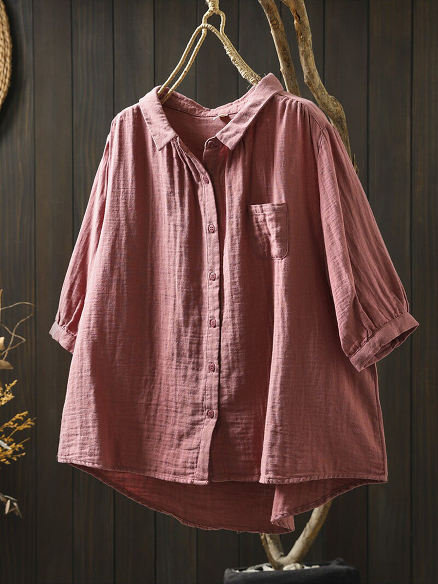 Camisa casual de verano para mujer, color liso, 100% algodón.