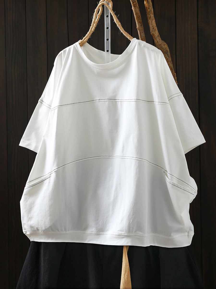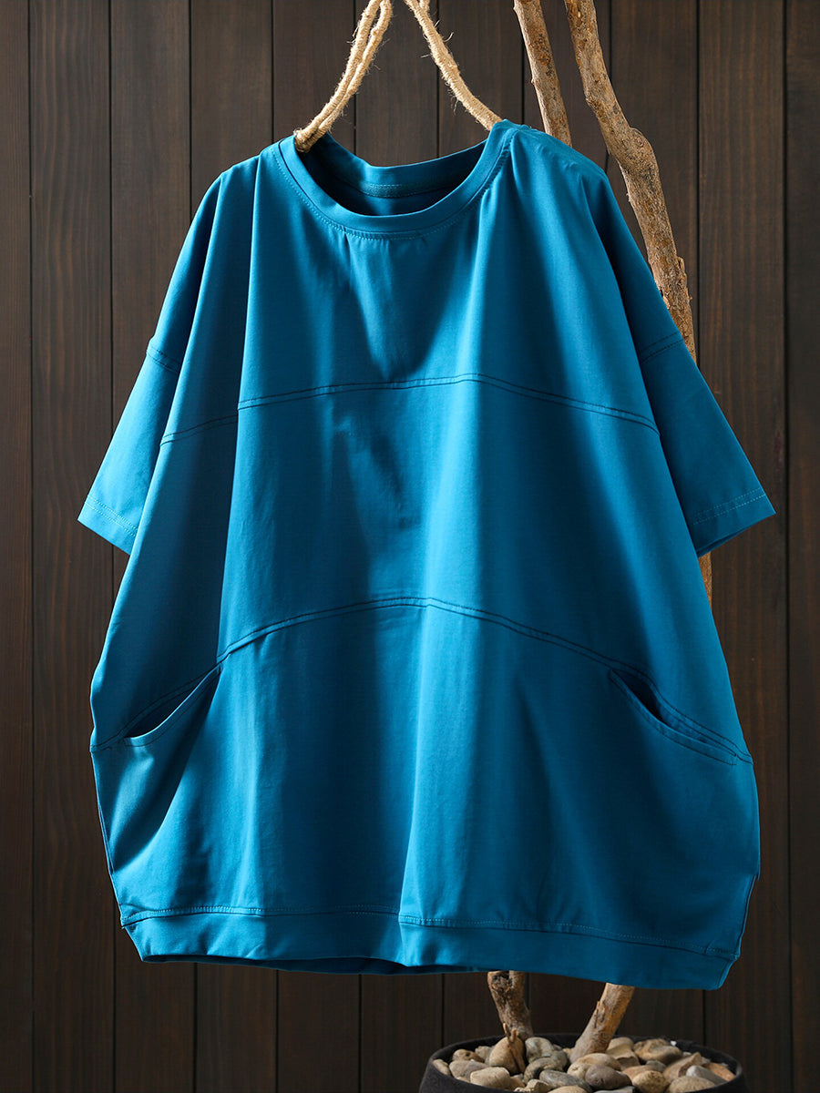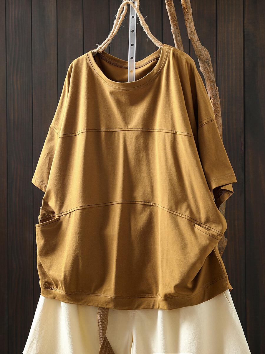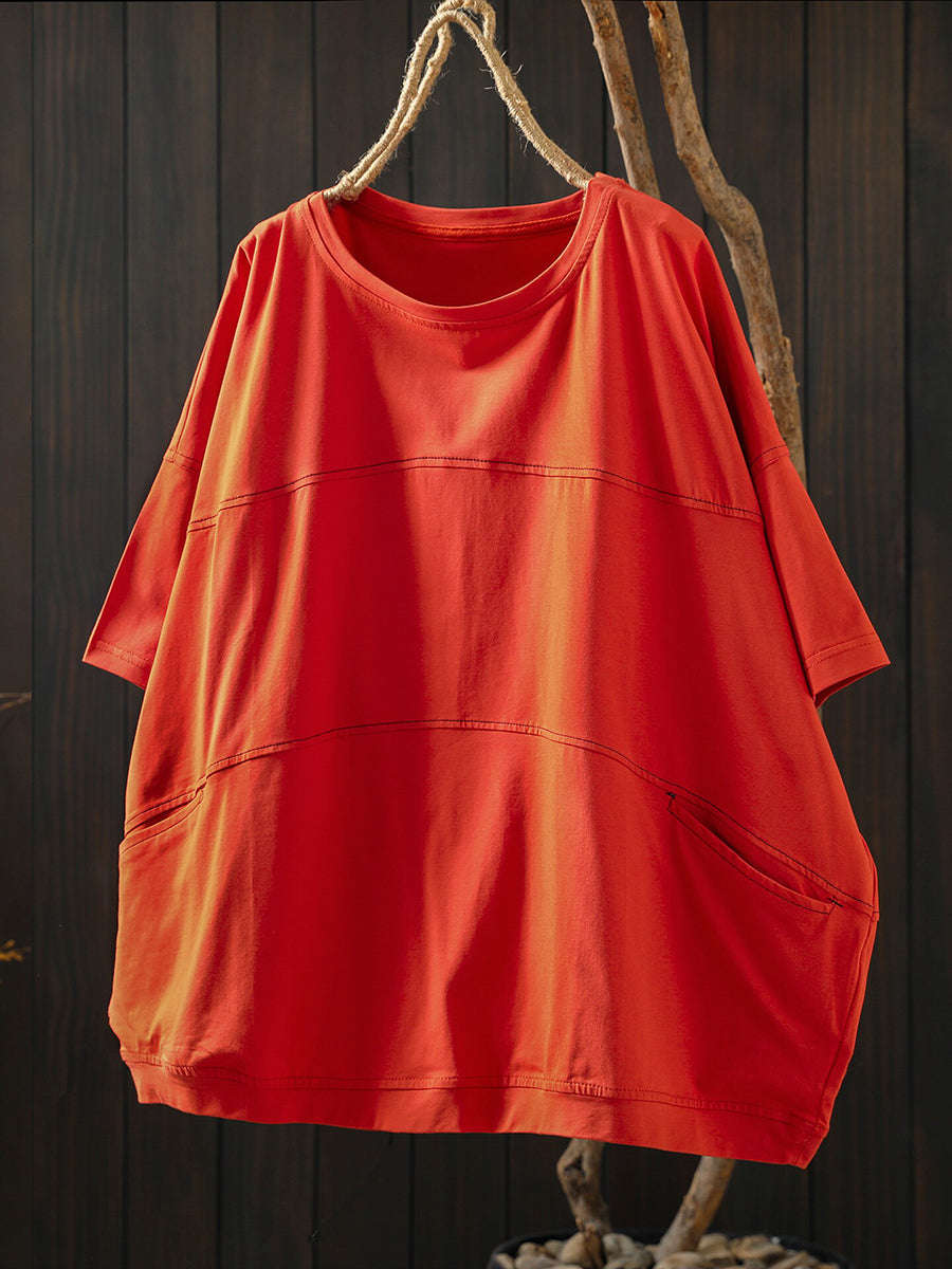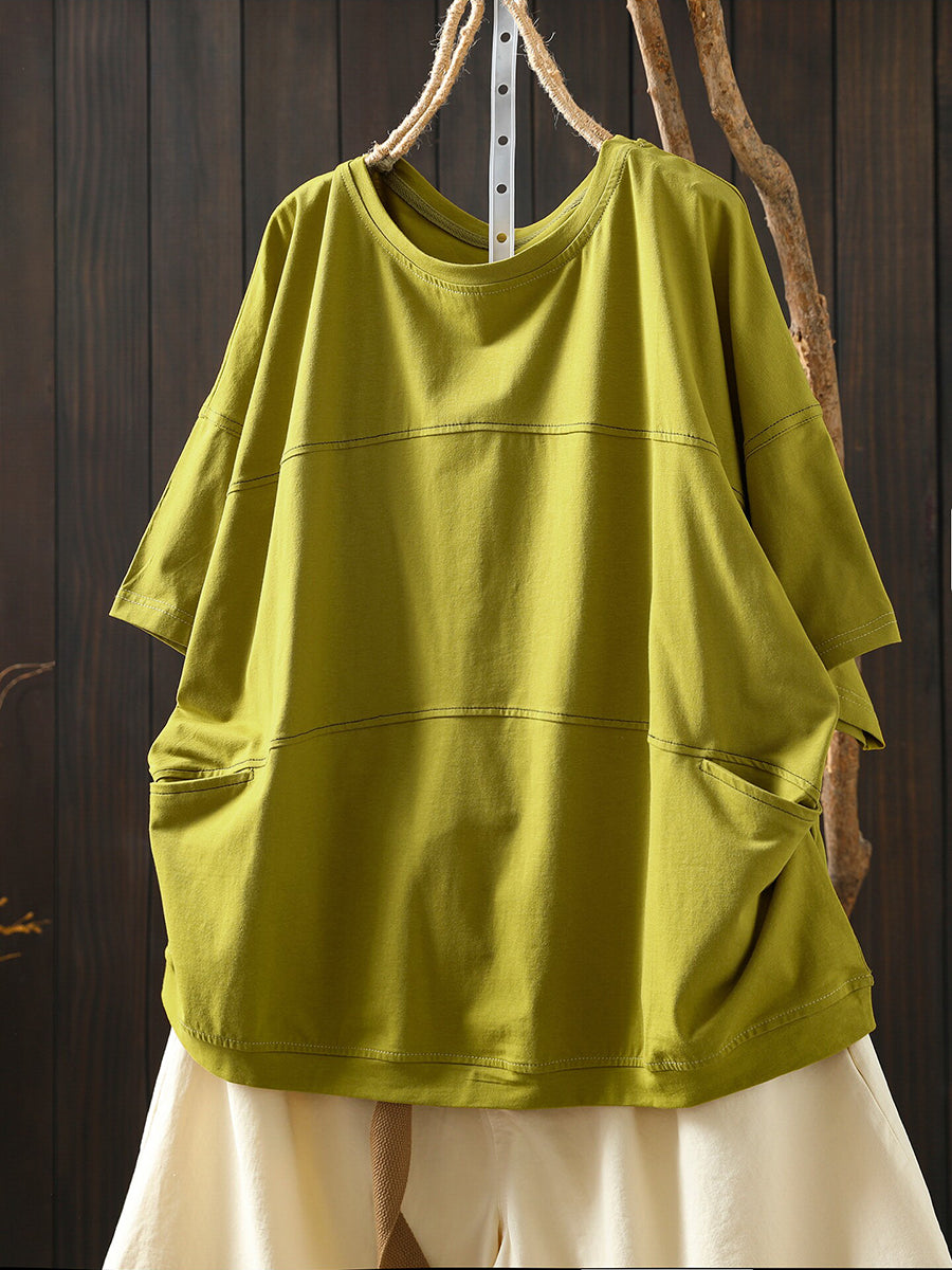 Camiseta casual de verano para mujer, color liso, 100% algodón.