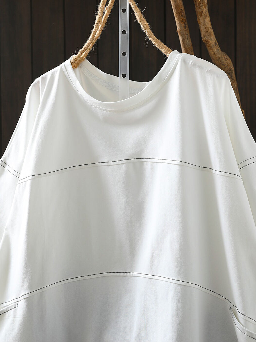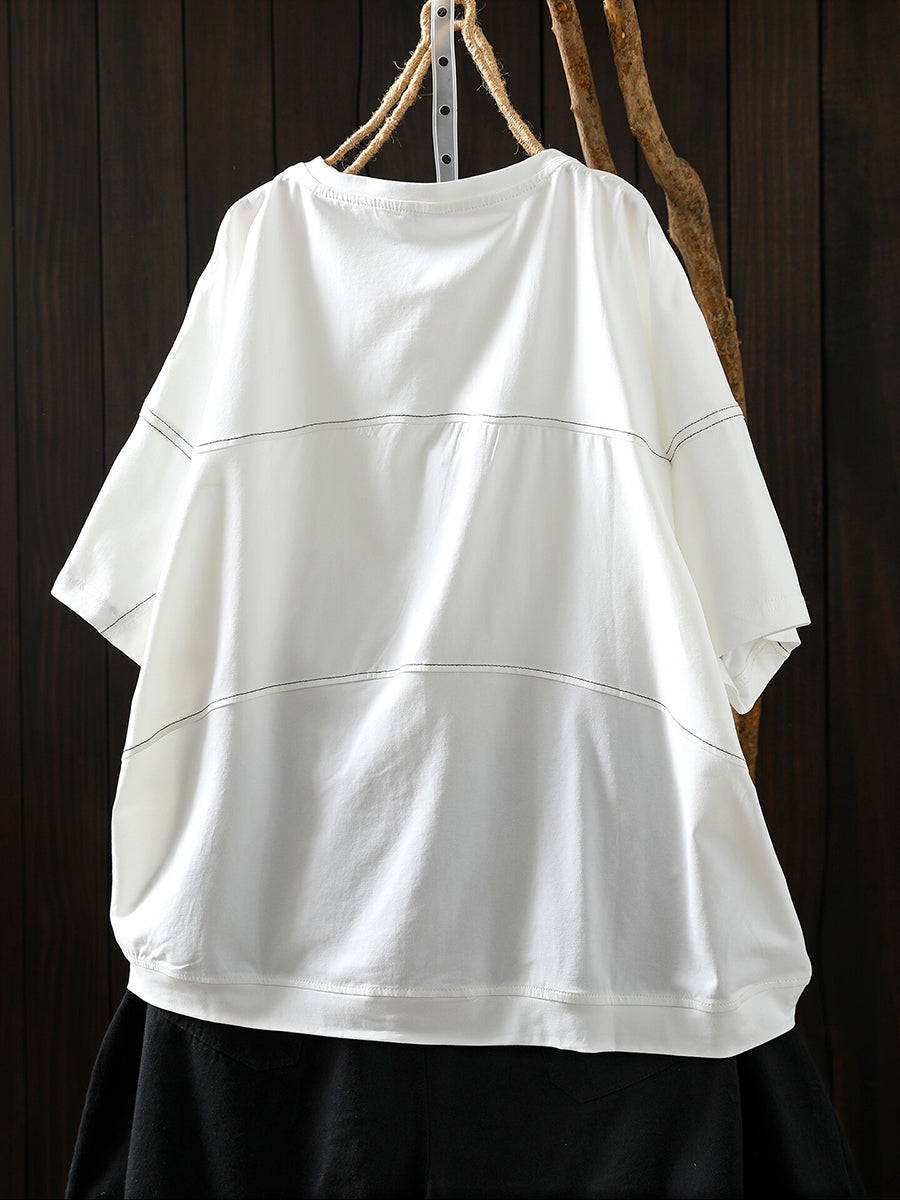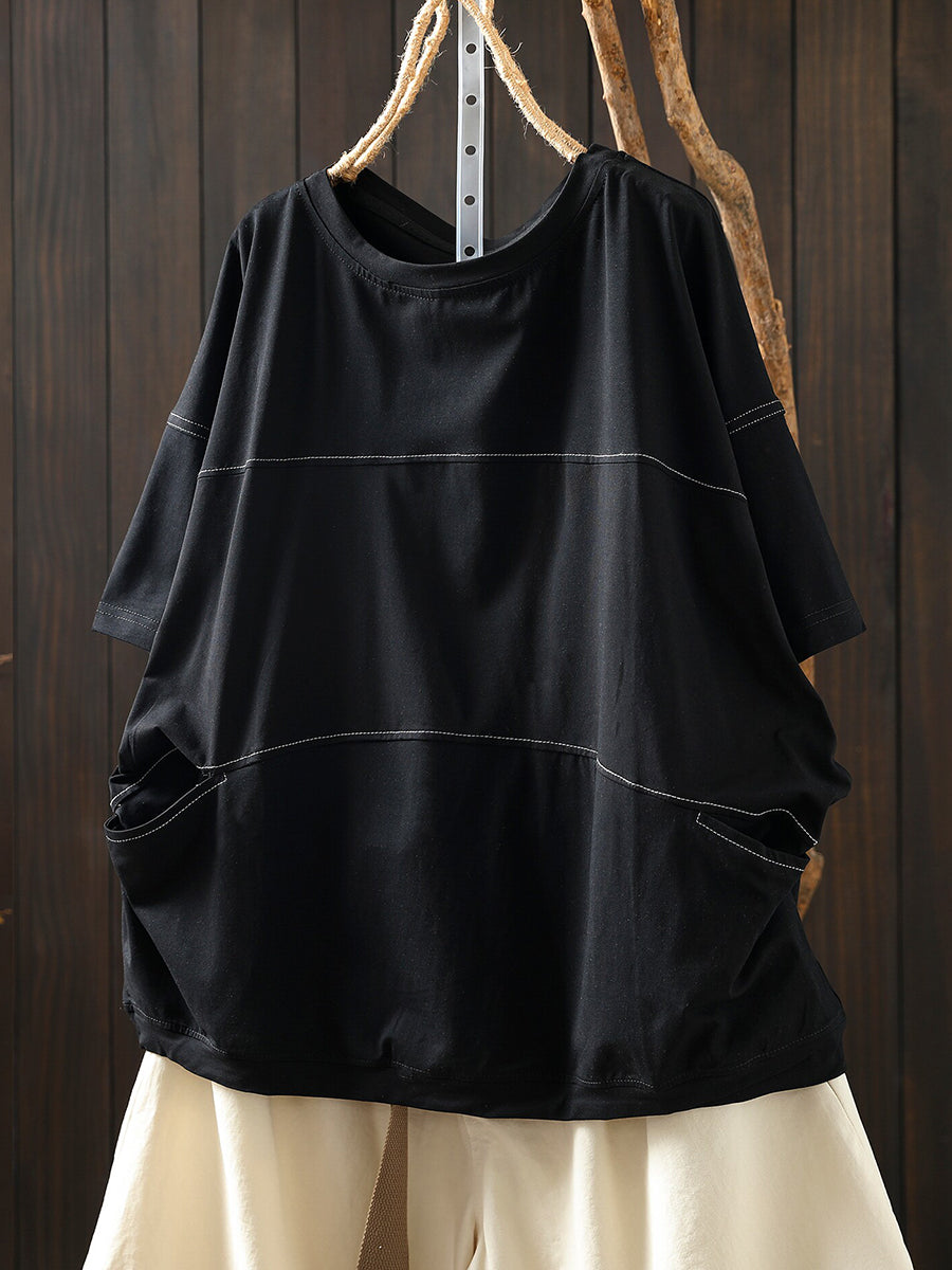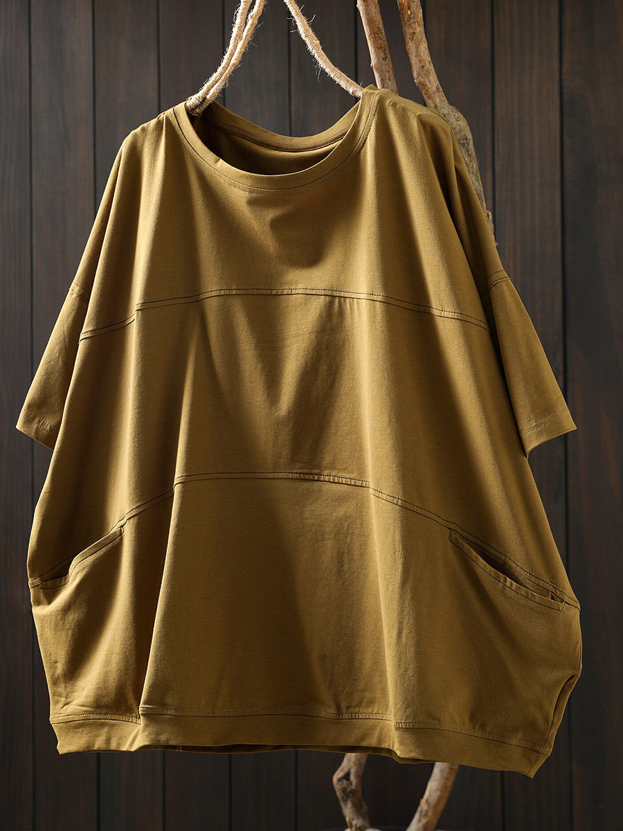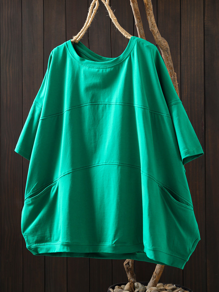 Camiseta casual de verano para mujer, color liso, 100% algodón.