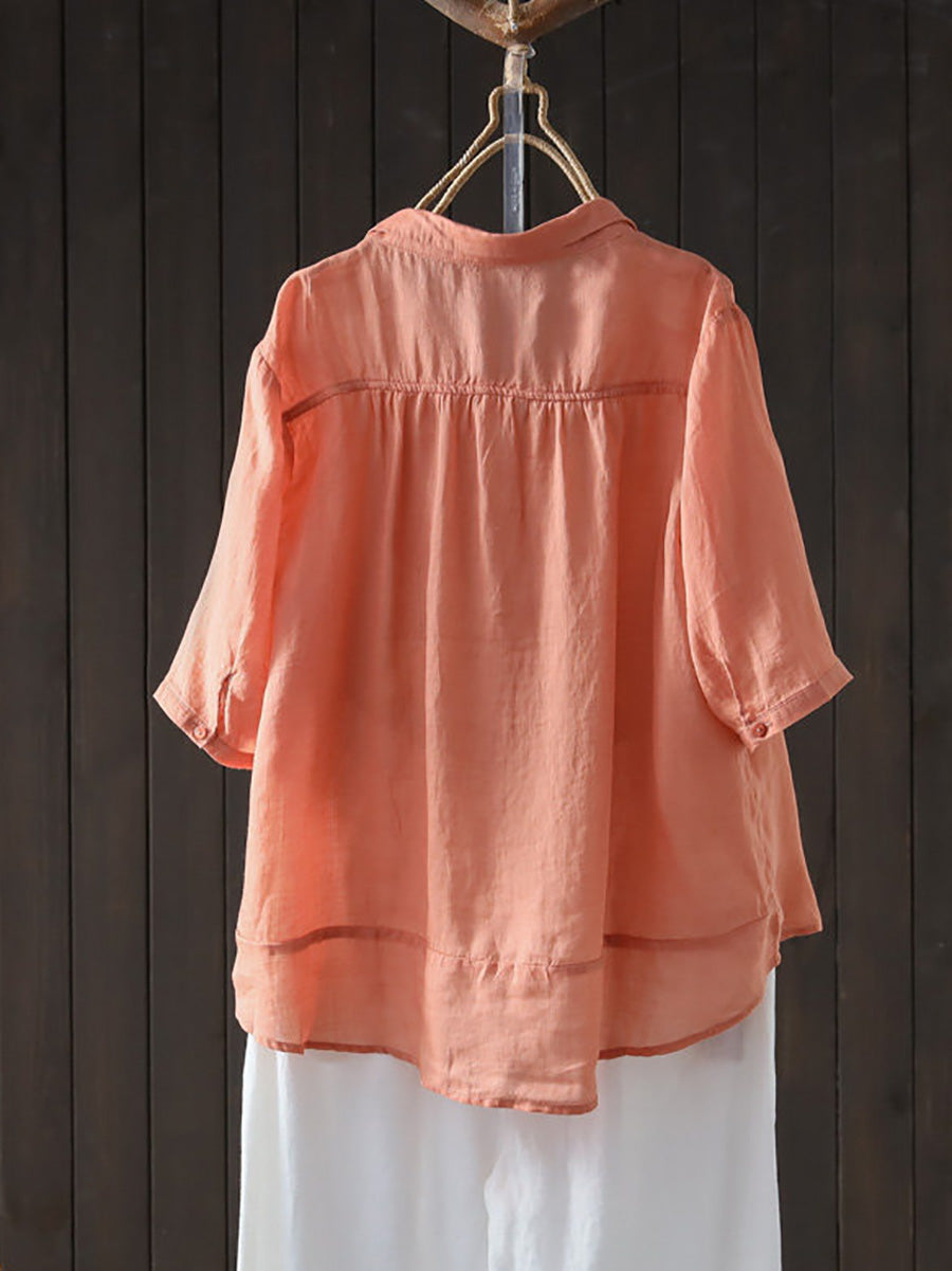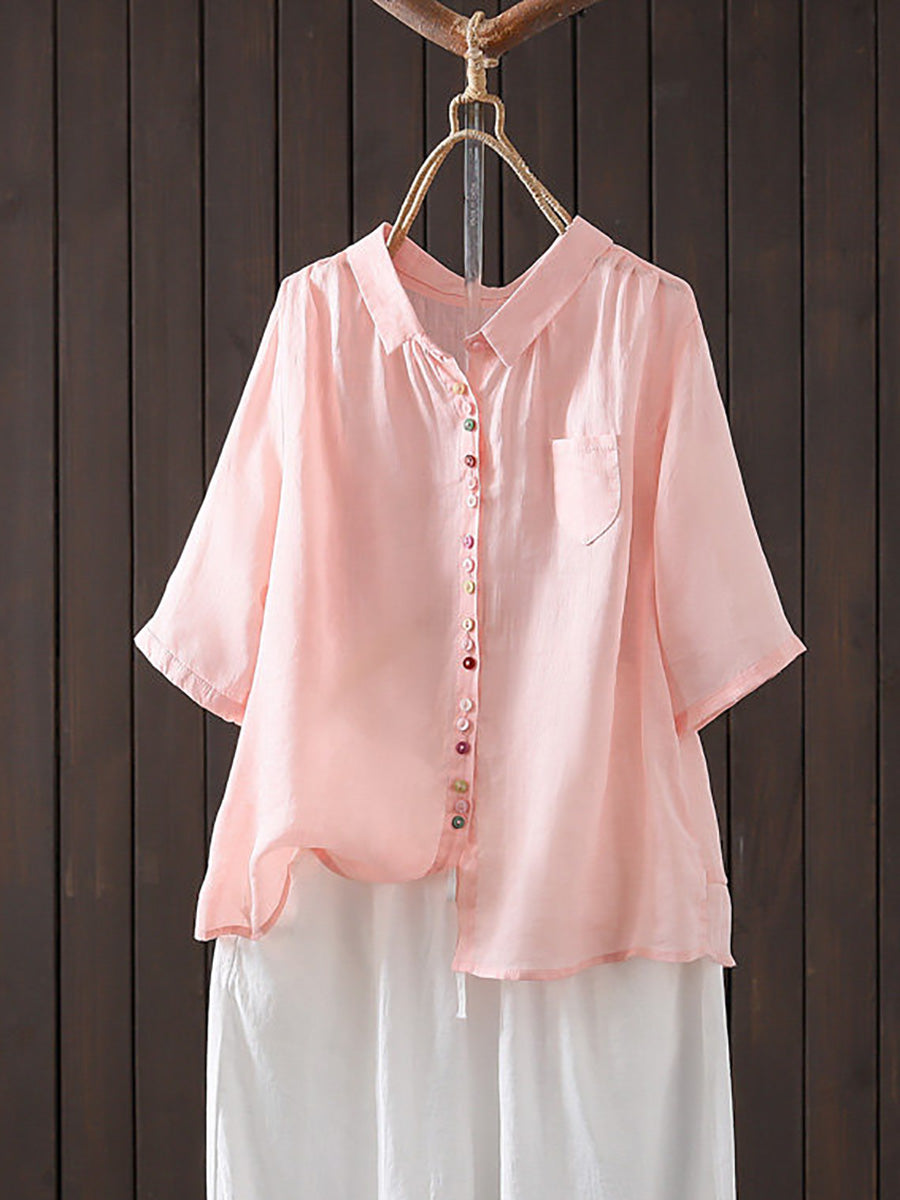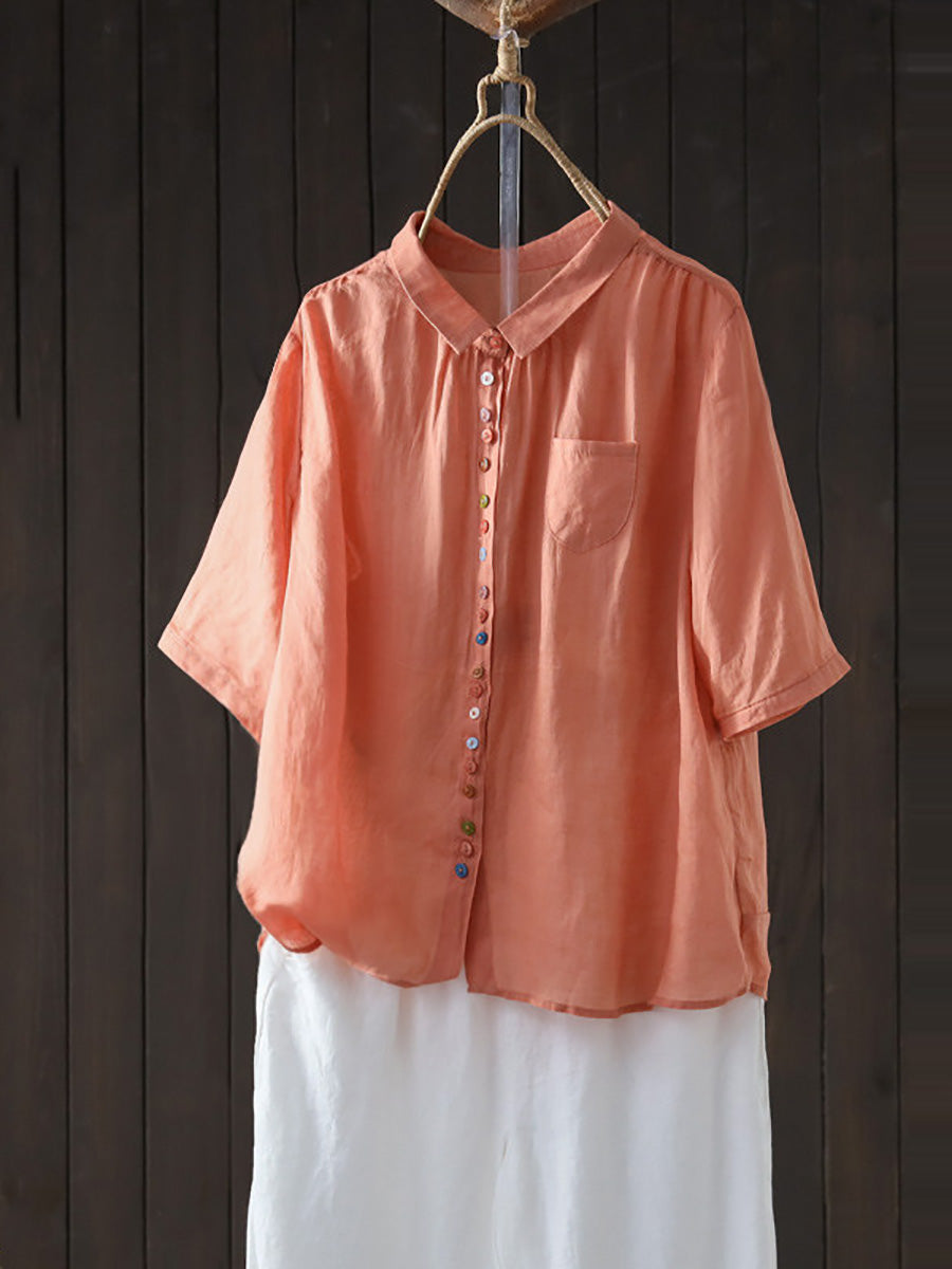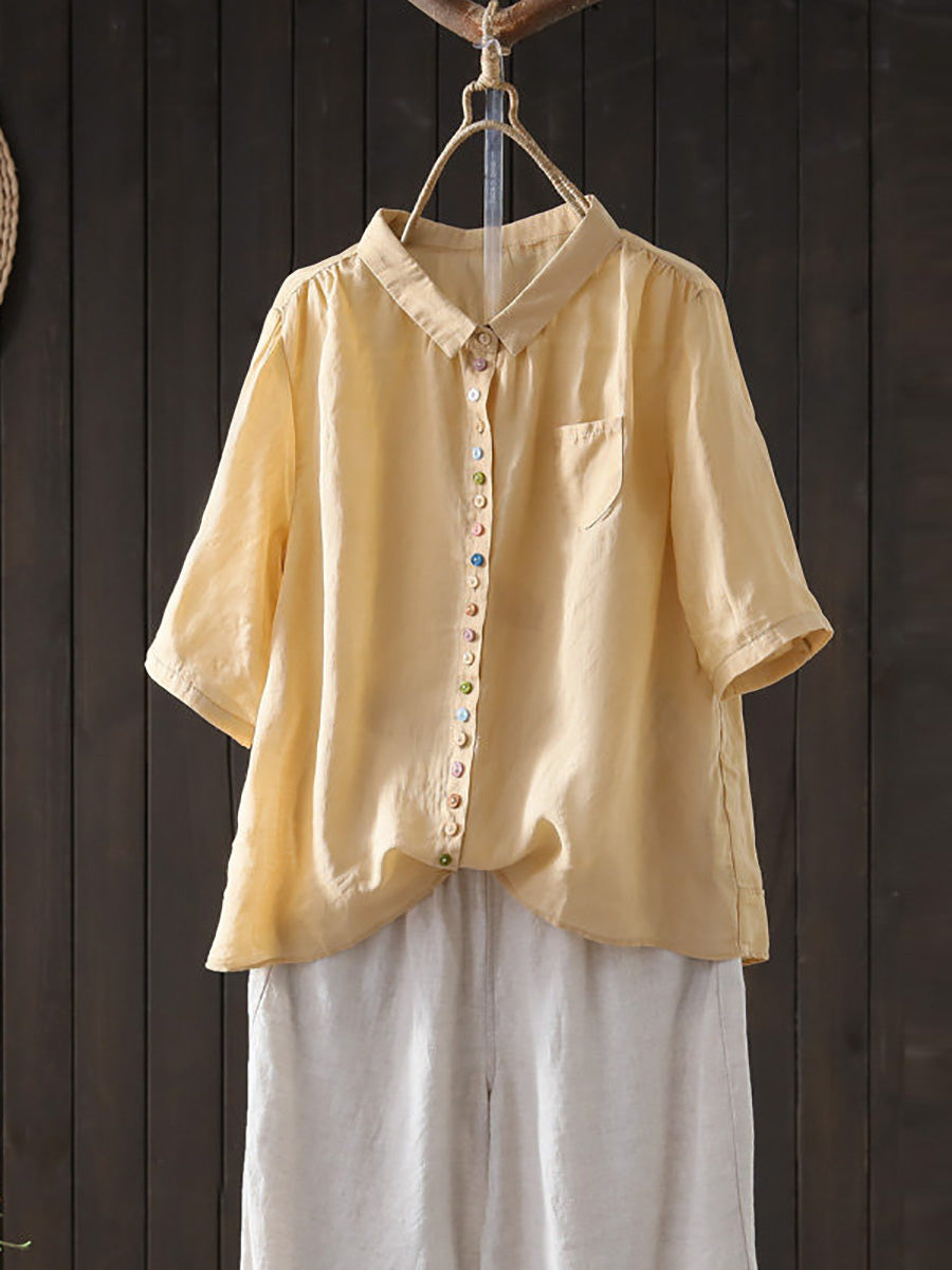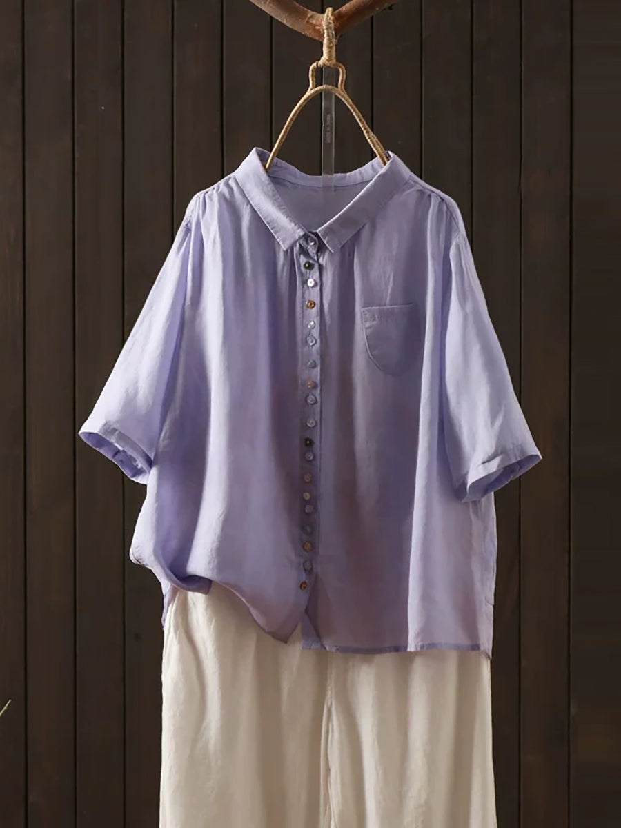 Camisa casual de verano para mujer, color liso, 100% ramio.