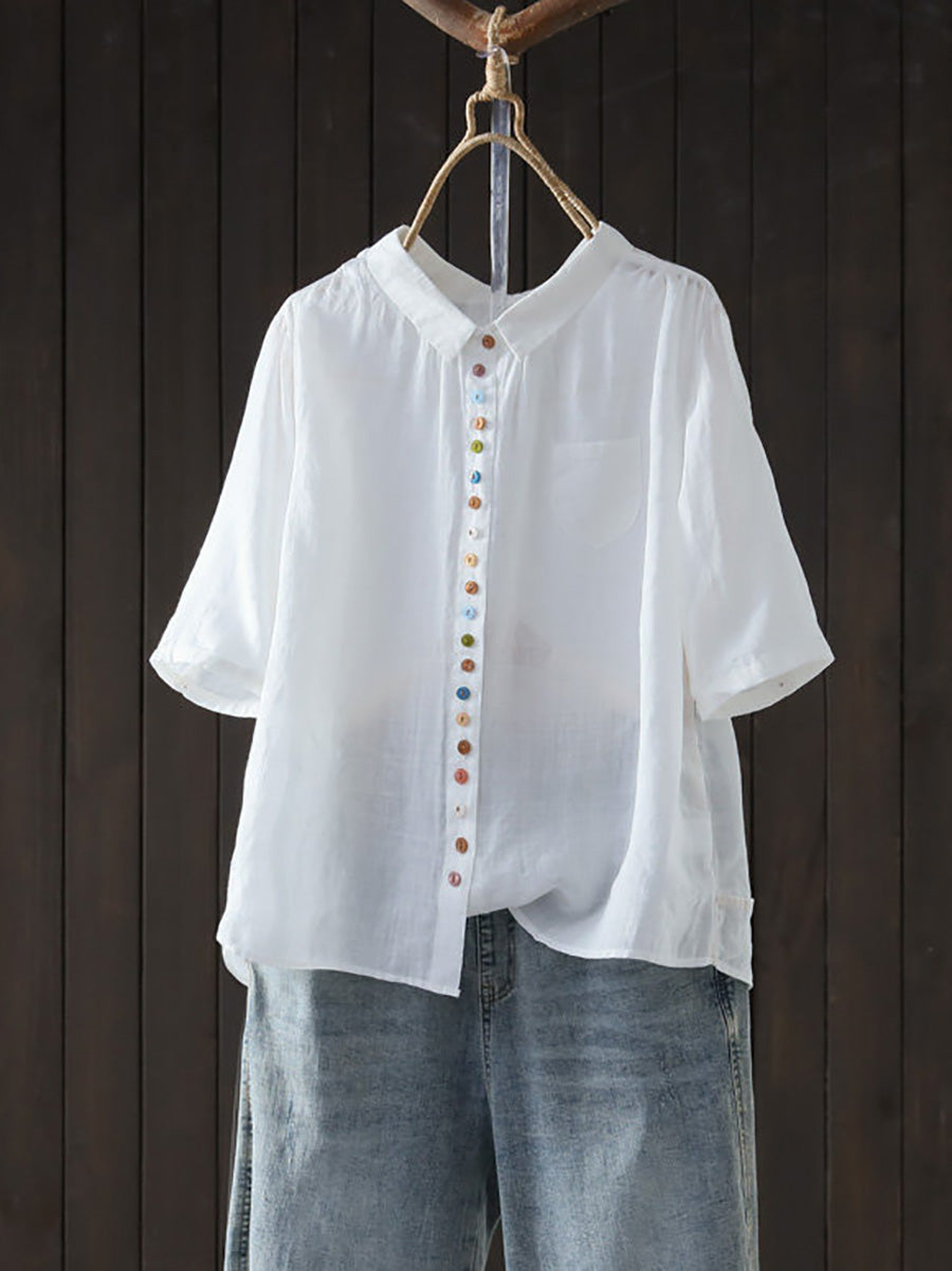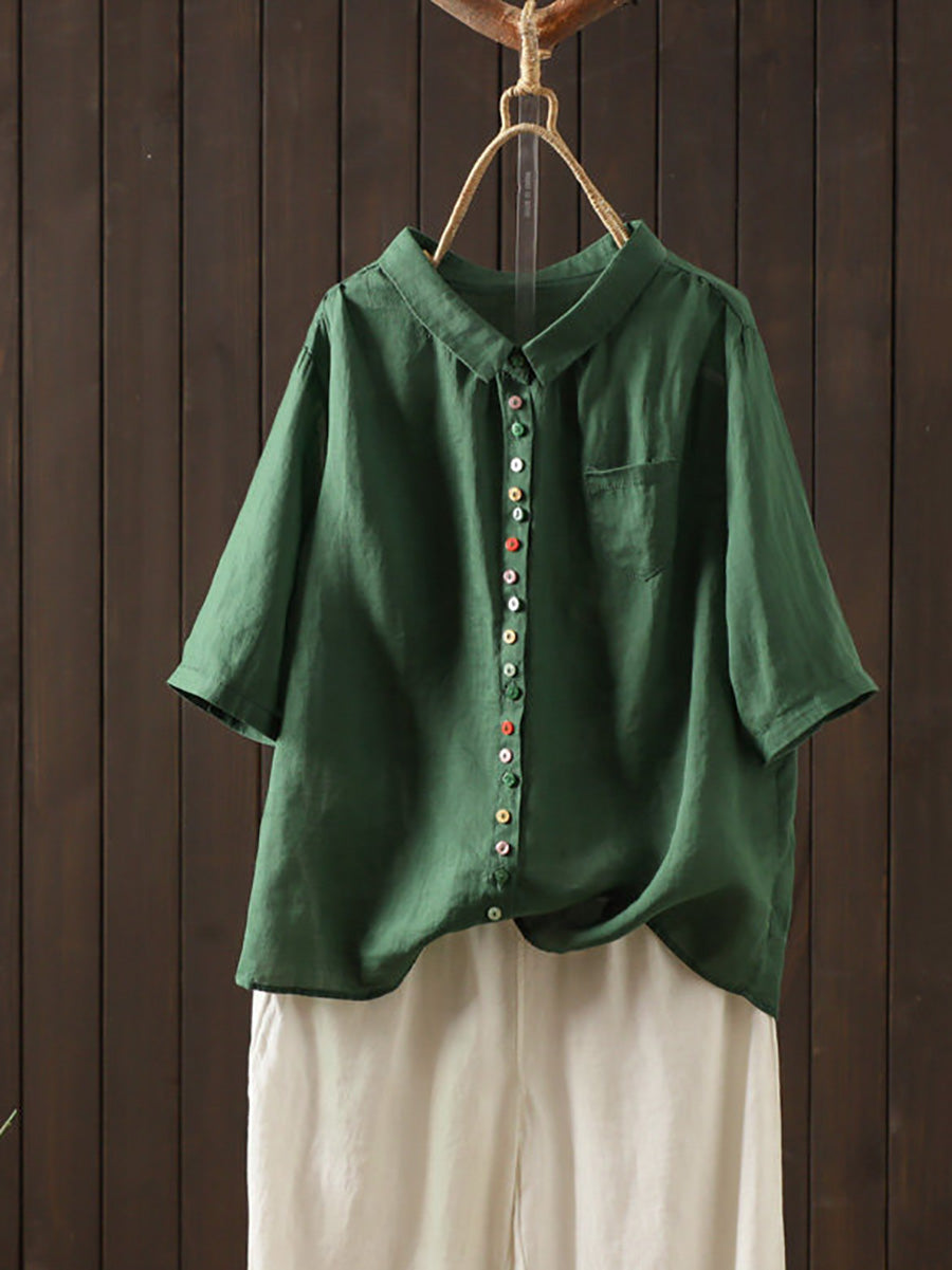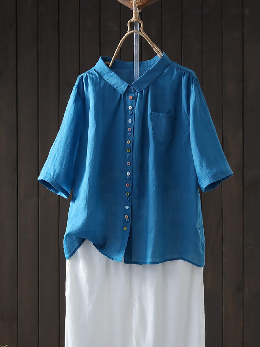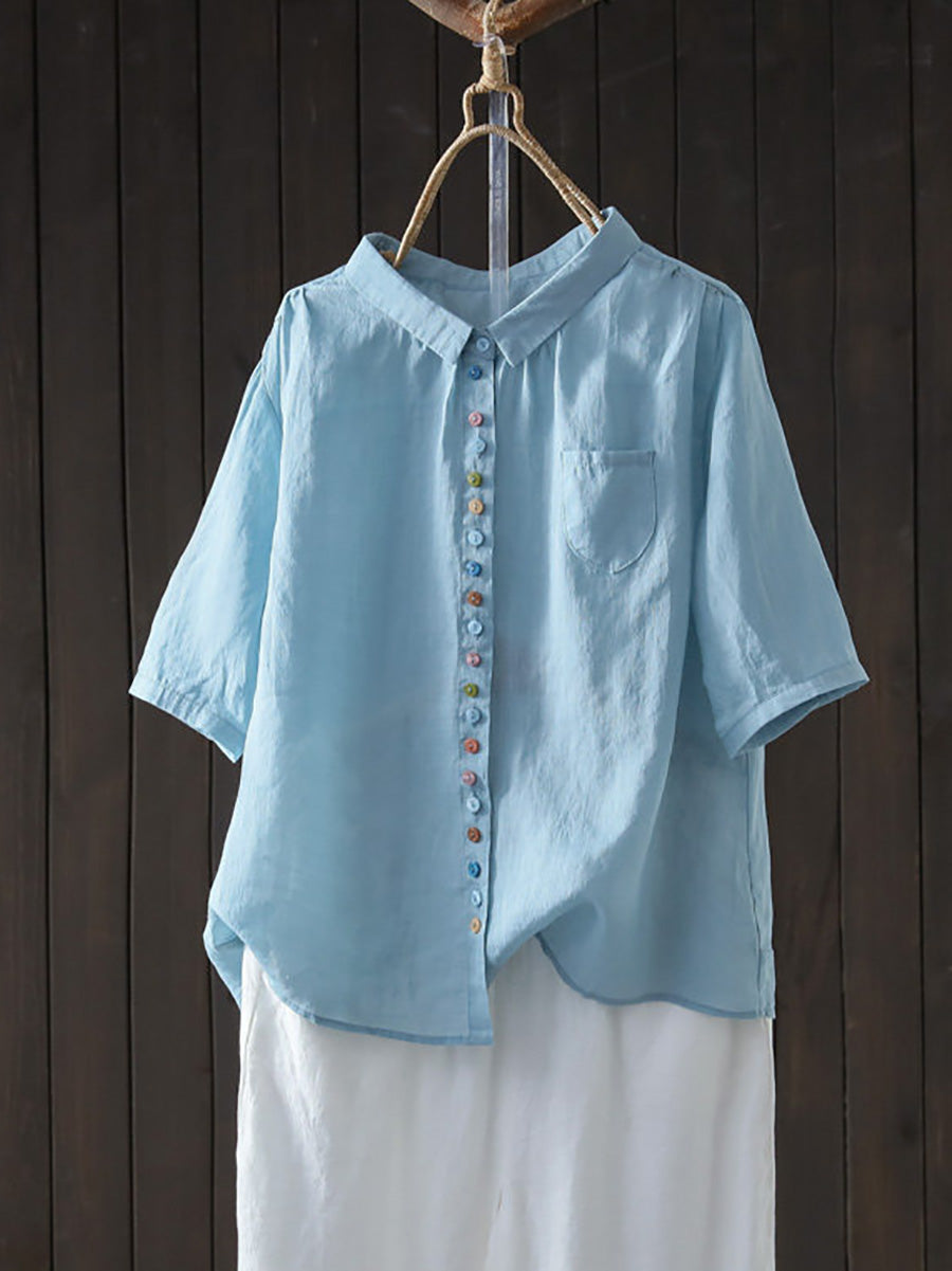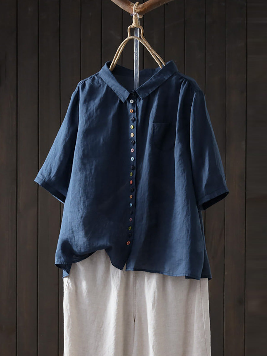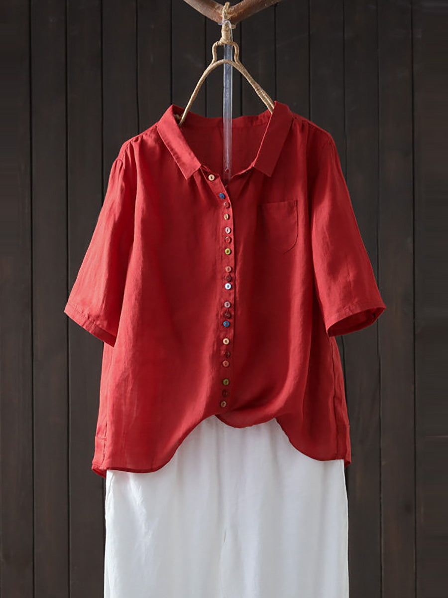 Camisa casual de verano para mujer, color liso, 100% ramio.