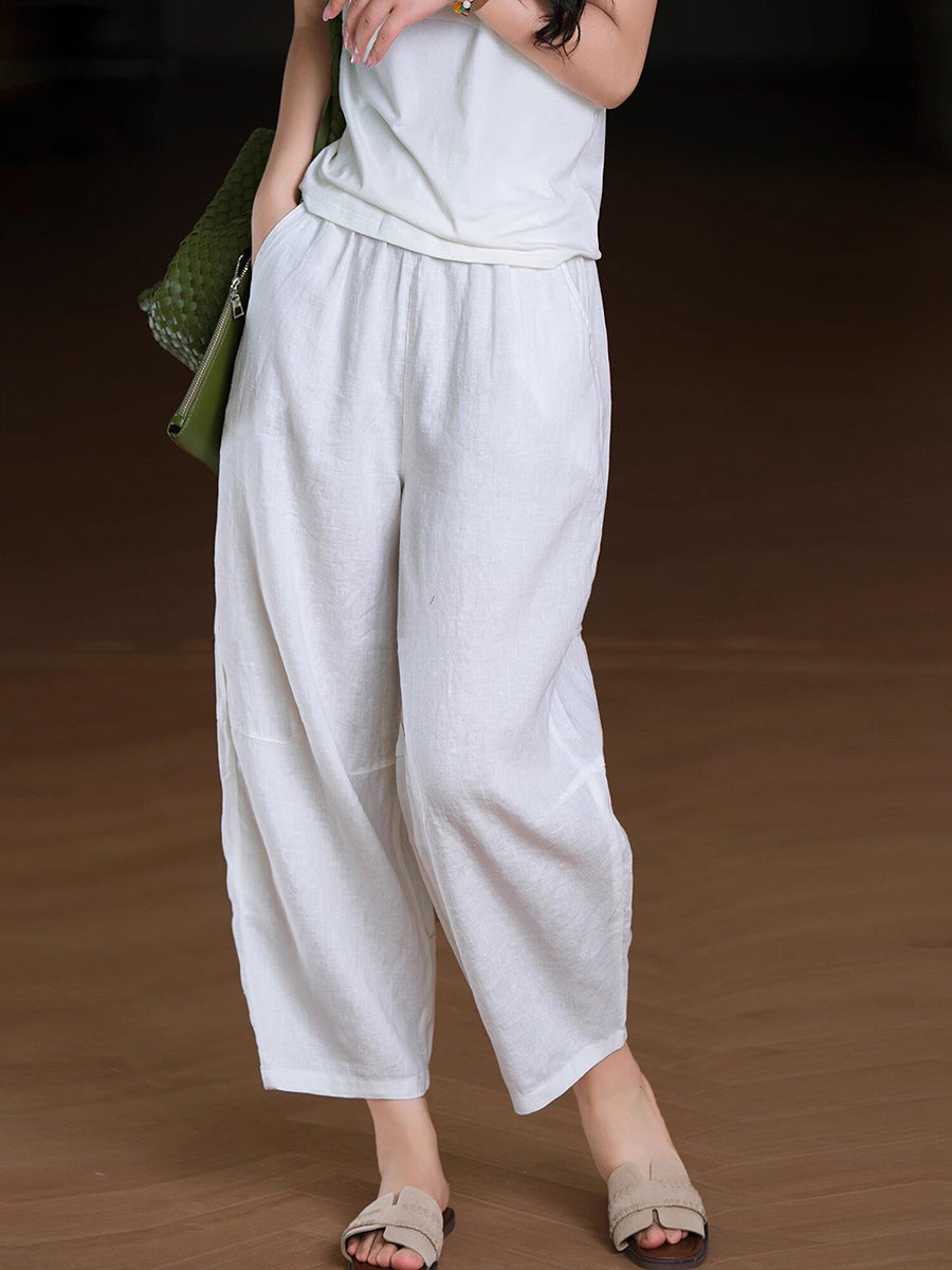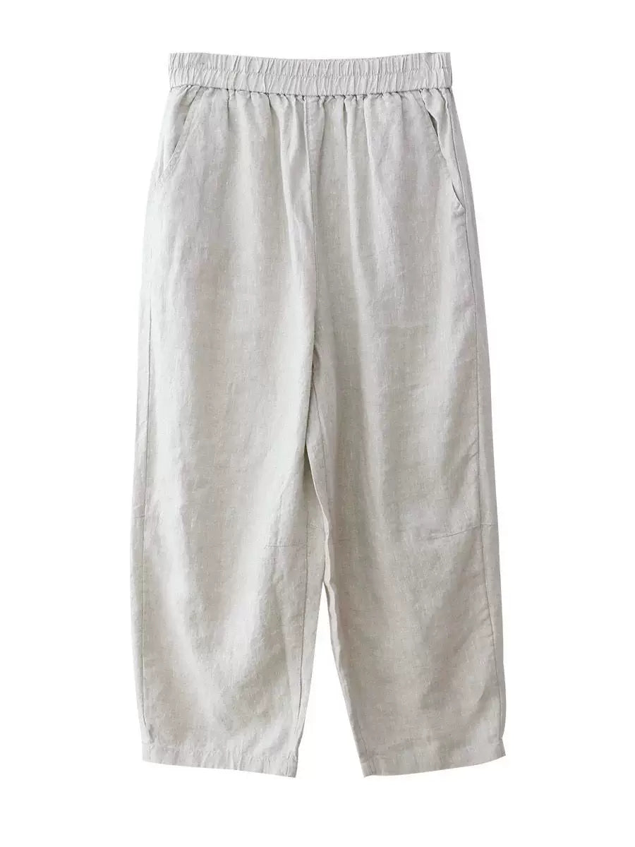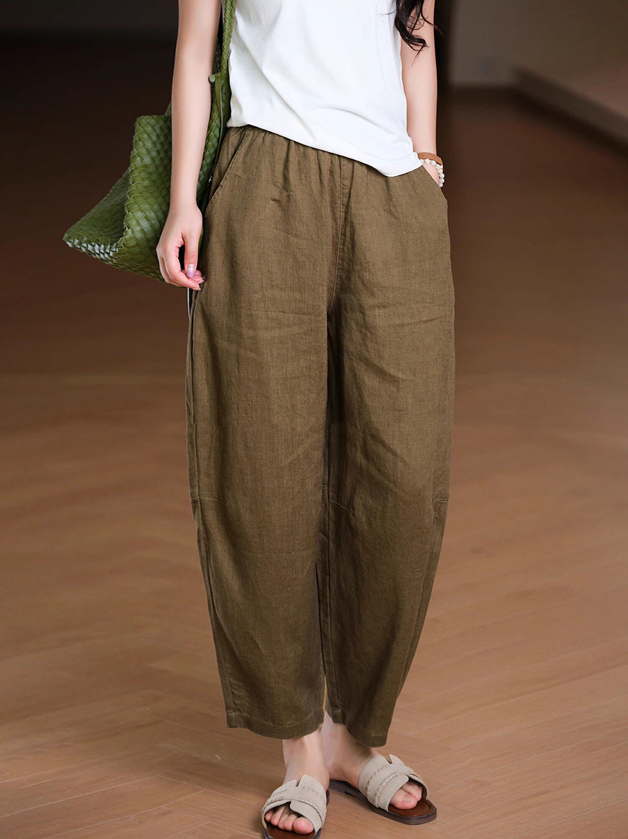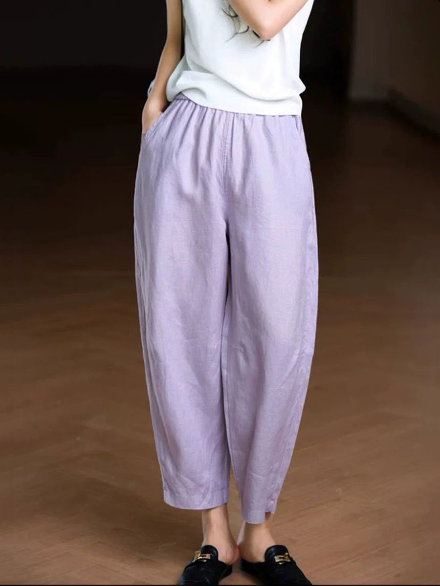 Pantalones harem de lino 100% color liso para mujer, ideales para el verano.