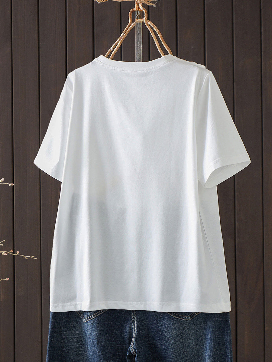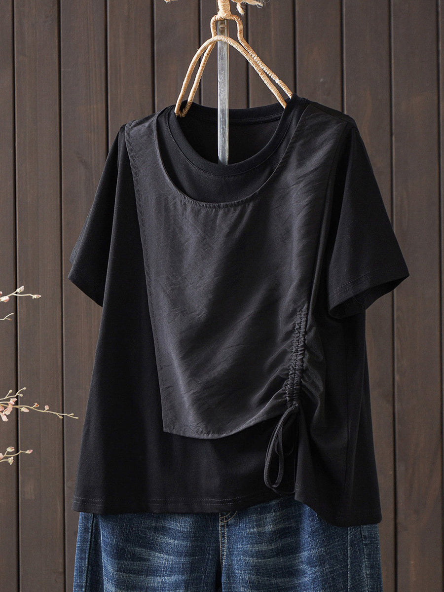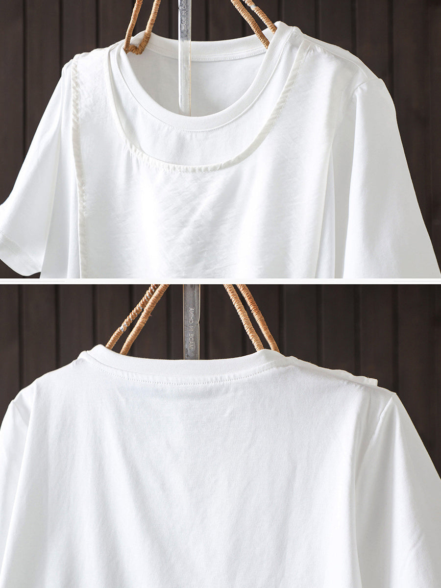 Camiseta de verano versátil para mujer con cuello redondo simulado