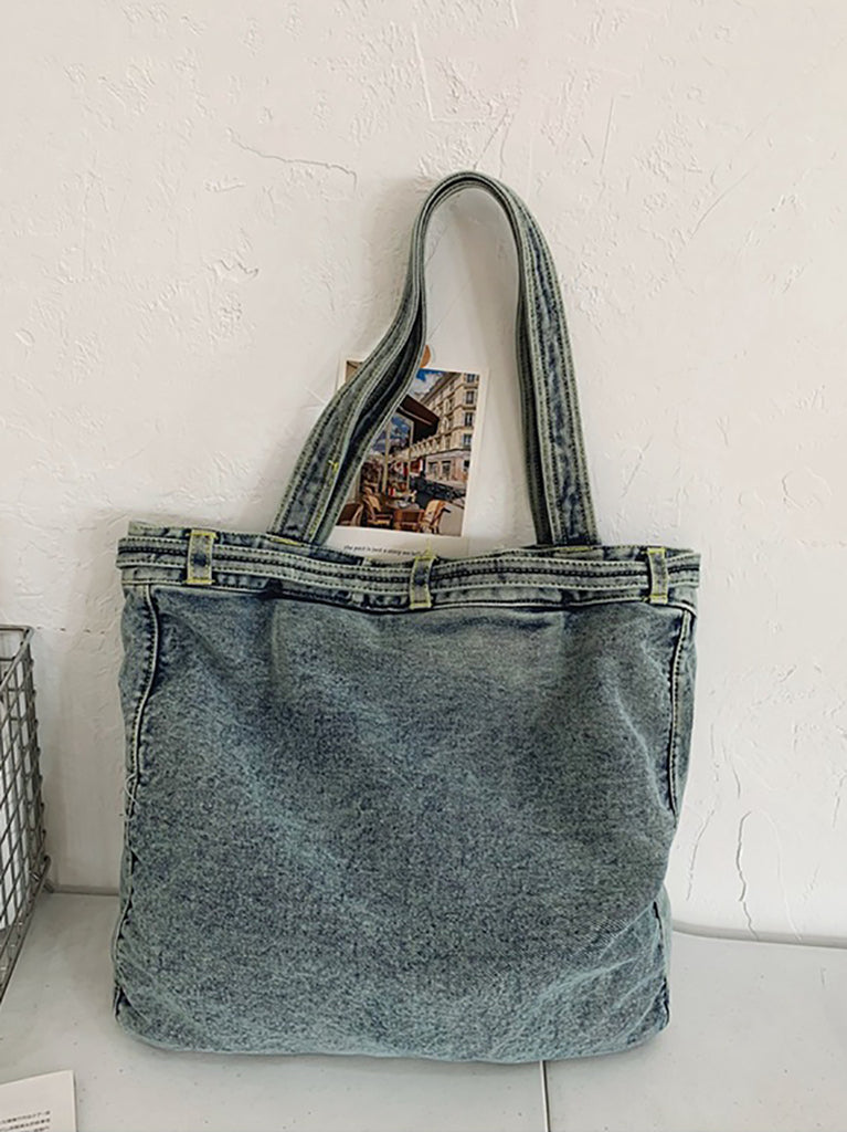 Bolso de mano de mezclilla con bolsillo sólido vintage para mujer