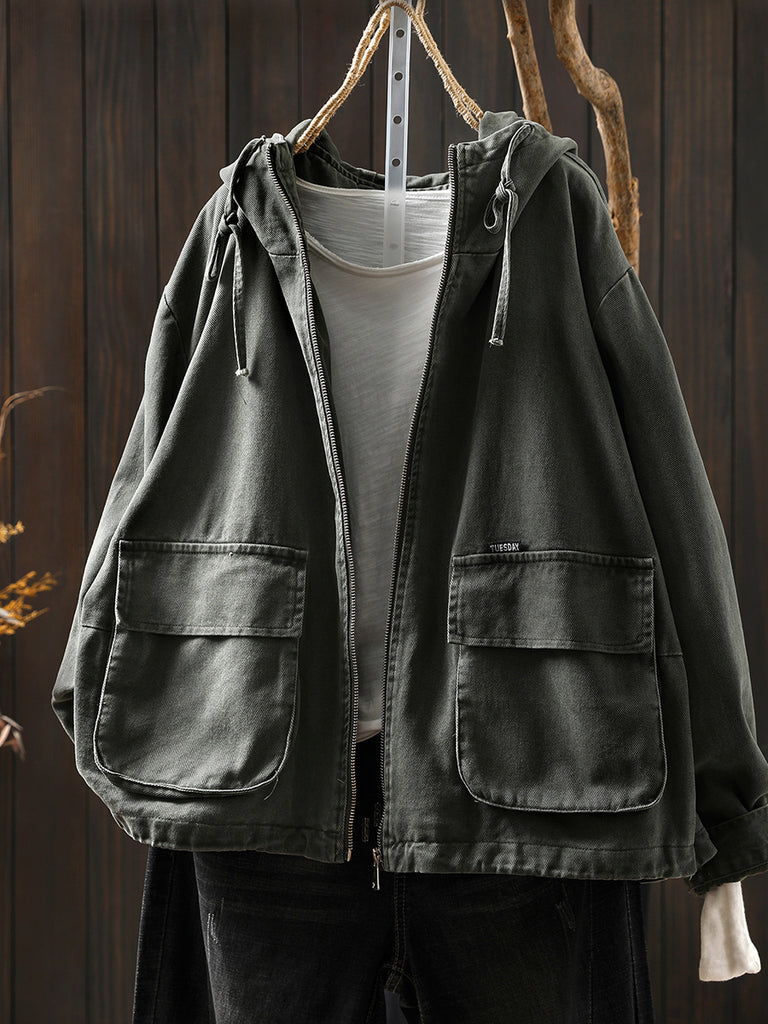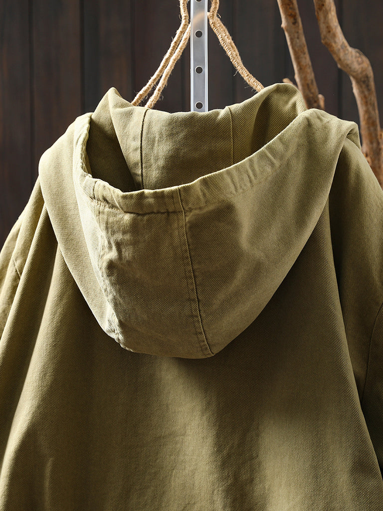 Cárdigan de algodón con capucha de color puro de otoño para mujer