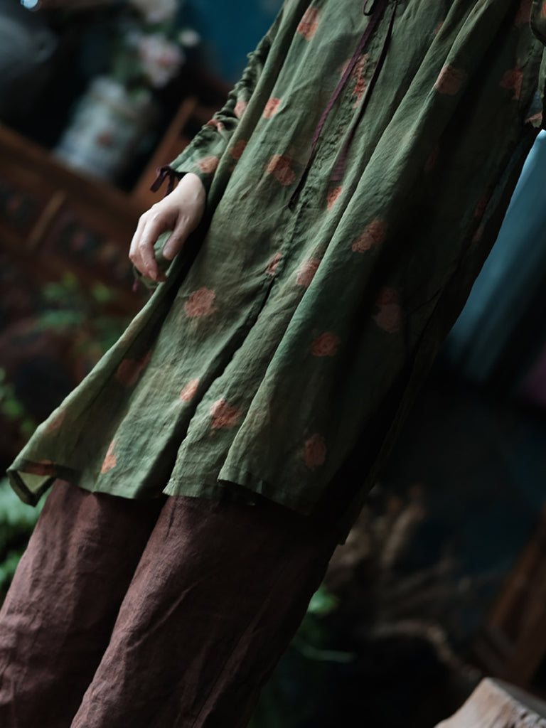 Camisa holgada de ramio con cuello redondo y flores retro de verano para mujer