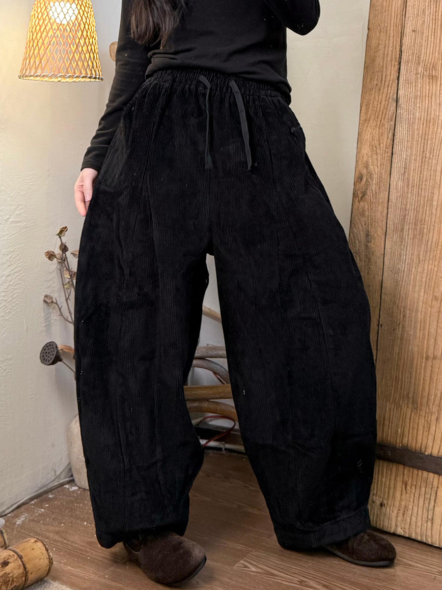 Pantalones harén informales de pana con forro polar para mujer, de invierno