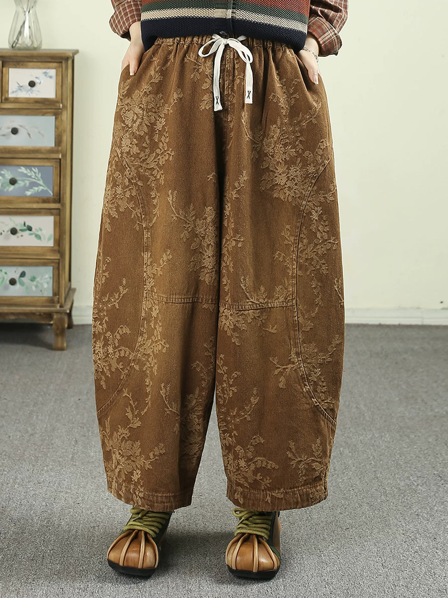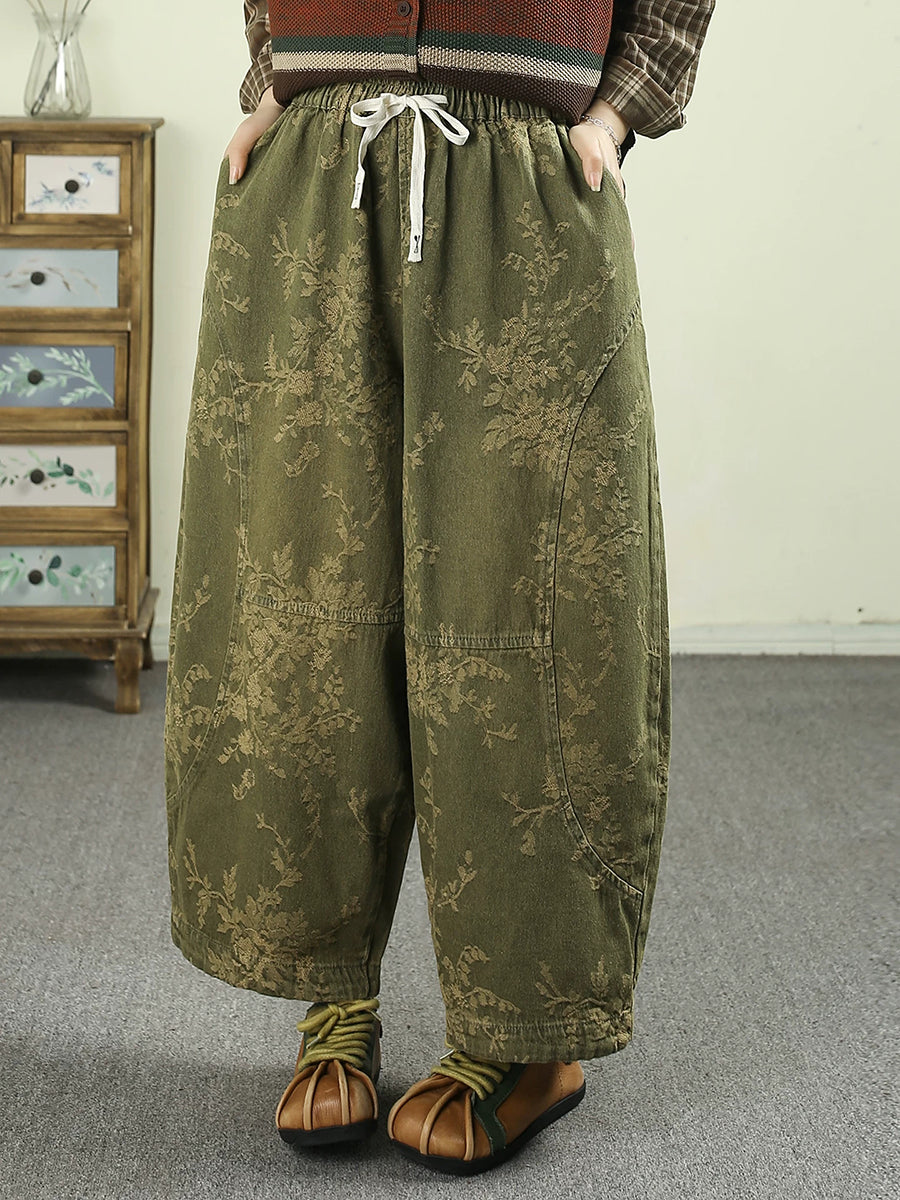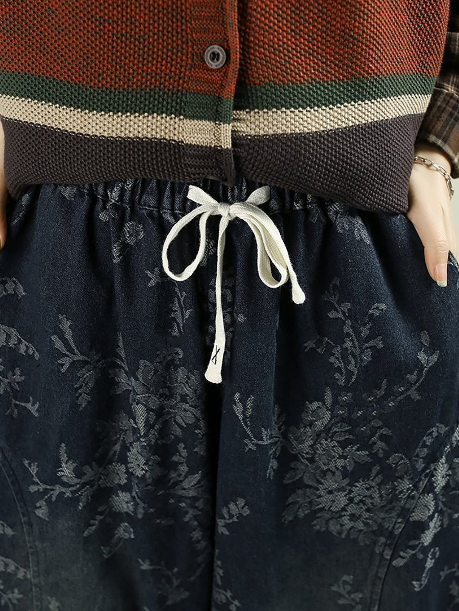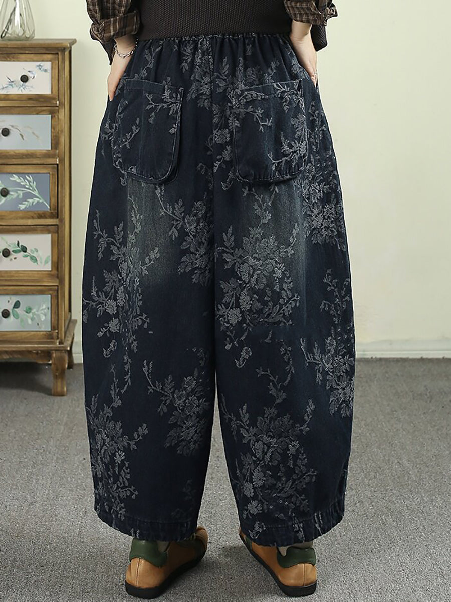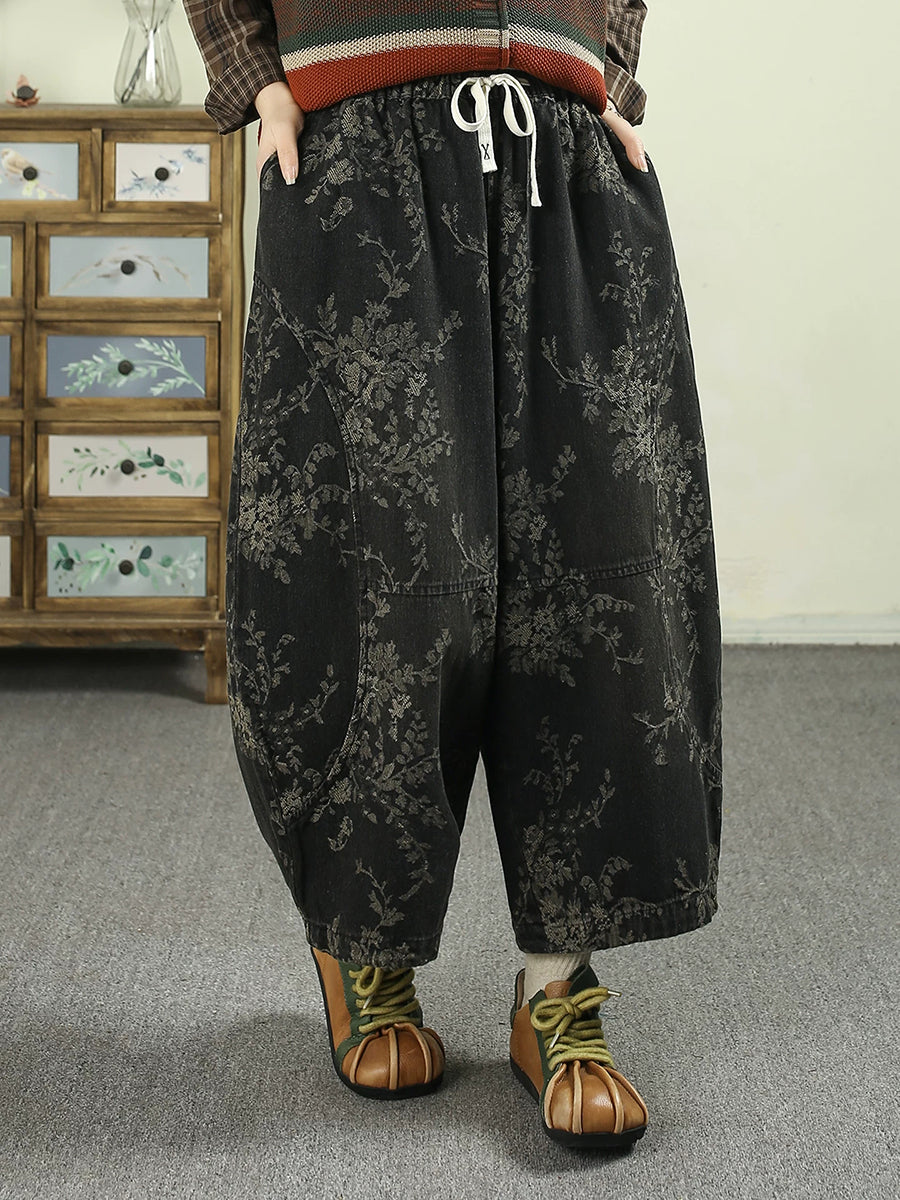 Pantalones harén de mezclilla con estampado floral retro de primavera para mujer