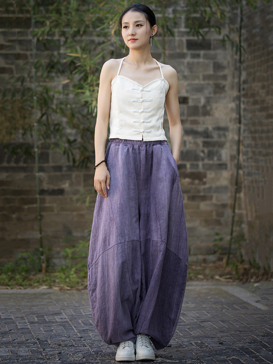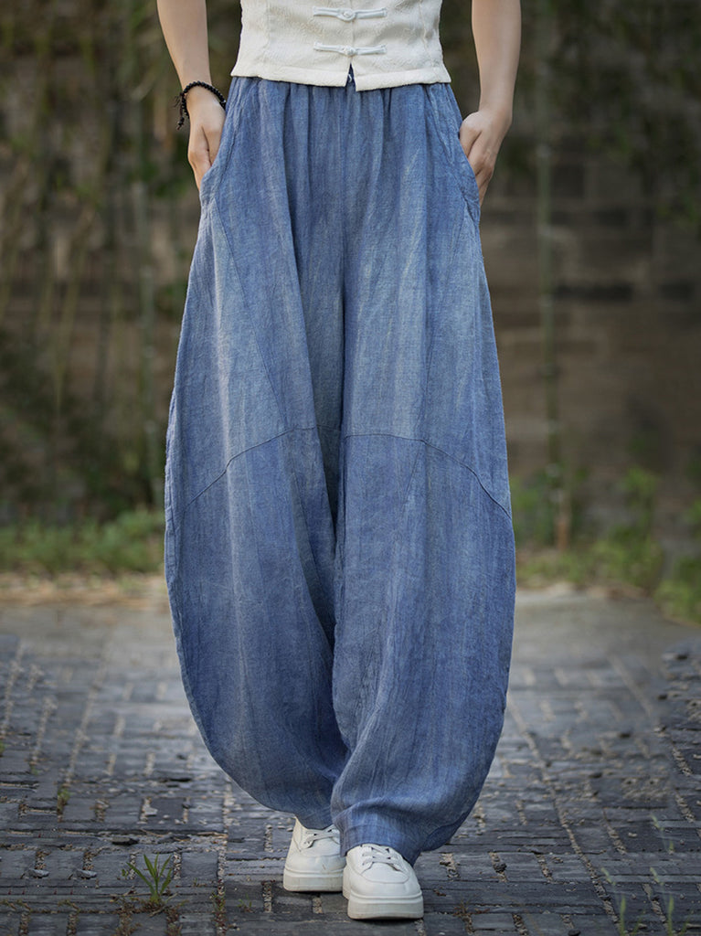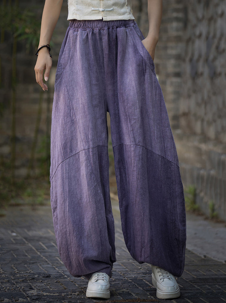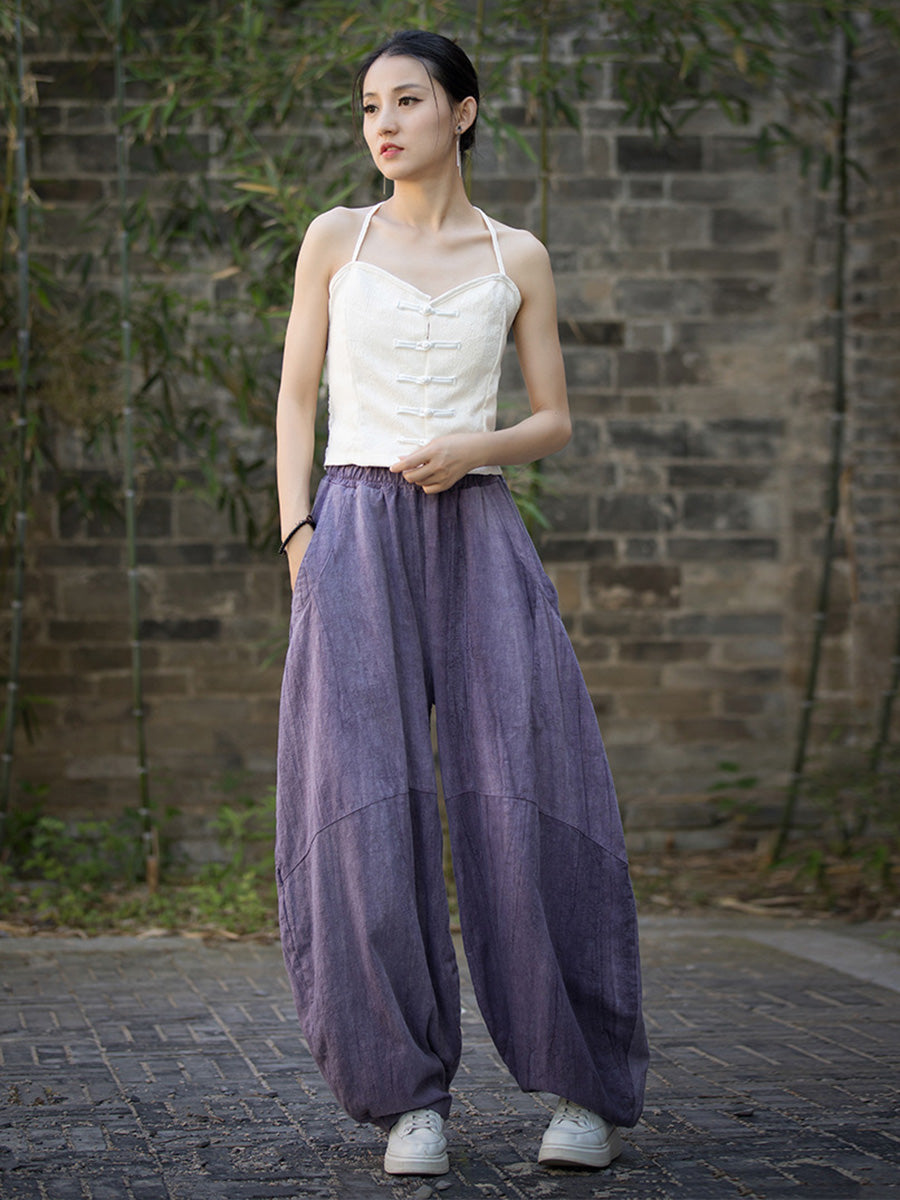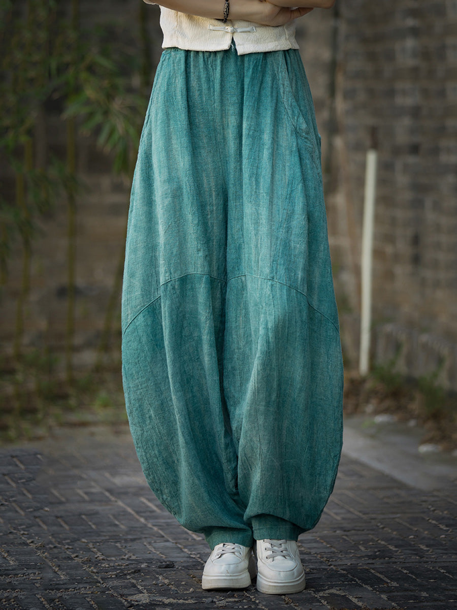 Pantalones bombachos de ramio empalmados con efecto tie-dye vintage para mujer para verano