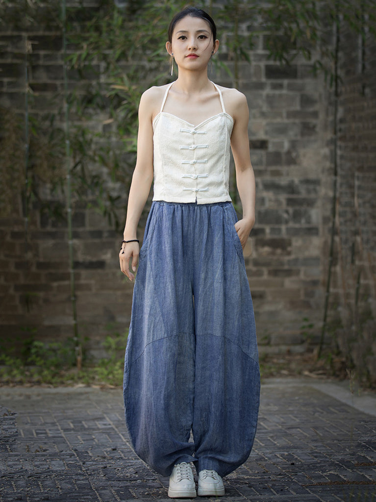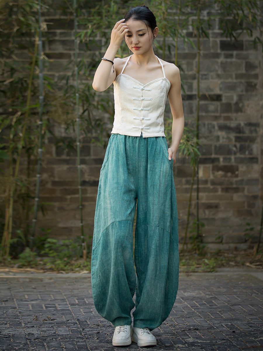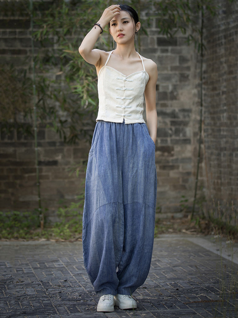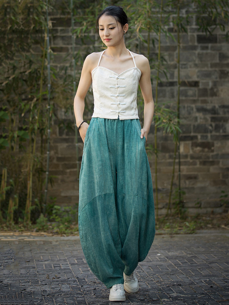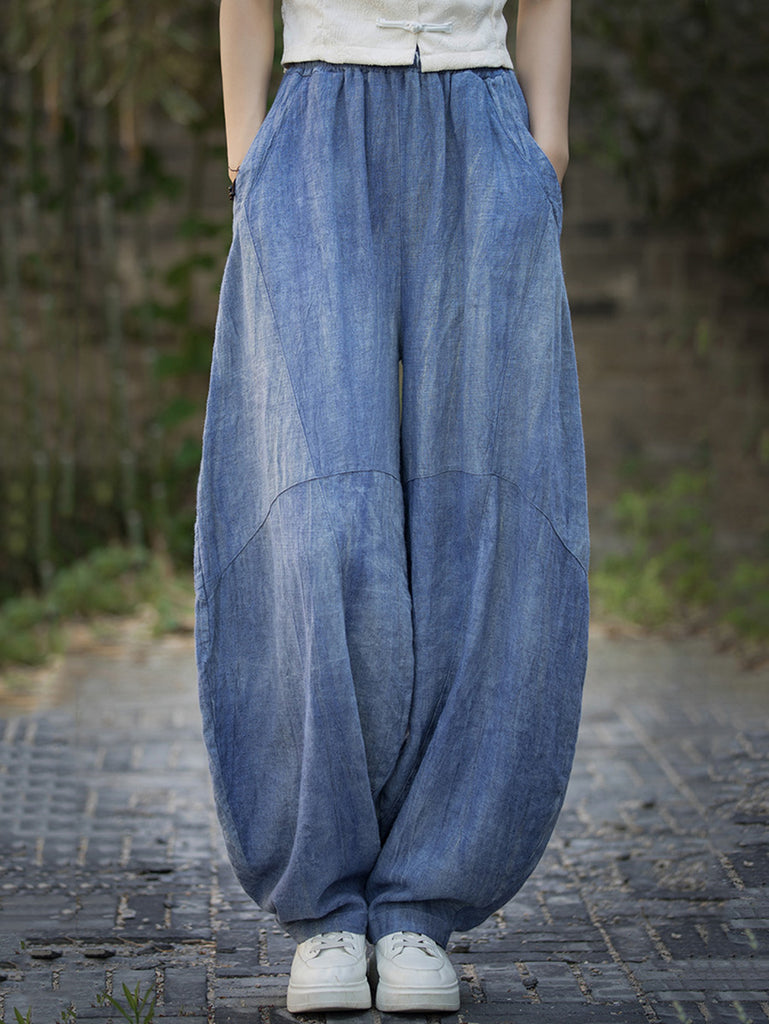 Pantalones bombachos de ramio empalmados con efecto tie-dye vintage para mujer para verano