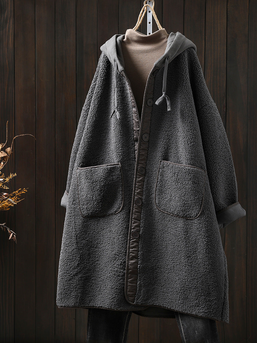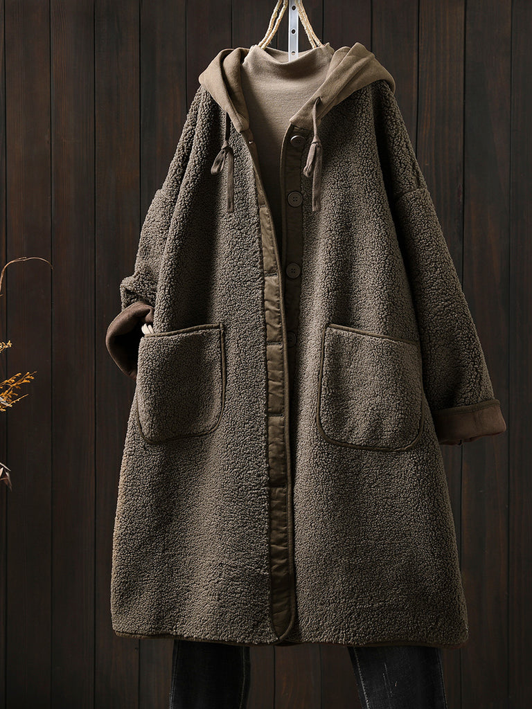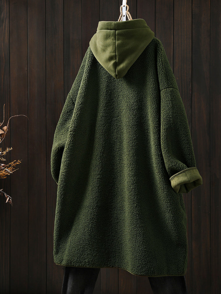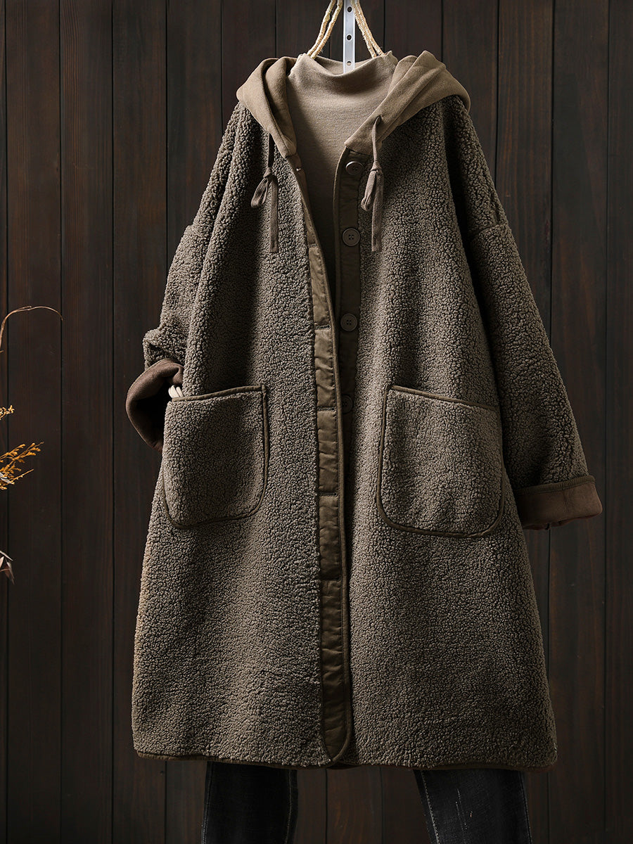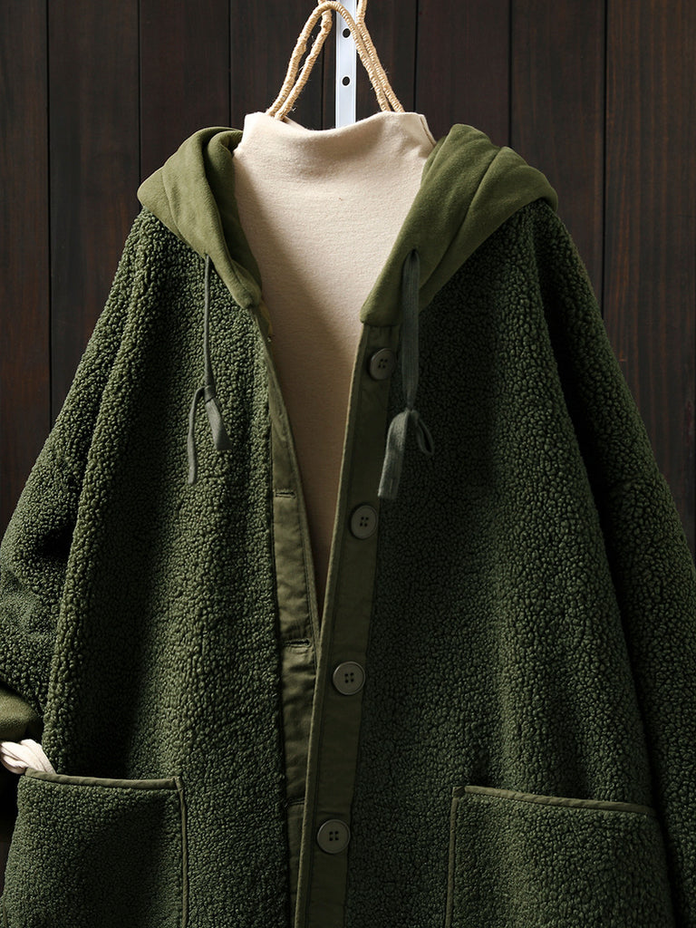 Este abrigo para mujer presenta un diseño de color liso con cuello con capucha y mangas raglán largas. Su estilo de inspiración retro lo hace ideal tanto para otoño como para invierno, ofreciendo calidez y comodidad durante los meses más fríos.