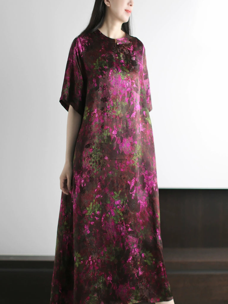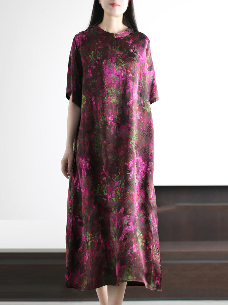 Vestido de bata de ramio con dobladillo dividido floral vintage de verano para mujer de talla grande