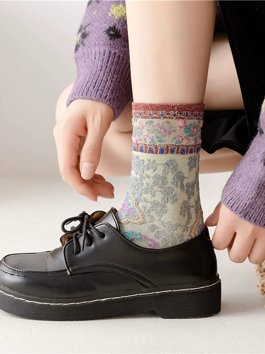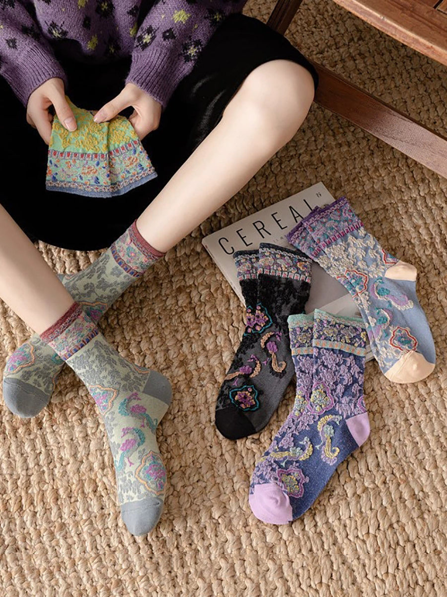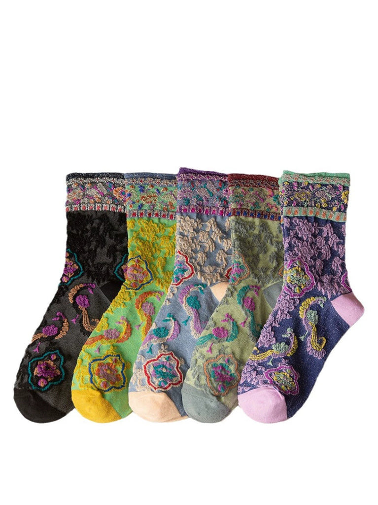 5 pares de calcetines vintage de jacquard con flores para mujer