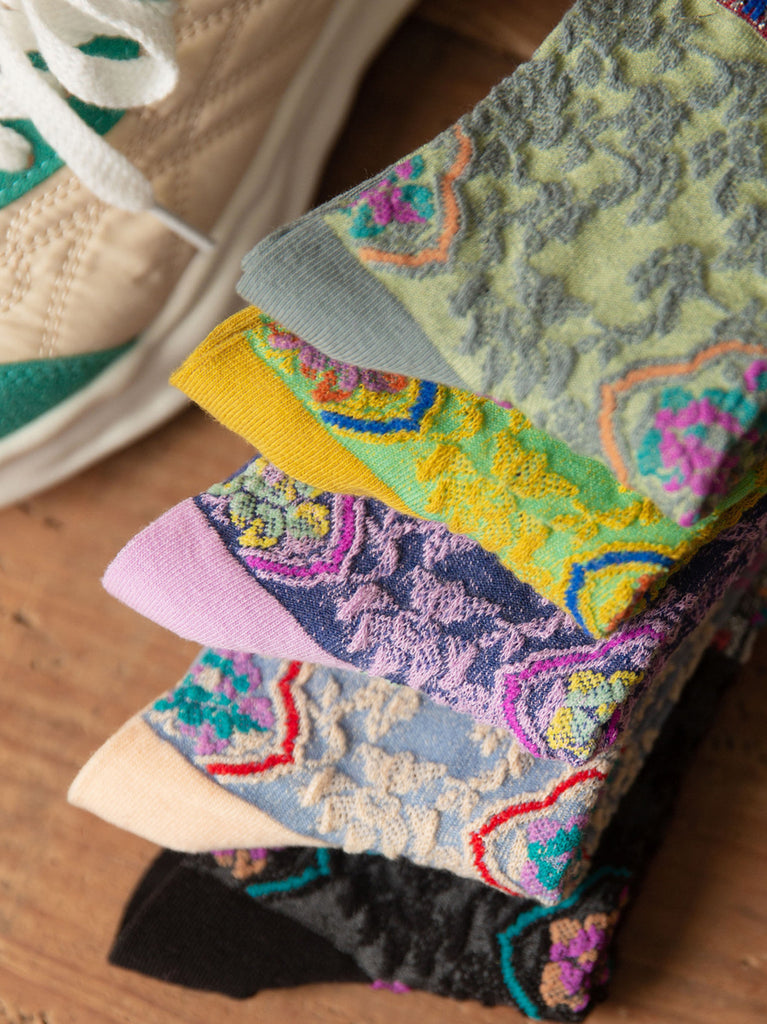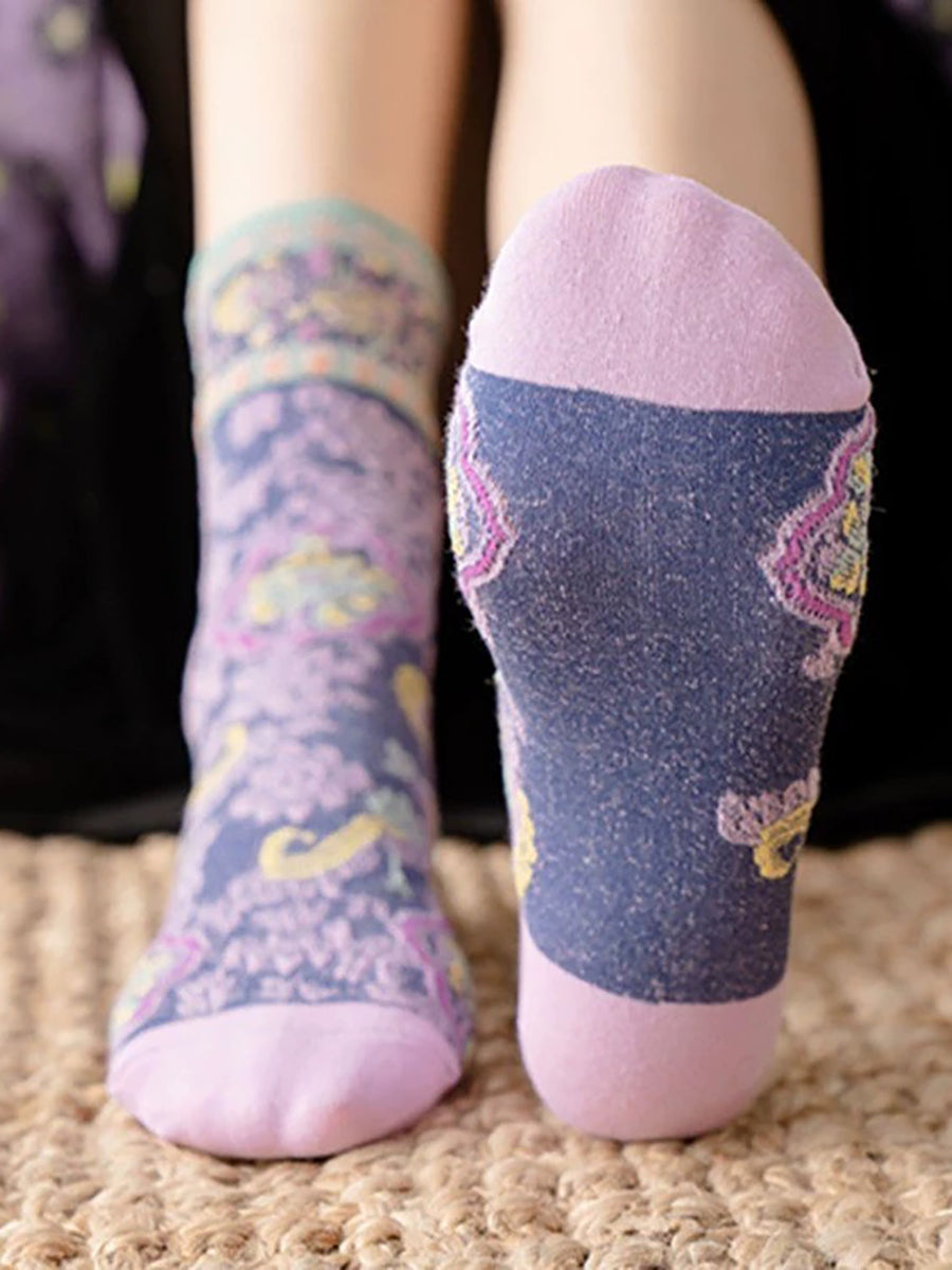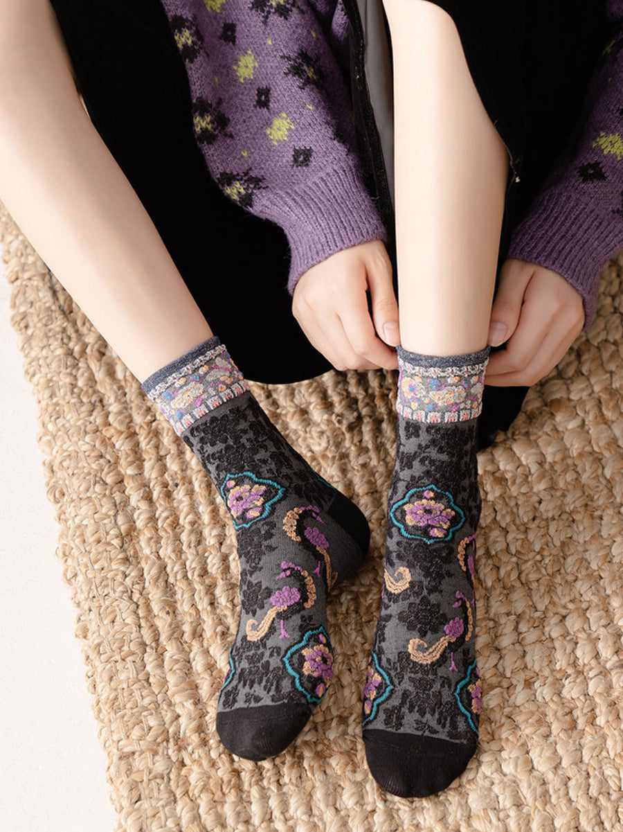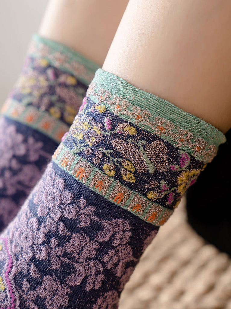 5 pares de calcetines vintage de jacquard con flores para mujer