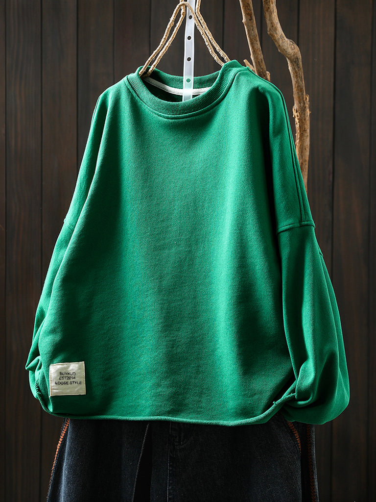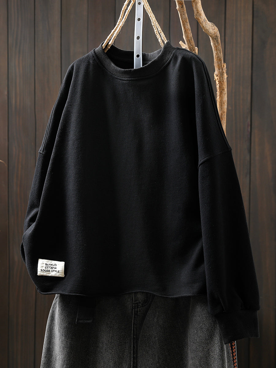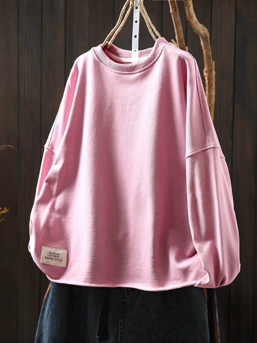 Blusa de mujer de color liso, cuello redondo, estilo casual de otoño