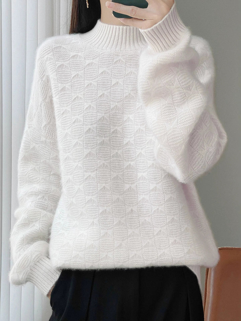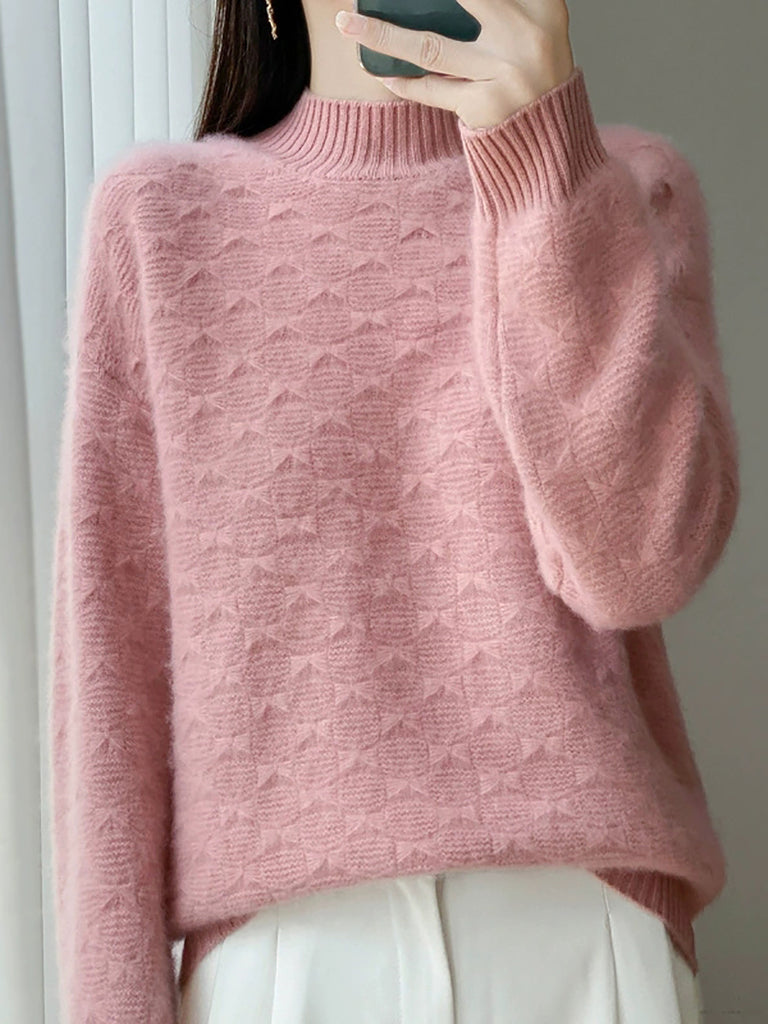 Suéter vintage de otoño para mujer con cuello alto y lazo