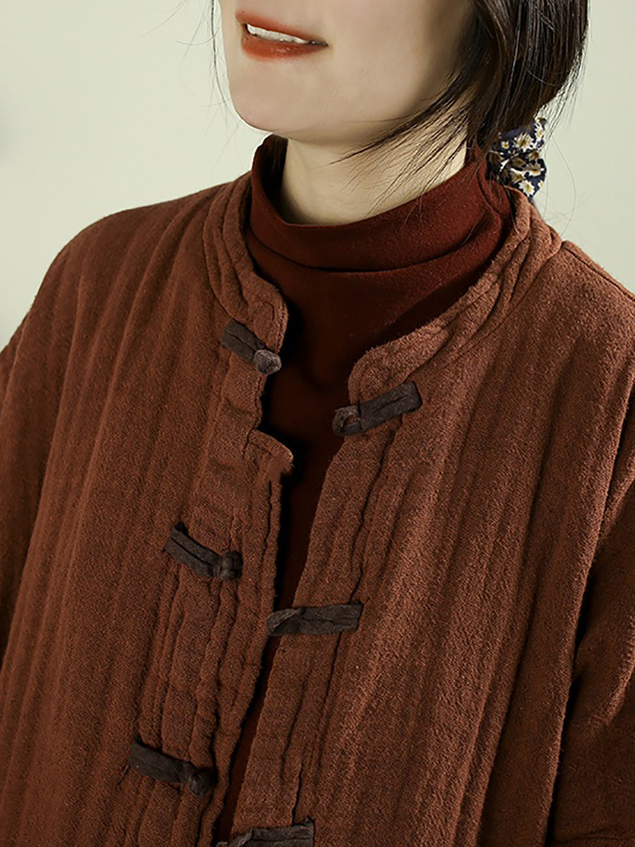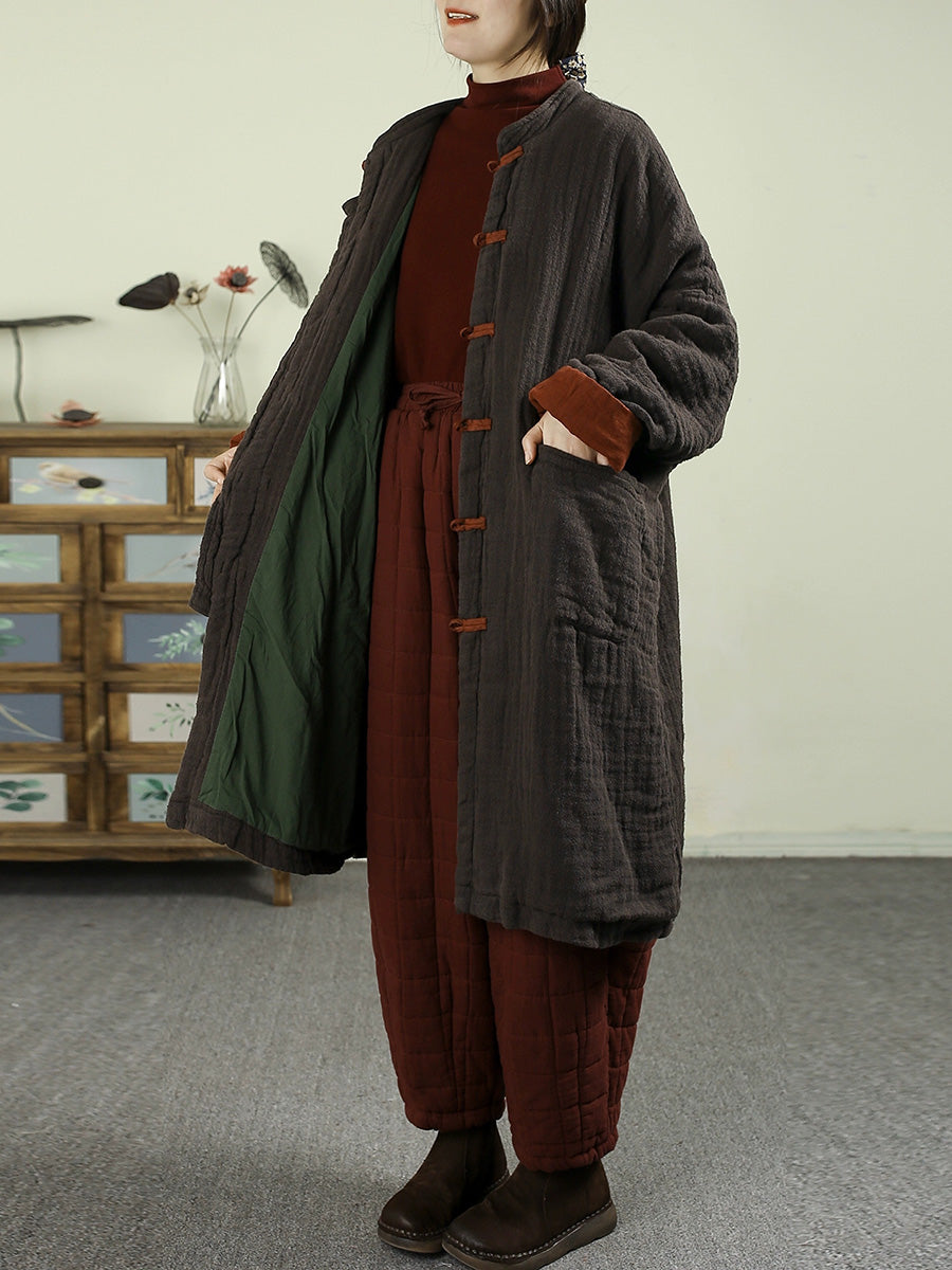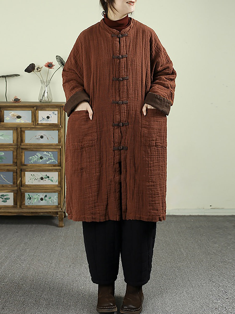 Abrigo de invierno vintage para mujer, 100% lino, cuello alto
