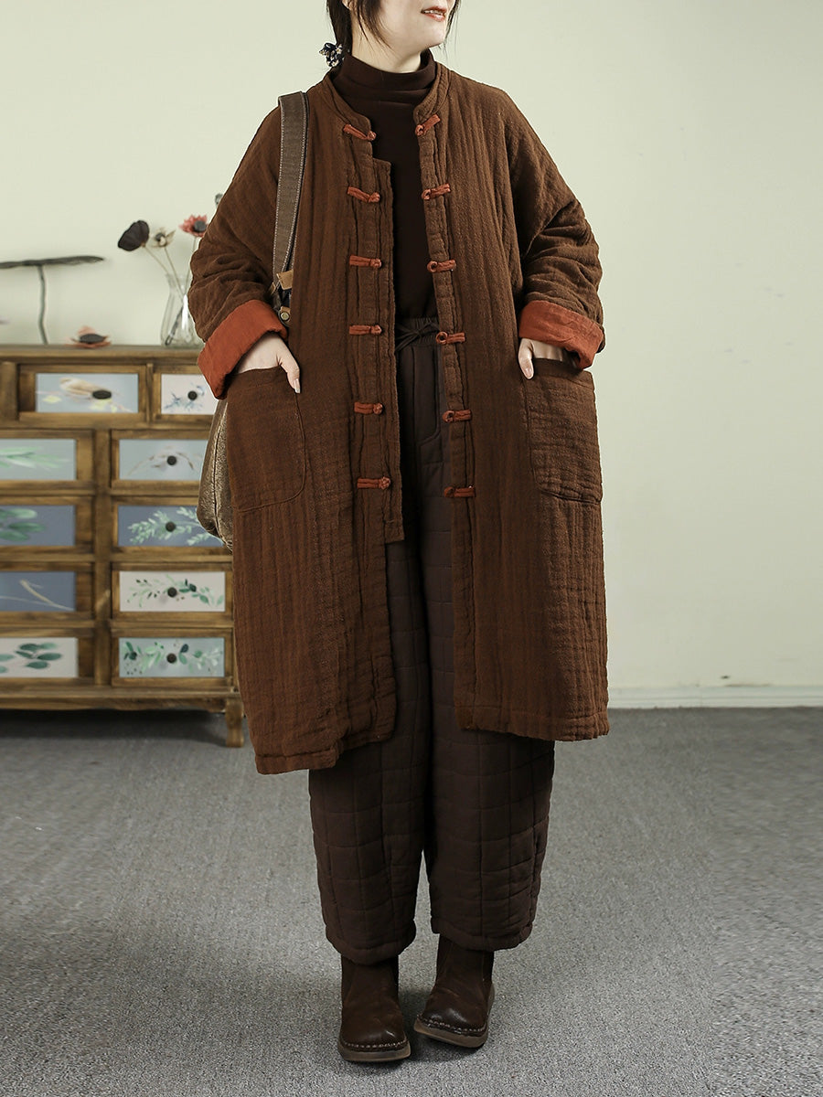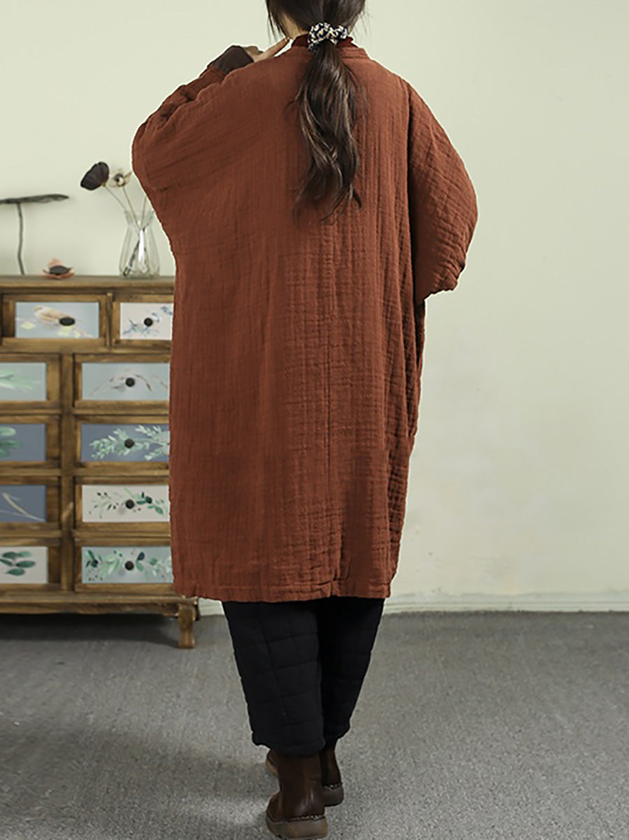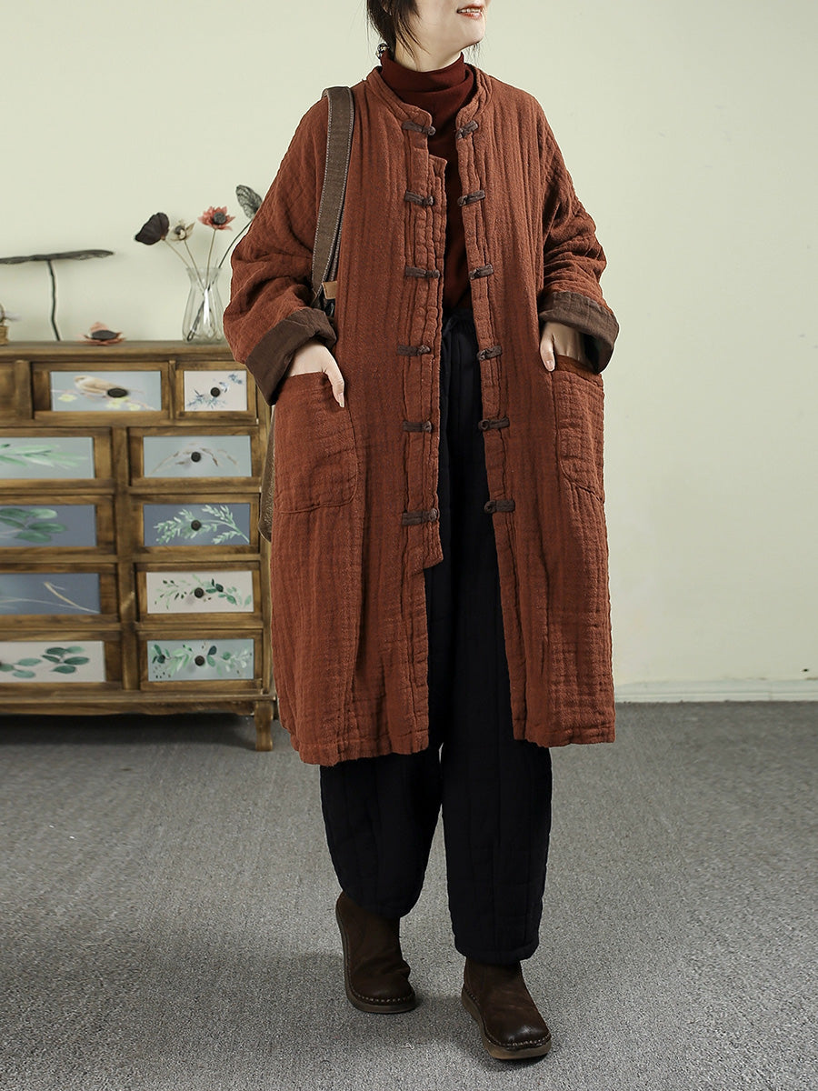 Abrigo de invierno vintage para mujer, 100% lino, cuello alto
