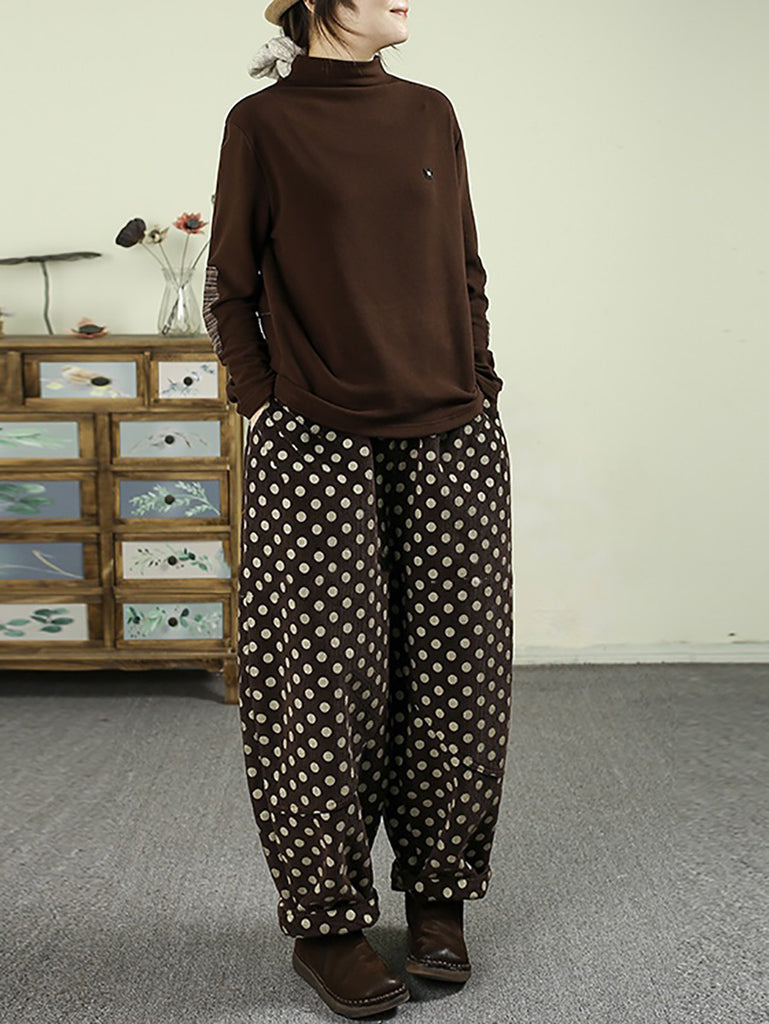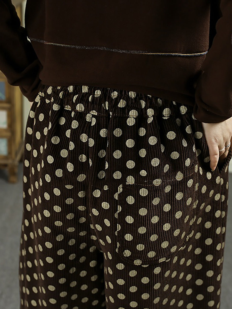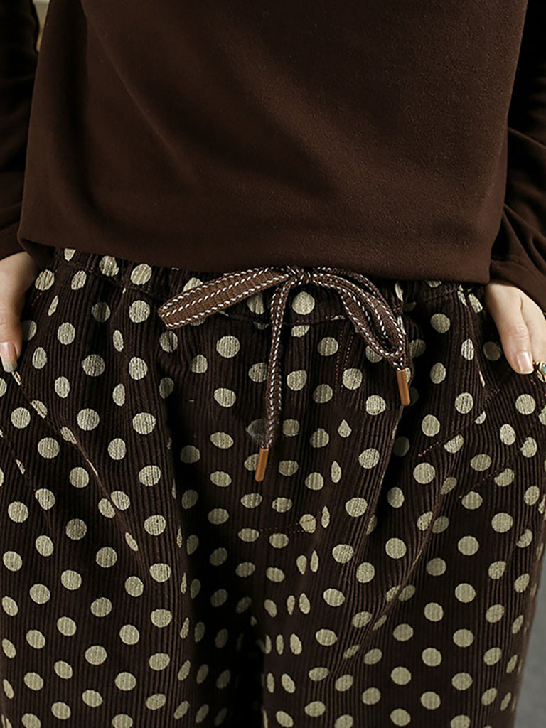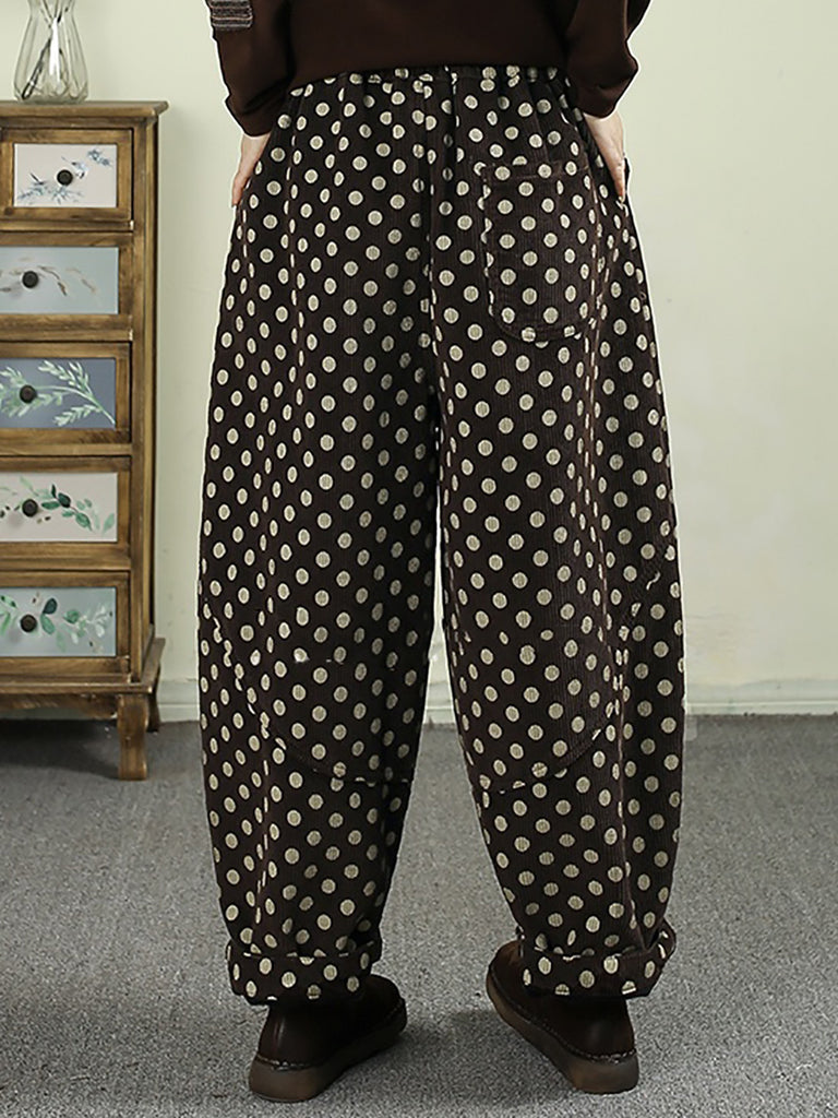 Pantalones tipo harem de pana con forro polar y lunares para mujer, ideales para el invierno.