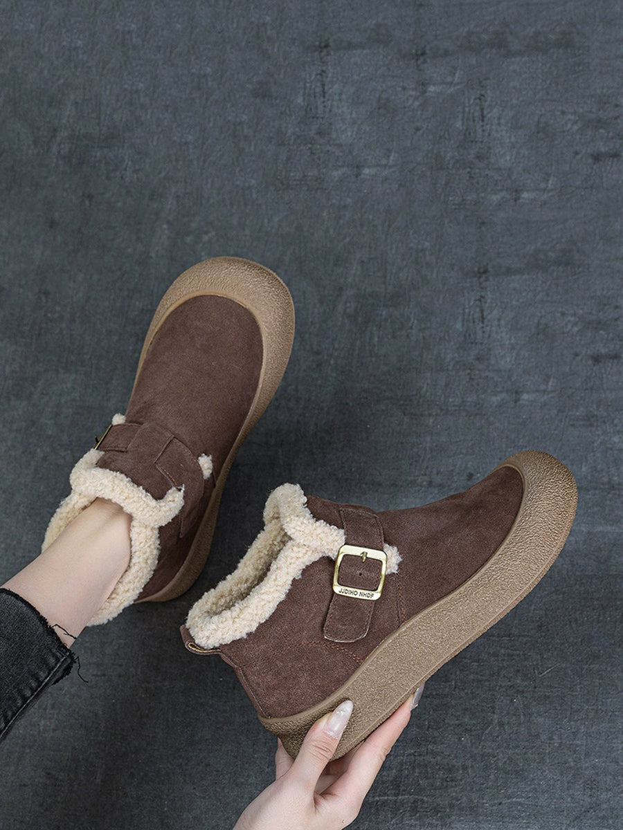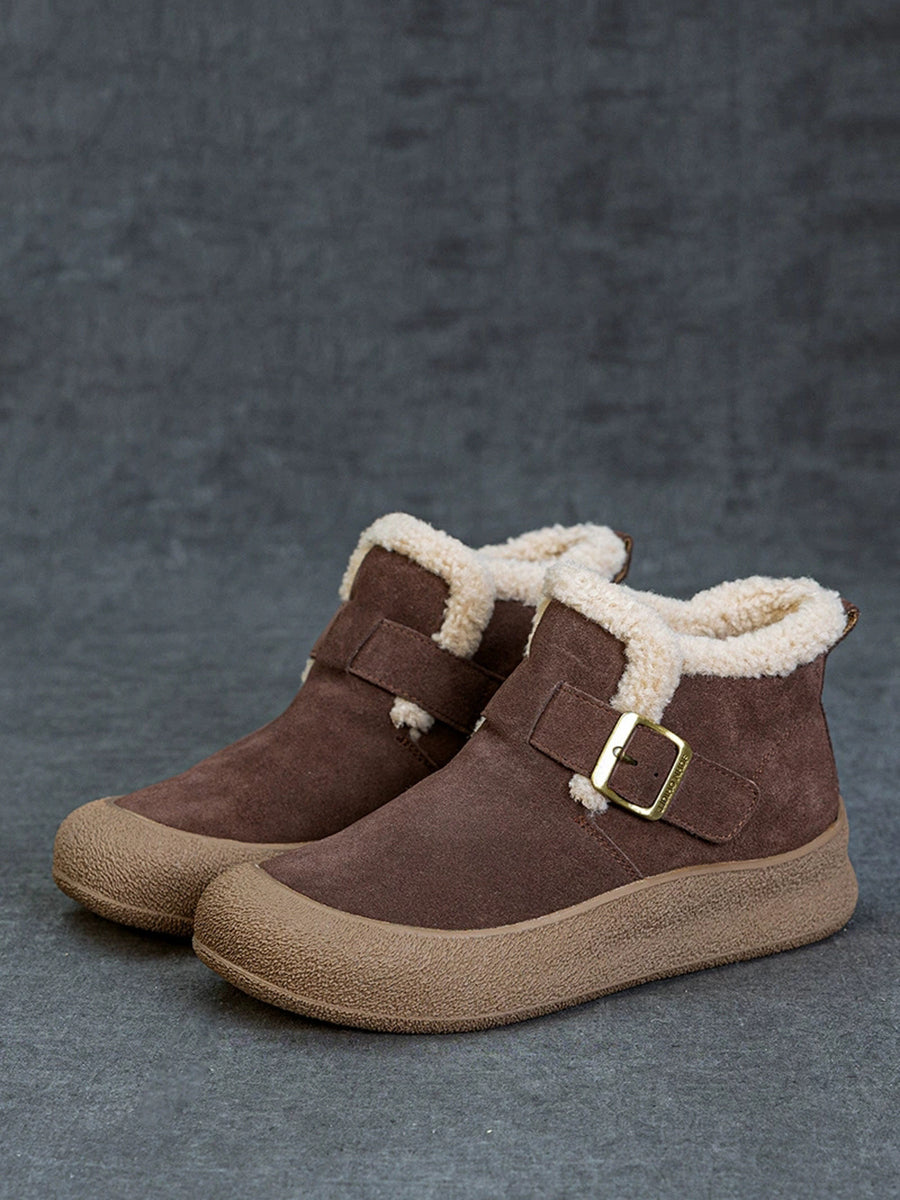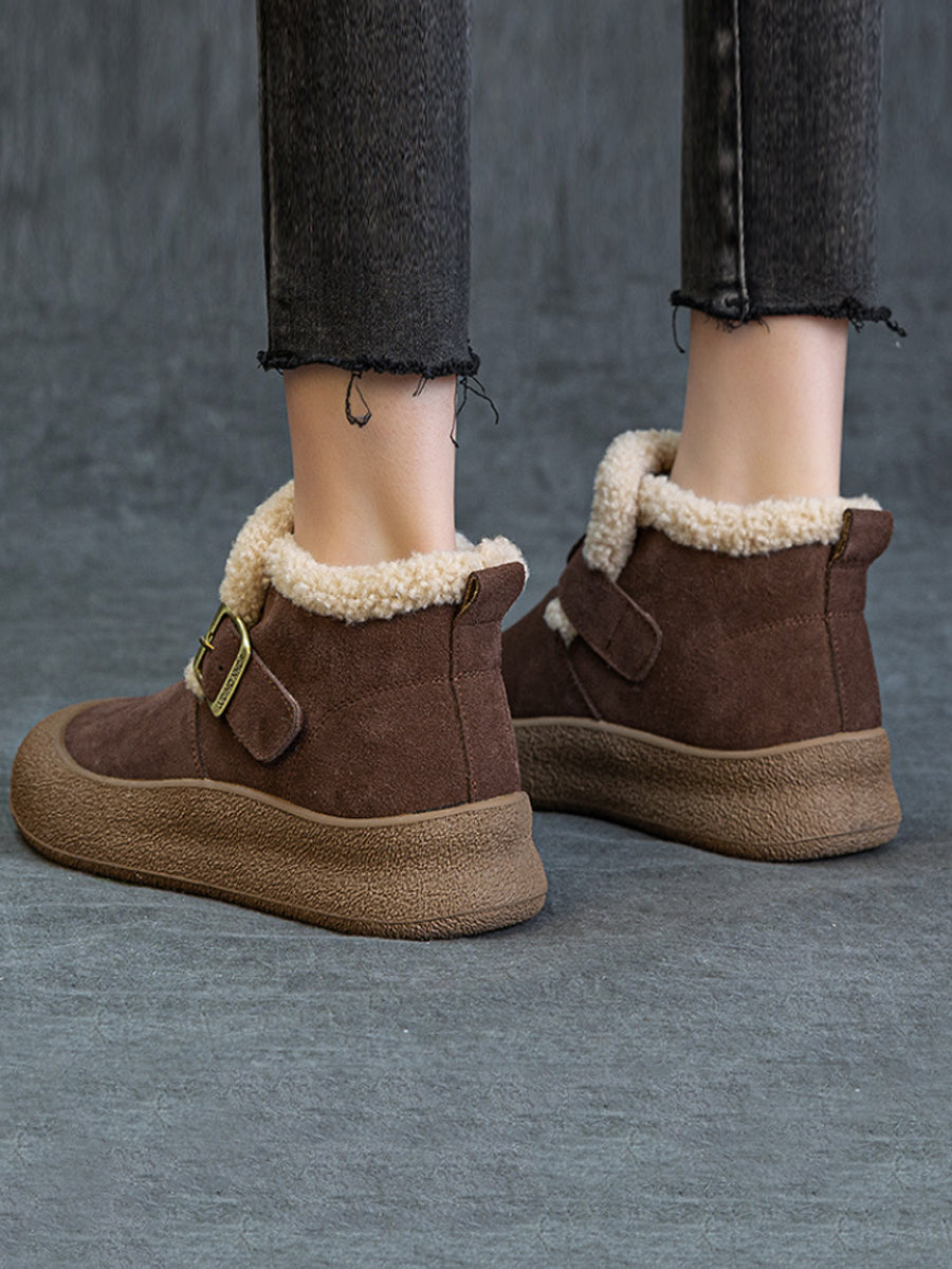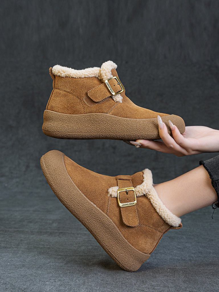 Botines de invierno para mujer, de piel auténtica con forro polar.