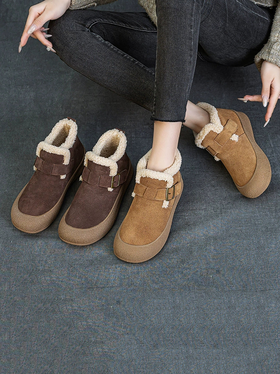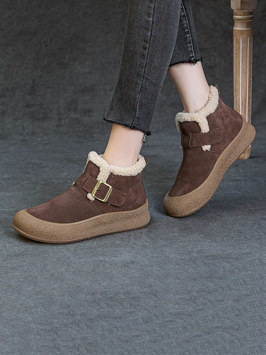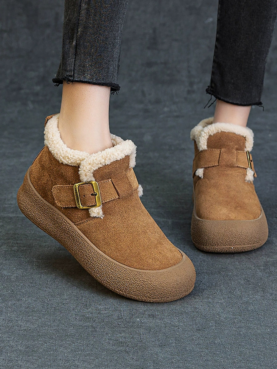 Botines de invierno para mujer, de piel auténtica con forro polar.