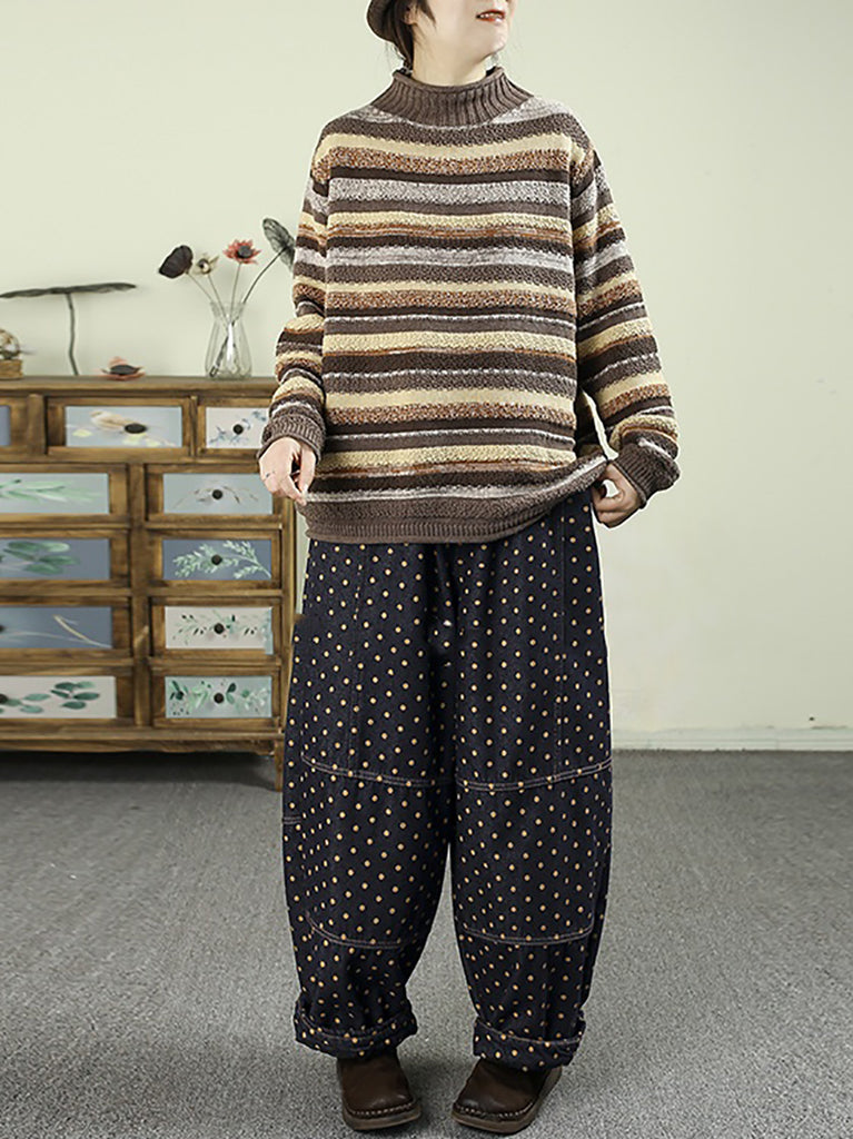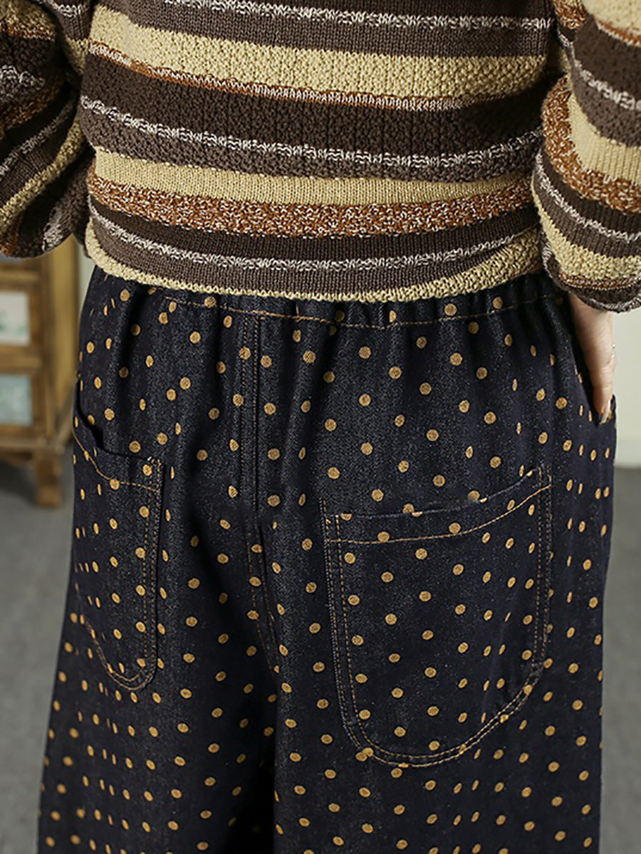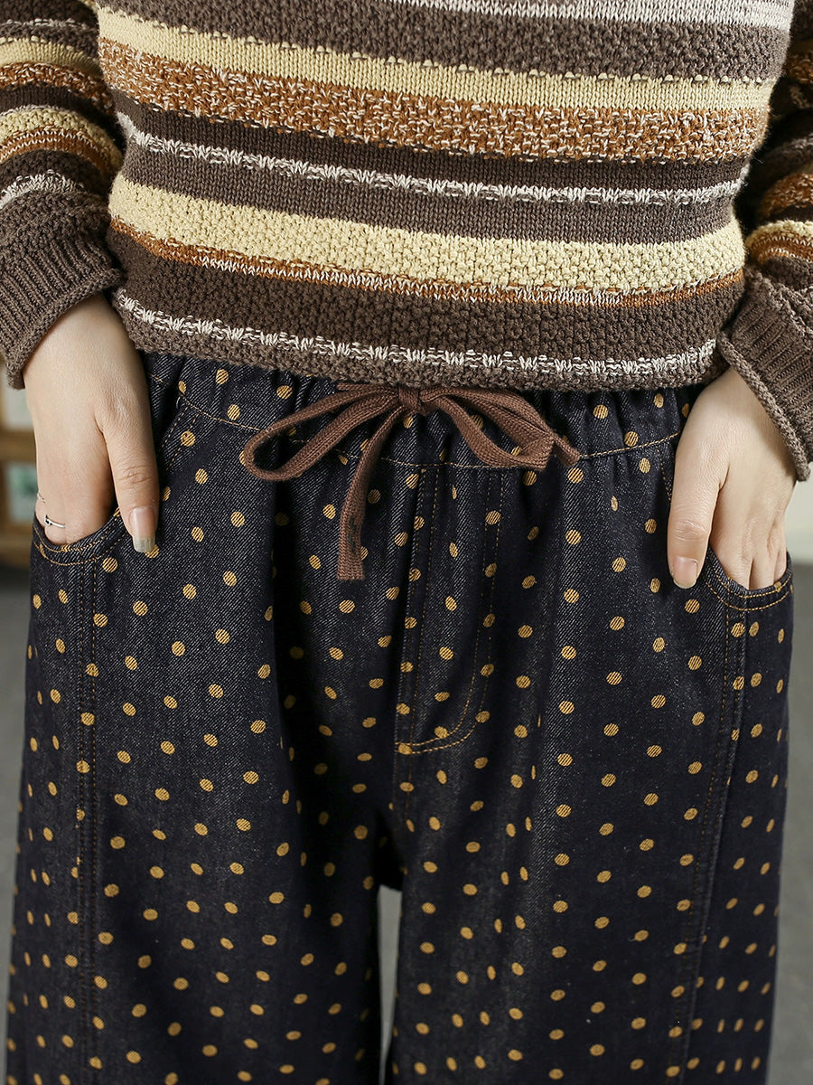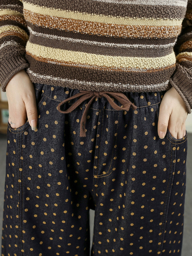 Pantalones bombachos vaqueros de invierno retro con lunares para mujer, con forro polar.
