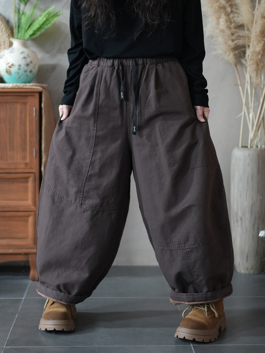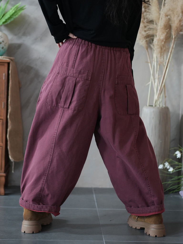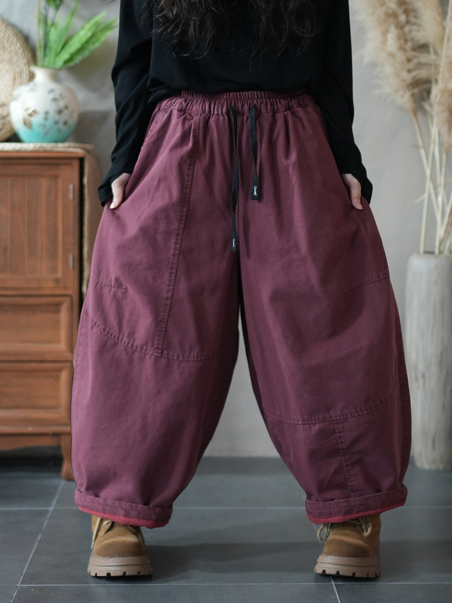 Pantalones harén acolchados de color puro retro de invierno para mujer