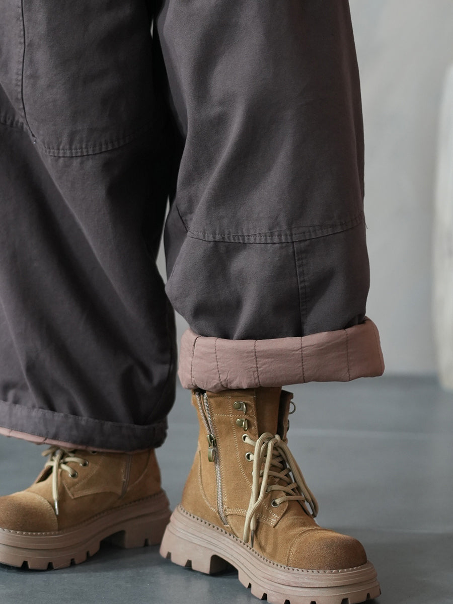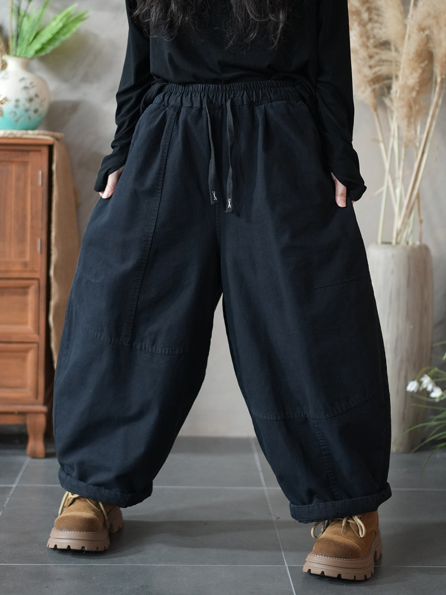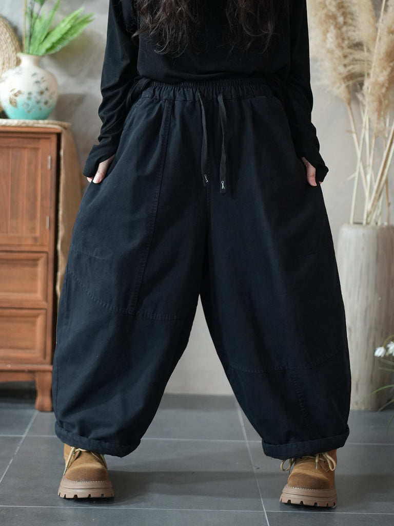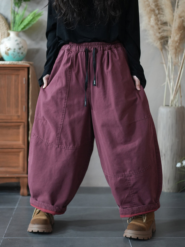 Pantalones harén acolchados de color puro retro de invierno para mujer