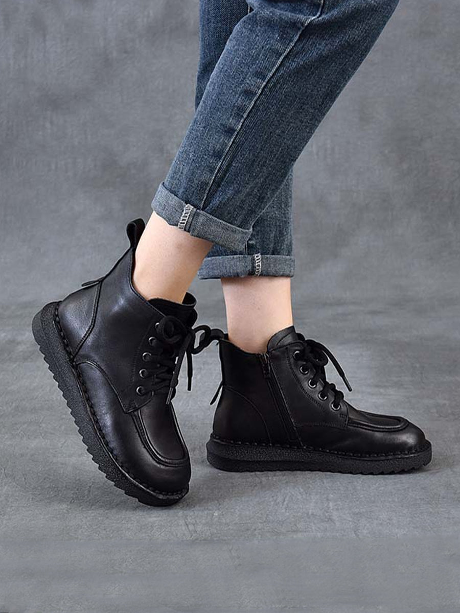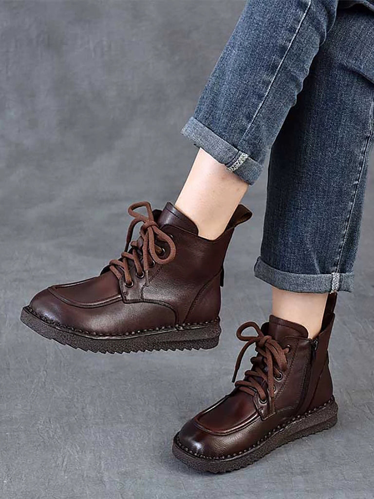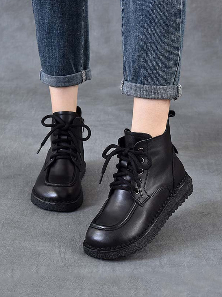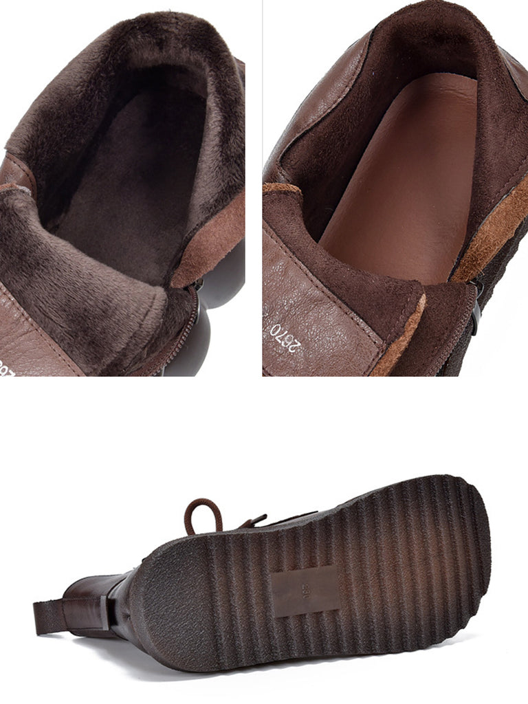Botines de invierno vintage de piel con tiras para mujer
