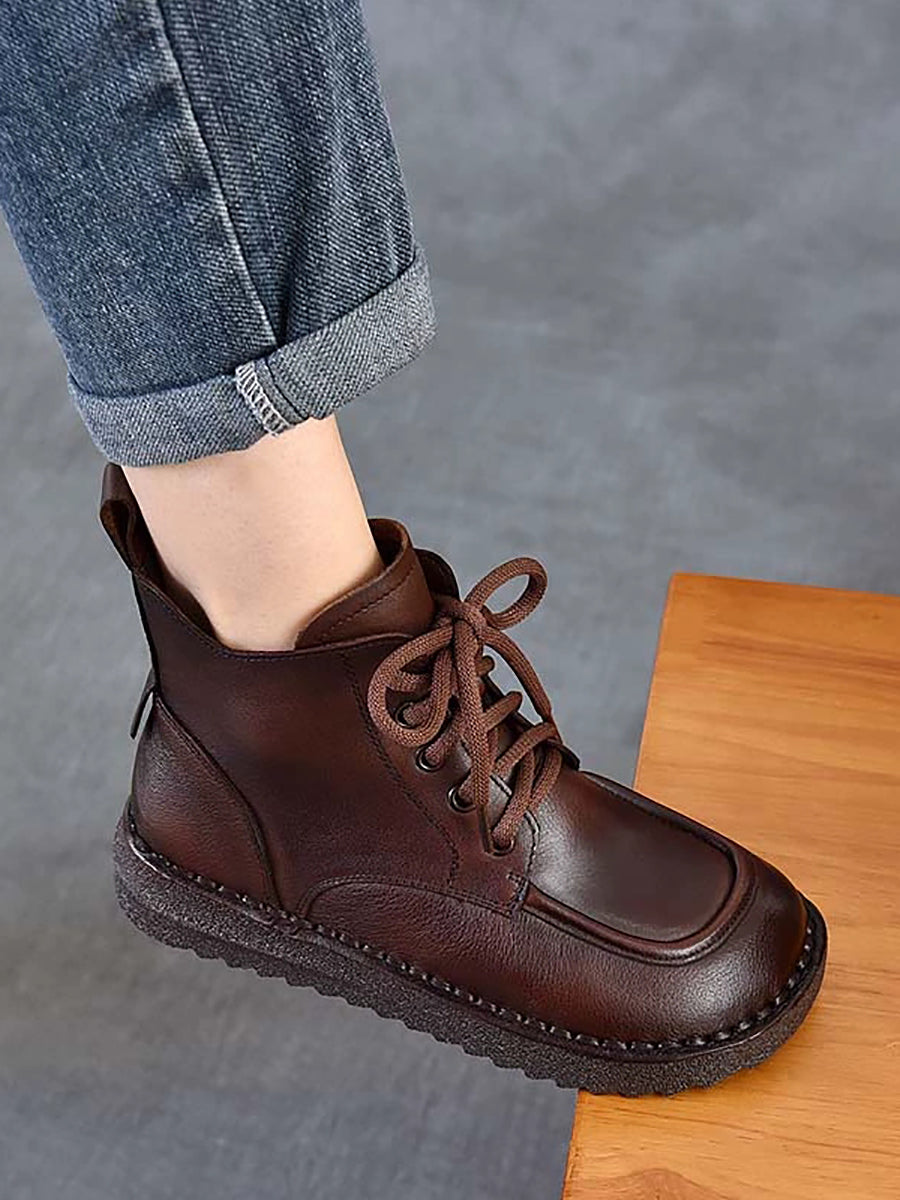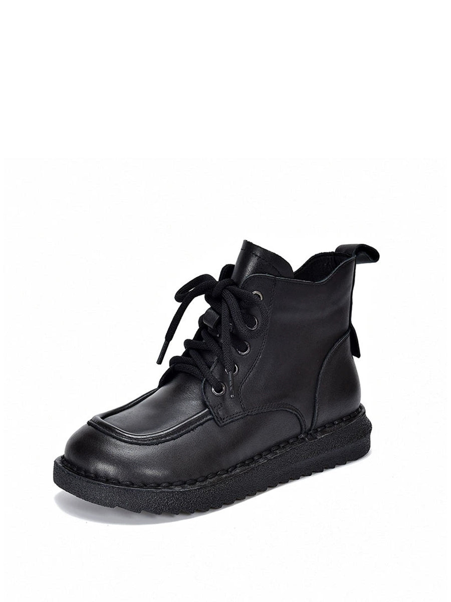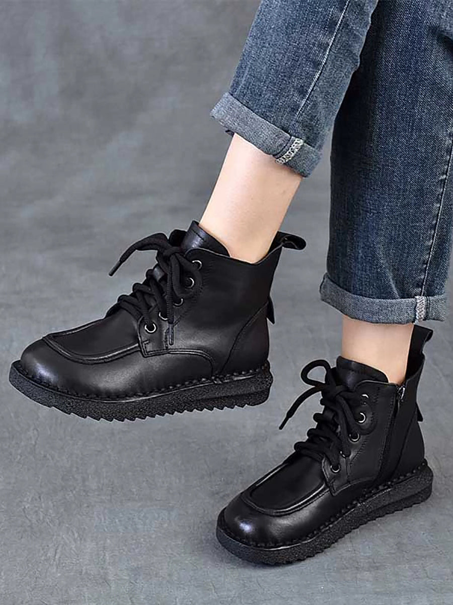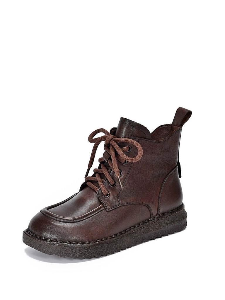 Botines de invierno vintage de piel con tiras para mujer
